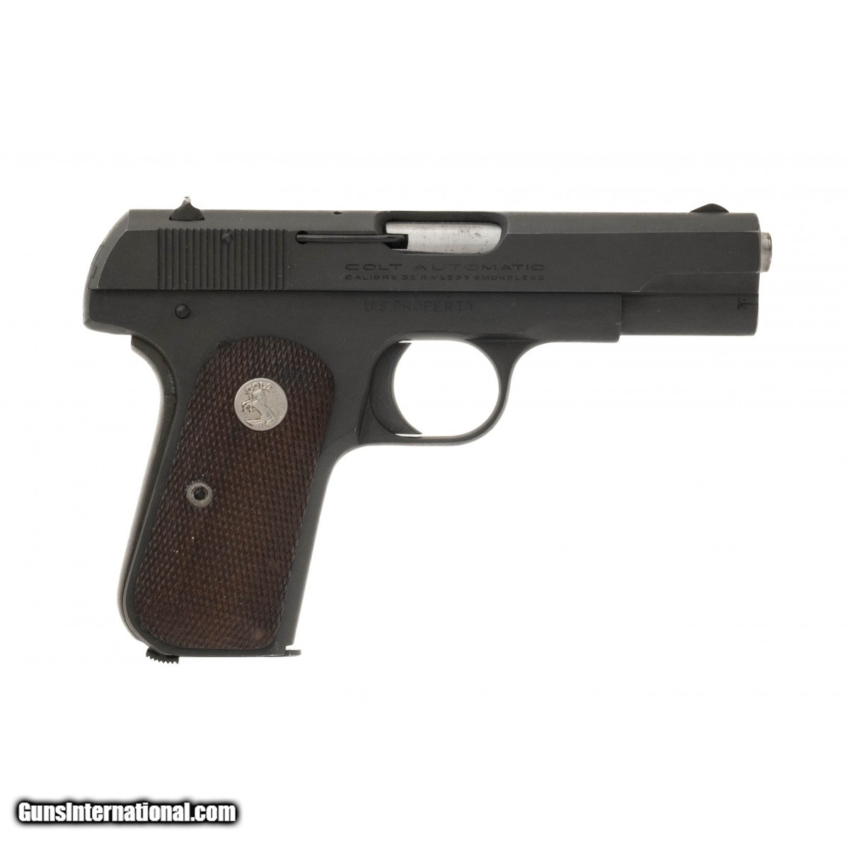 Description: "Serial number 568190. Made in 1943. 32 ACP with a 4" barrel. Gun is in like new condition with all of the parkerized finish. This gun is US property marked. SOLD Curio/Relic: Yes |