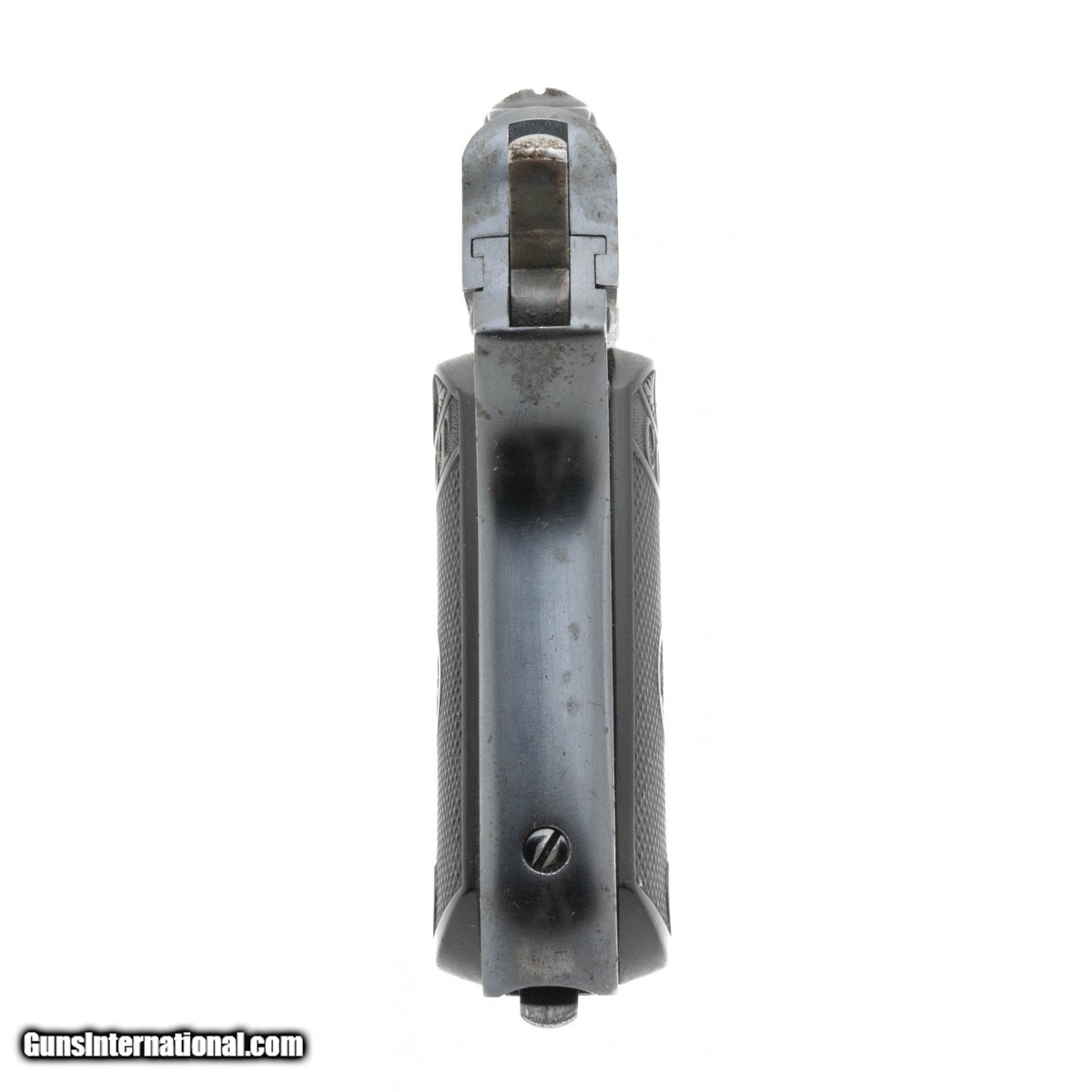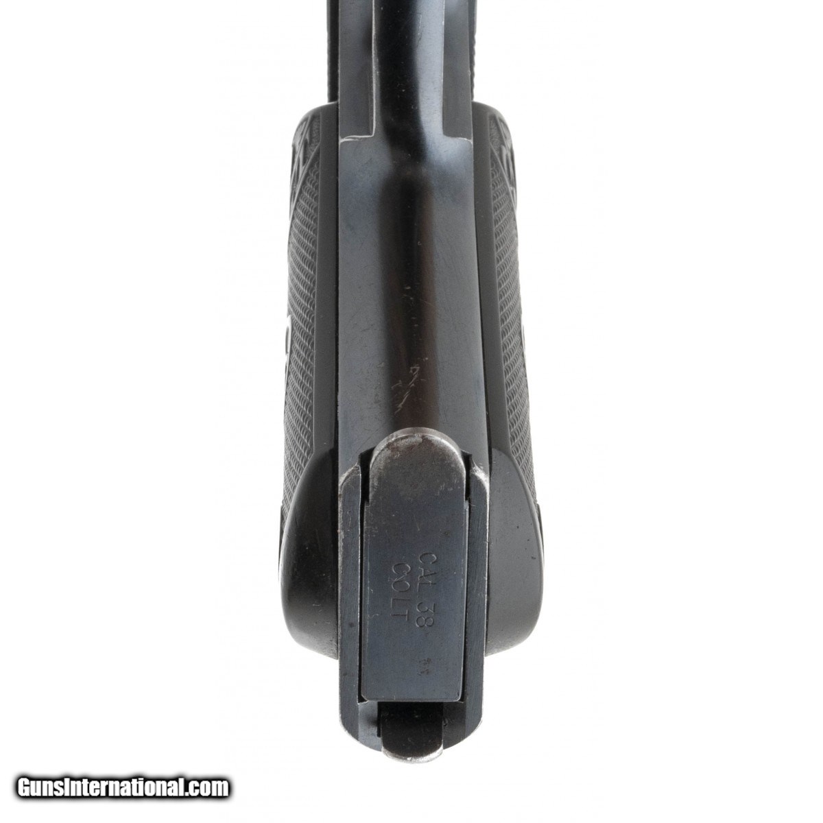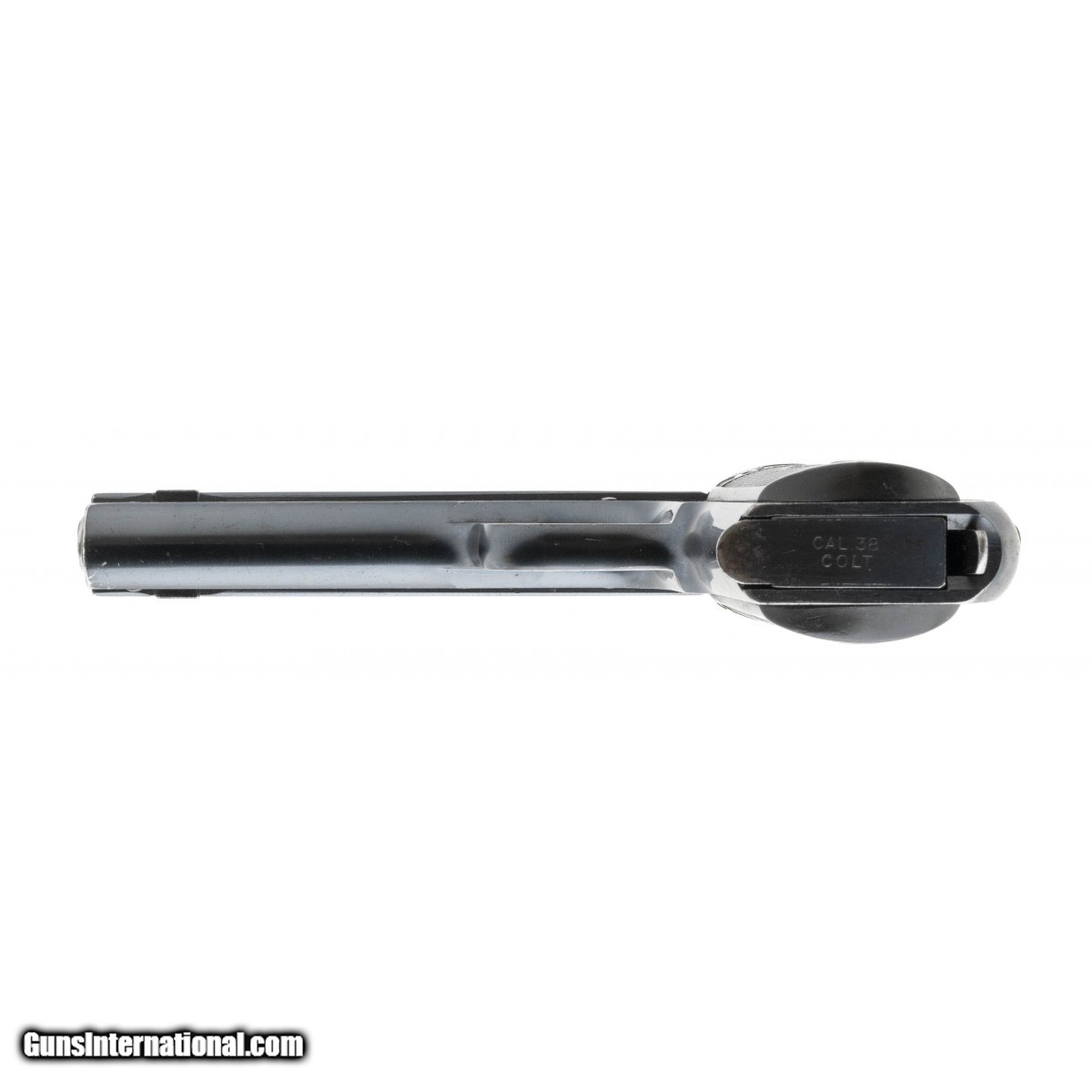 Description: "Serial number 44304. Made in 1922. 38 Auto caliber with a 4 ¼" barrel. Excellent condition with 90%+ of the original factory blue. Grips are excellent. SOLD Curio/Relic: Yes |