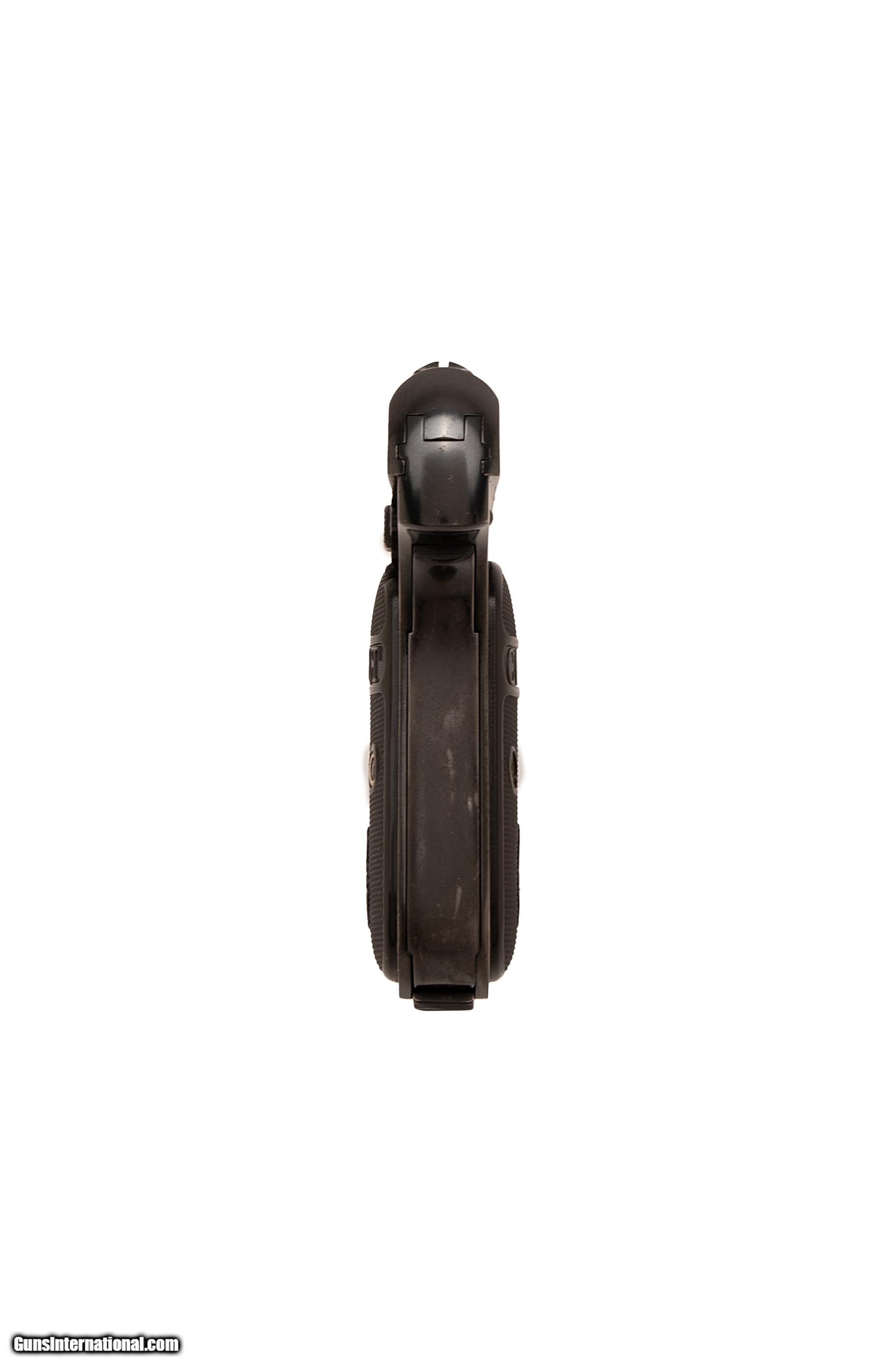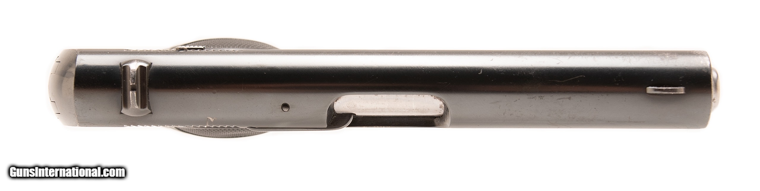 Description: "SN: 487322. 1928 year of production. Semi-auto handgun chambered in .32 Auto with a 3.75"" barrel. Bore is bright and shiny with strong rifling. Grips are reproductions. Barrel exterior has worn and missing finish by the muzzle. Frame and slide have handling wear with some holster wear by the front of the slide and some scratches above the grip on the left side. SOLD |