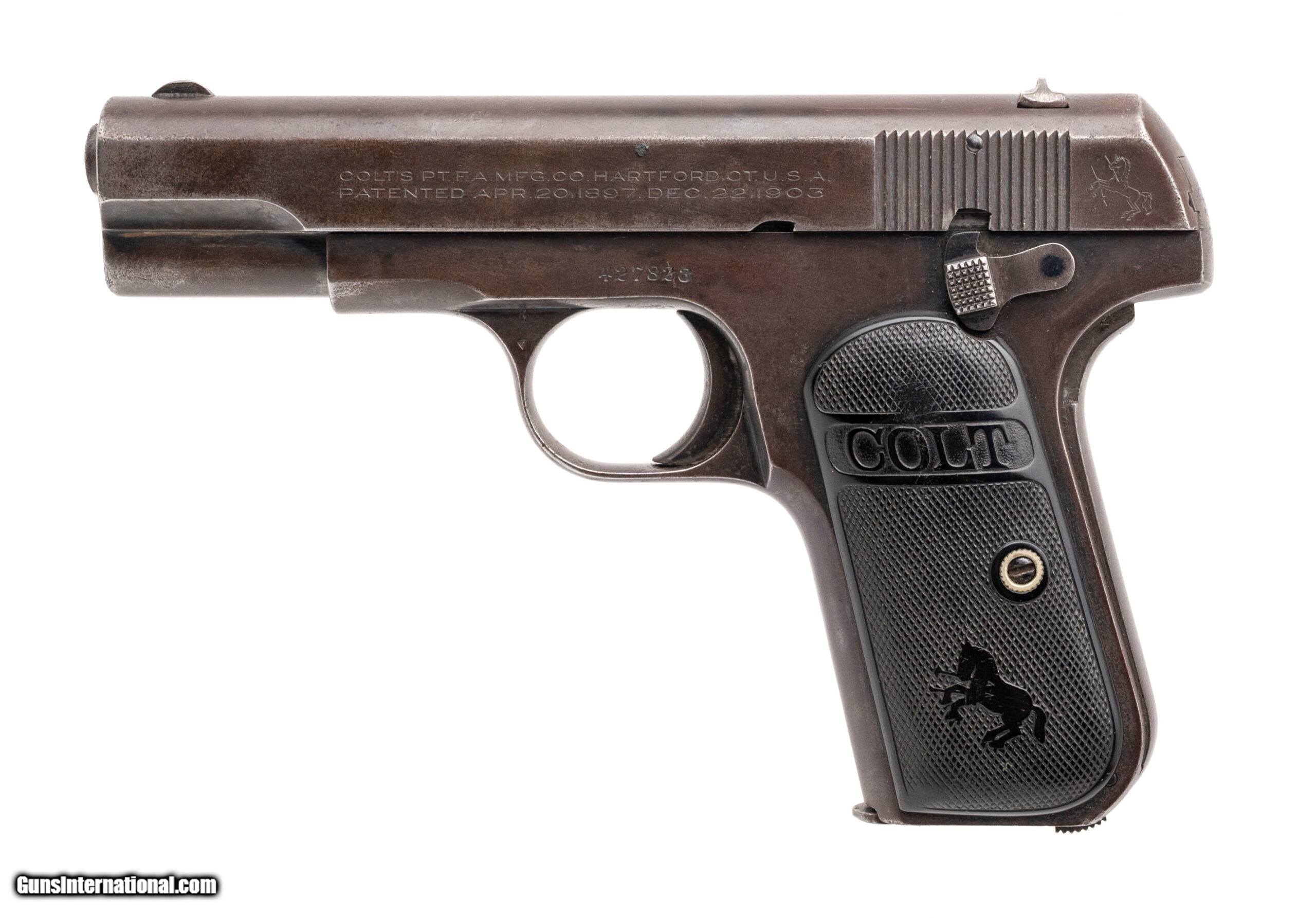 Description: "SN: 427823 made in 1923. 32 ACP semi-auto hammerless pre-war pocket pistol with a 3.75" barrel, original grips and Colt marked magazine. Bluing has turned to an even patina throughout but action is smooth and works properly. Overall in good condition. Curio/Relic: Yes Price: $549.95 Contact Seller |