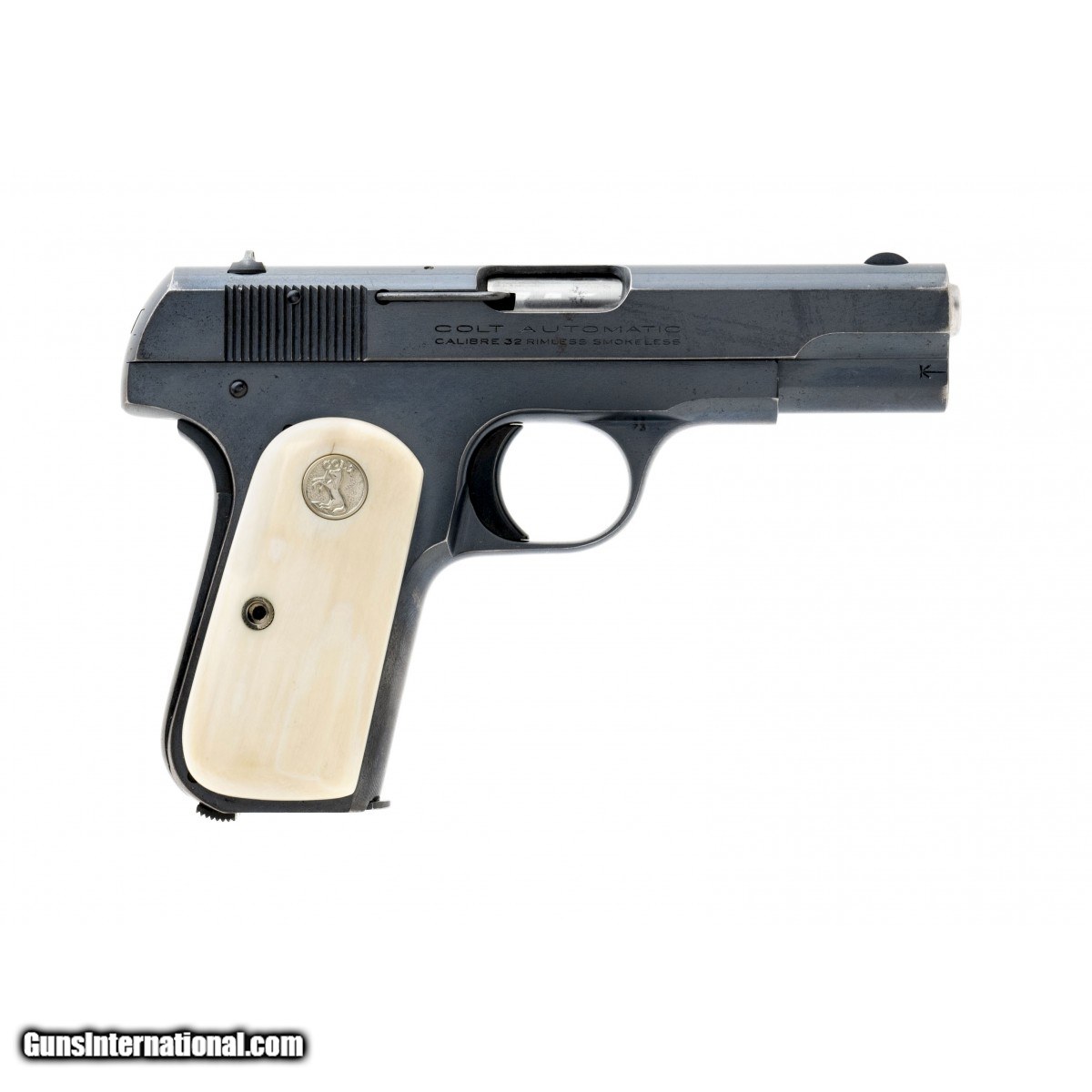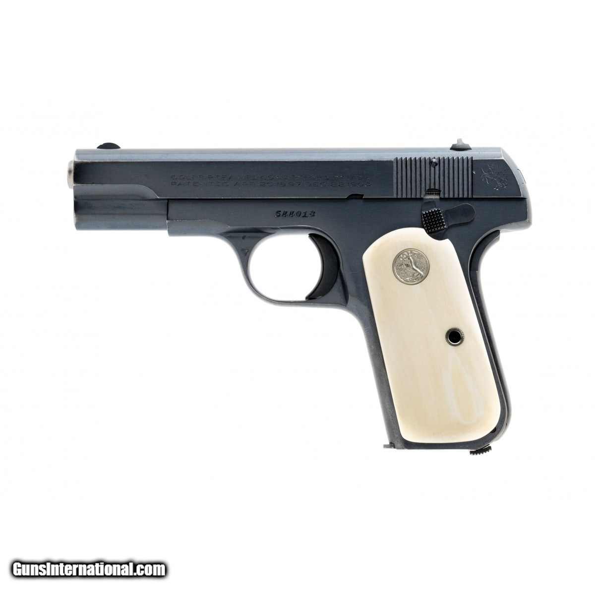 Description: " Manufactured in 1941. Bore is excellent. Metal has approximately 97% original finish with minimal wear. Ivory grips have Colt medallions and look beautiful. Comes with an original box. The bottom of the box is numbered to a different 1903. SOLD Curio/Relic: Yes |