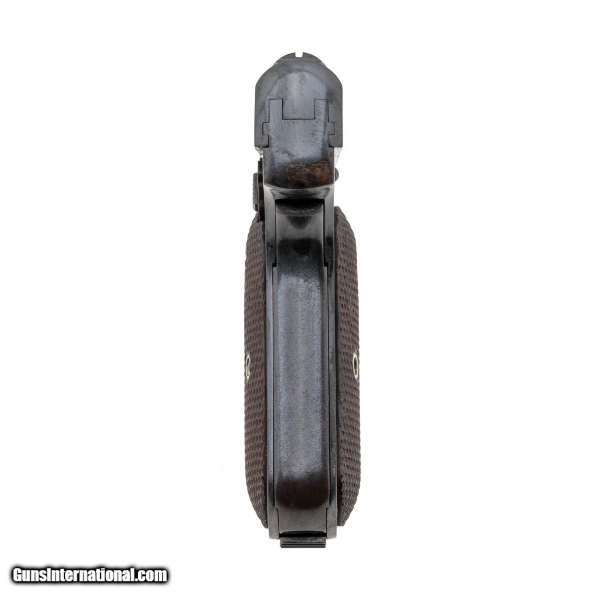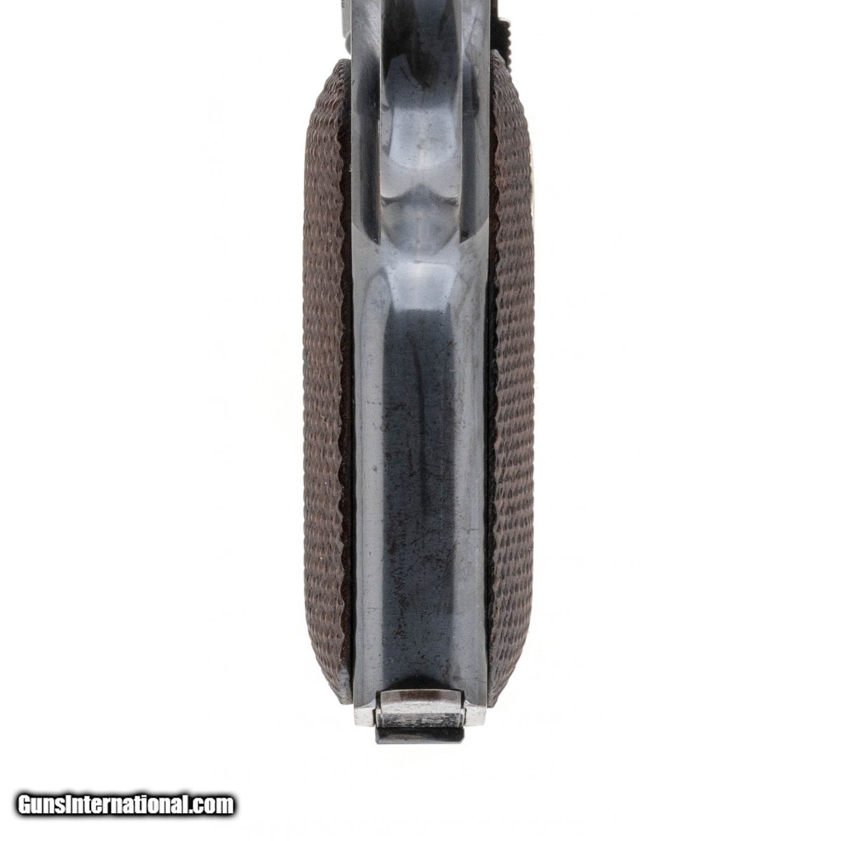 Description: " SN: 474869. Made in 1927, .32 ACP, 3.75-inch barrel. Overall very good condition with original blued finish, a very good bore, a pair of original wood grips & one original eight-round magazine. SOLD Curio/Relic: Yes |