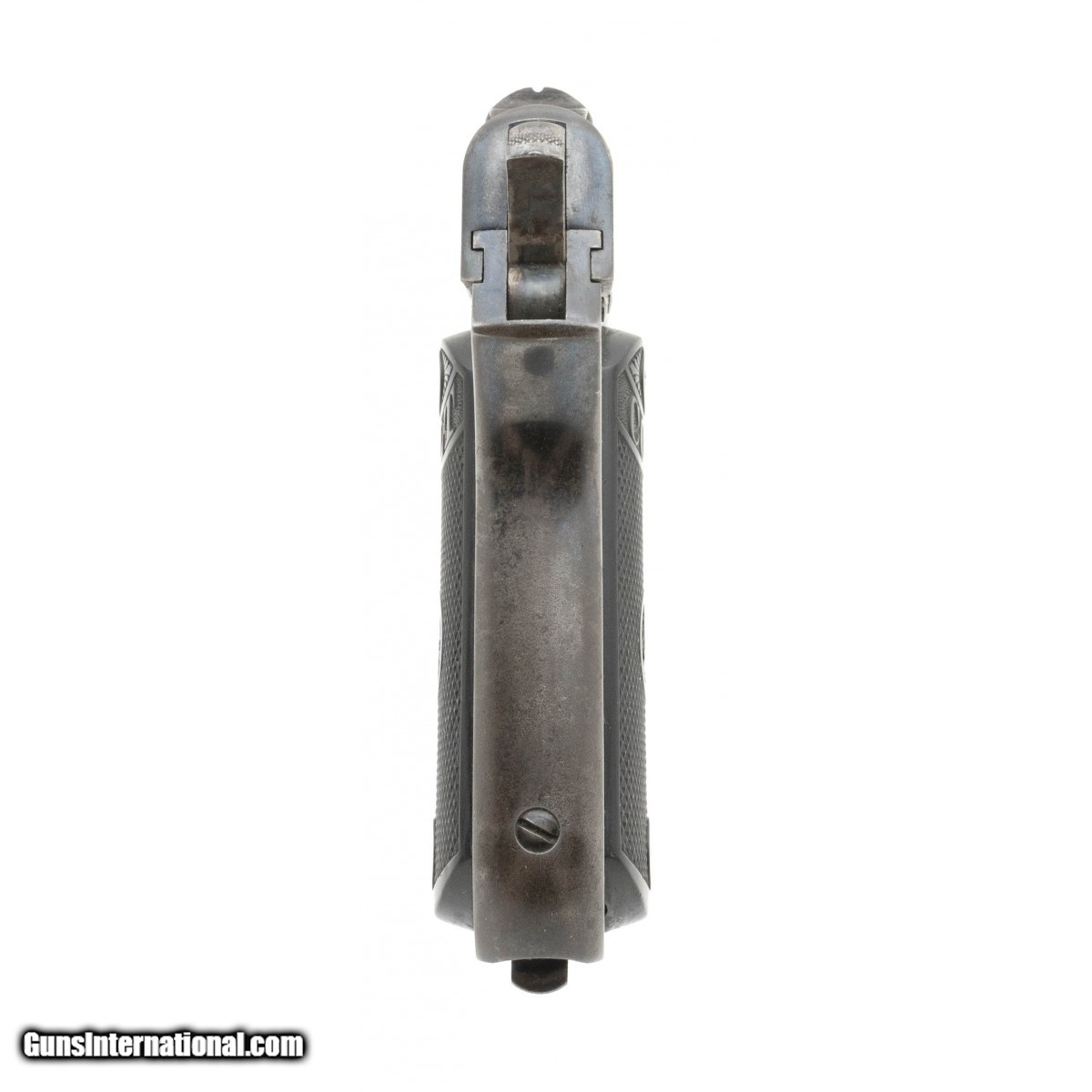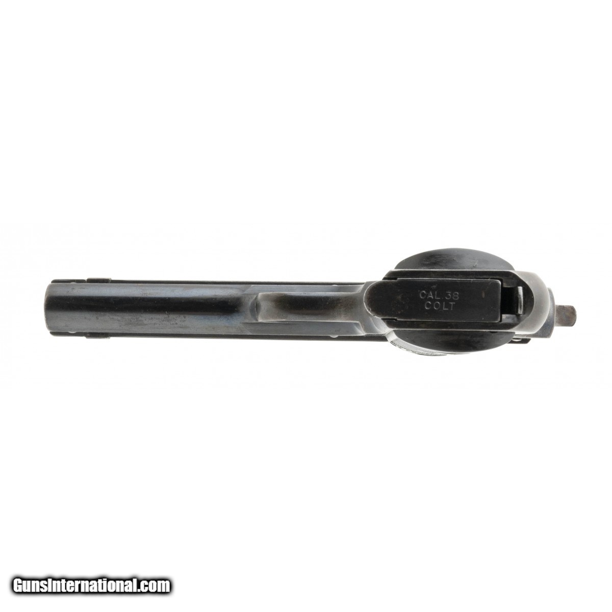 Description: " SN: 34880. Made in 1914, .38 ACP (9x23mmSR), 4.48" barrel. Bore is excellent & condition overall is very good + with original factory bluing. Comes with original plastic COLT grips & one original 7-round magazine. SOLD Curio/Relic: Yes |