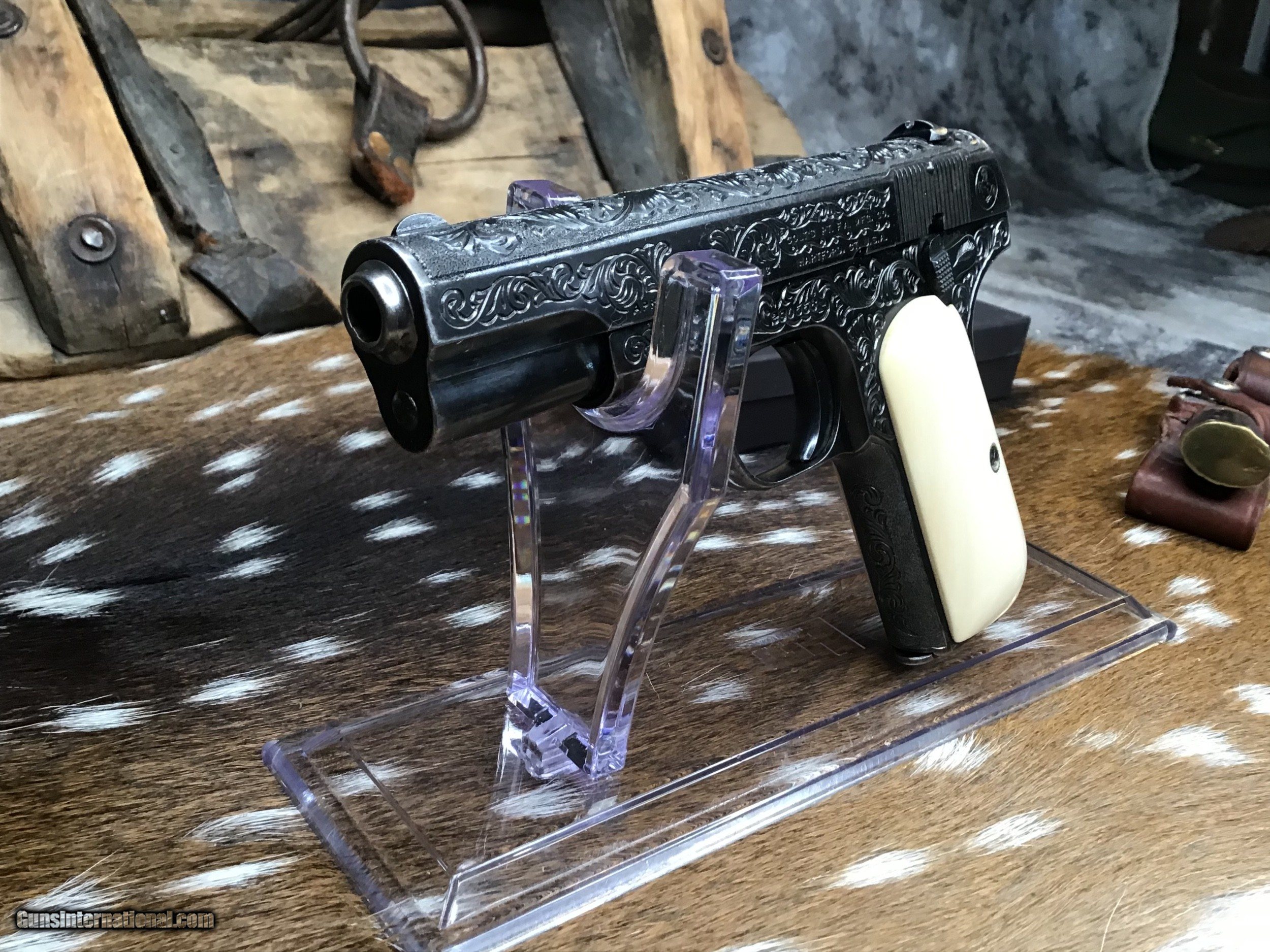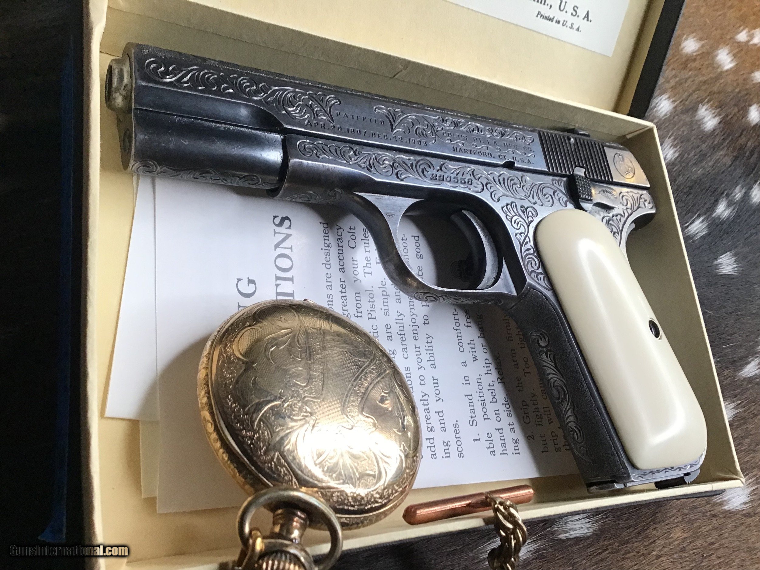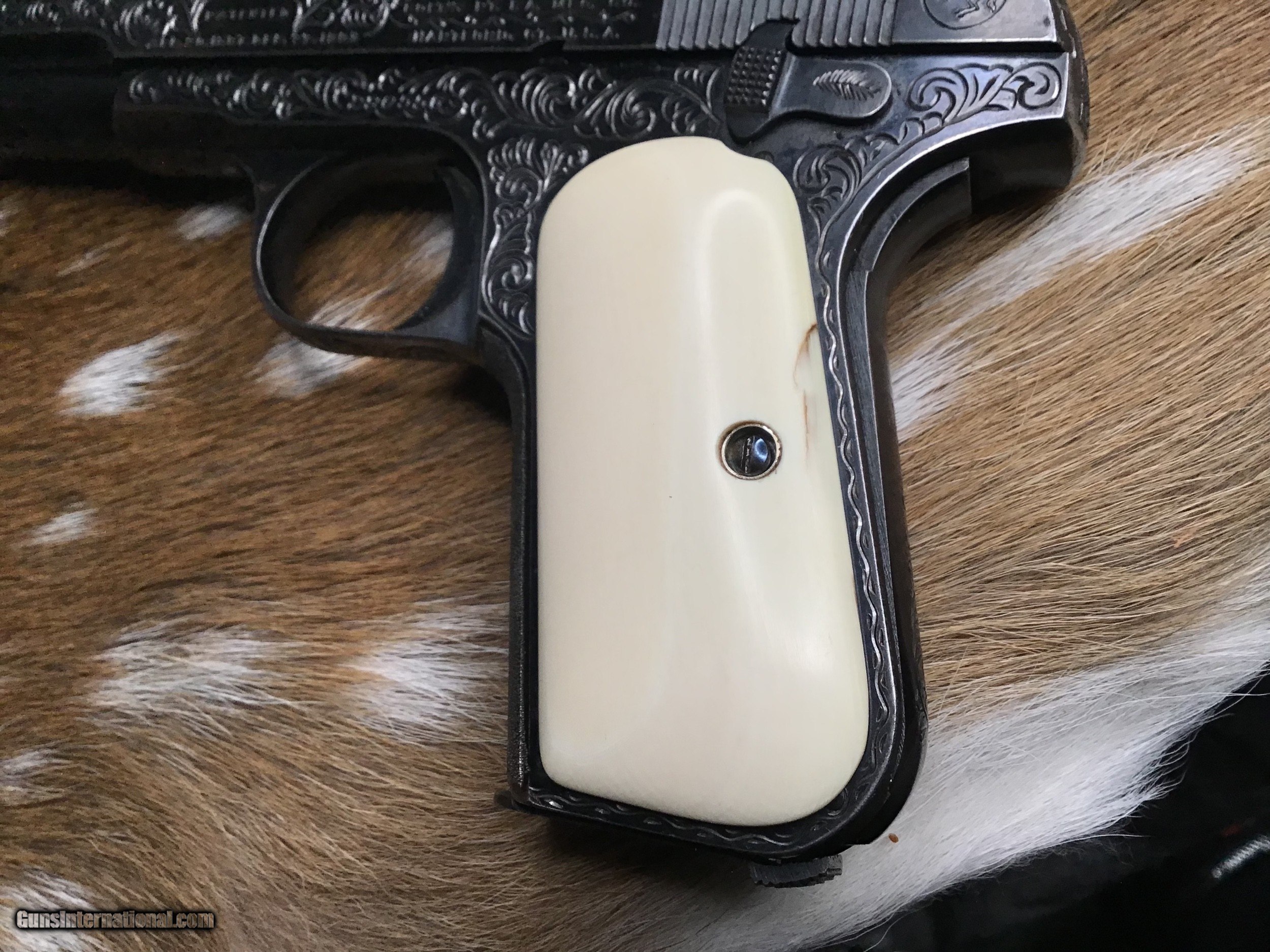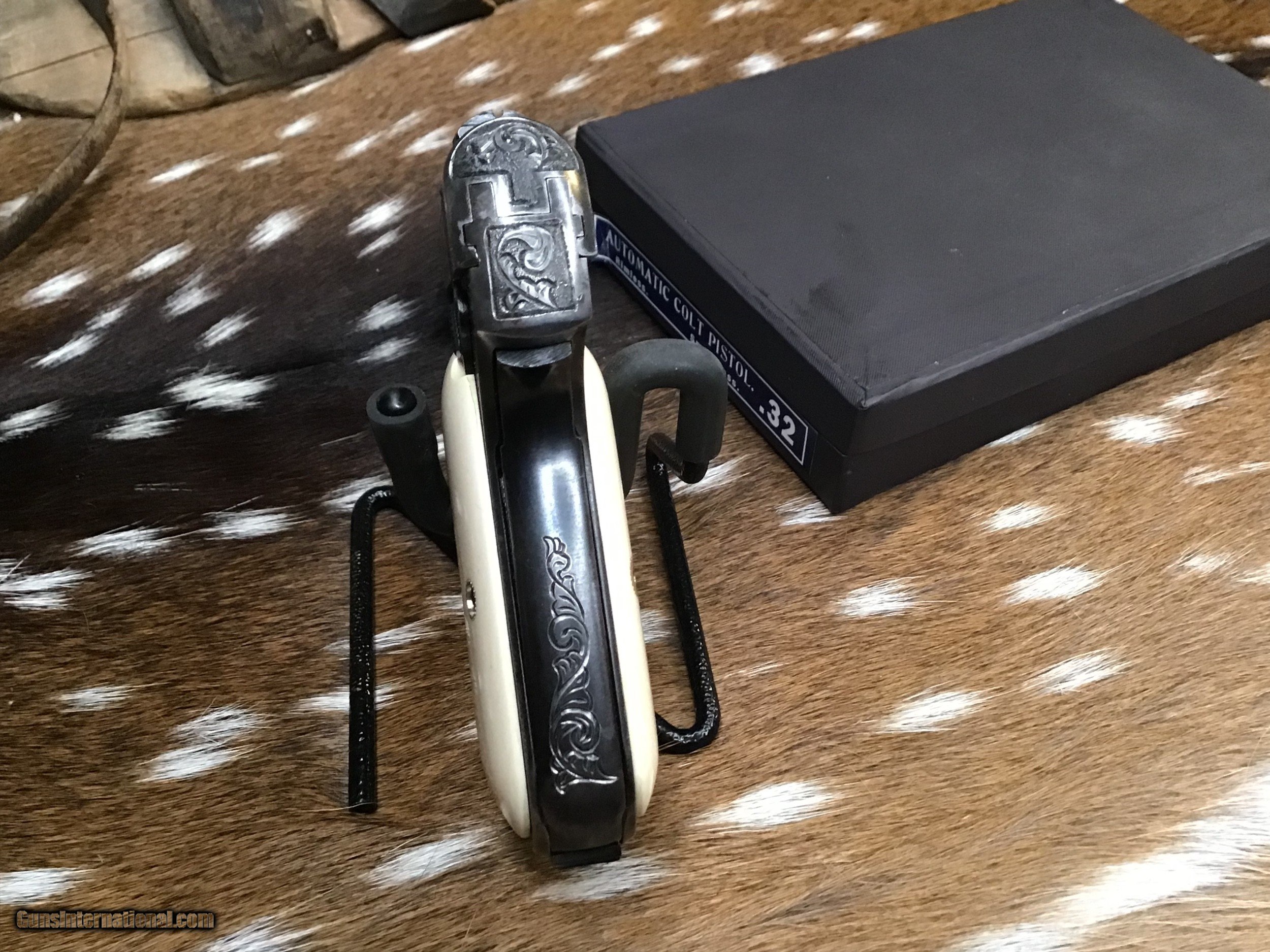 1903 Colt Hammerless .32 acp. Hand Engraved, Ivory Grips, boxed, 1919 Mfg.