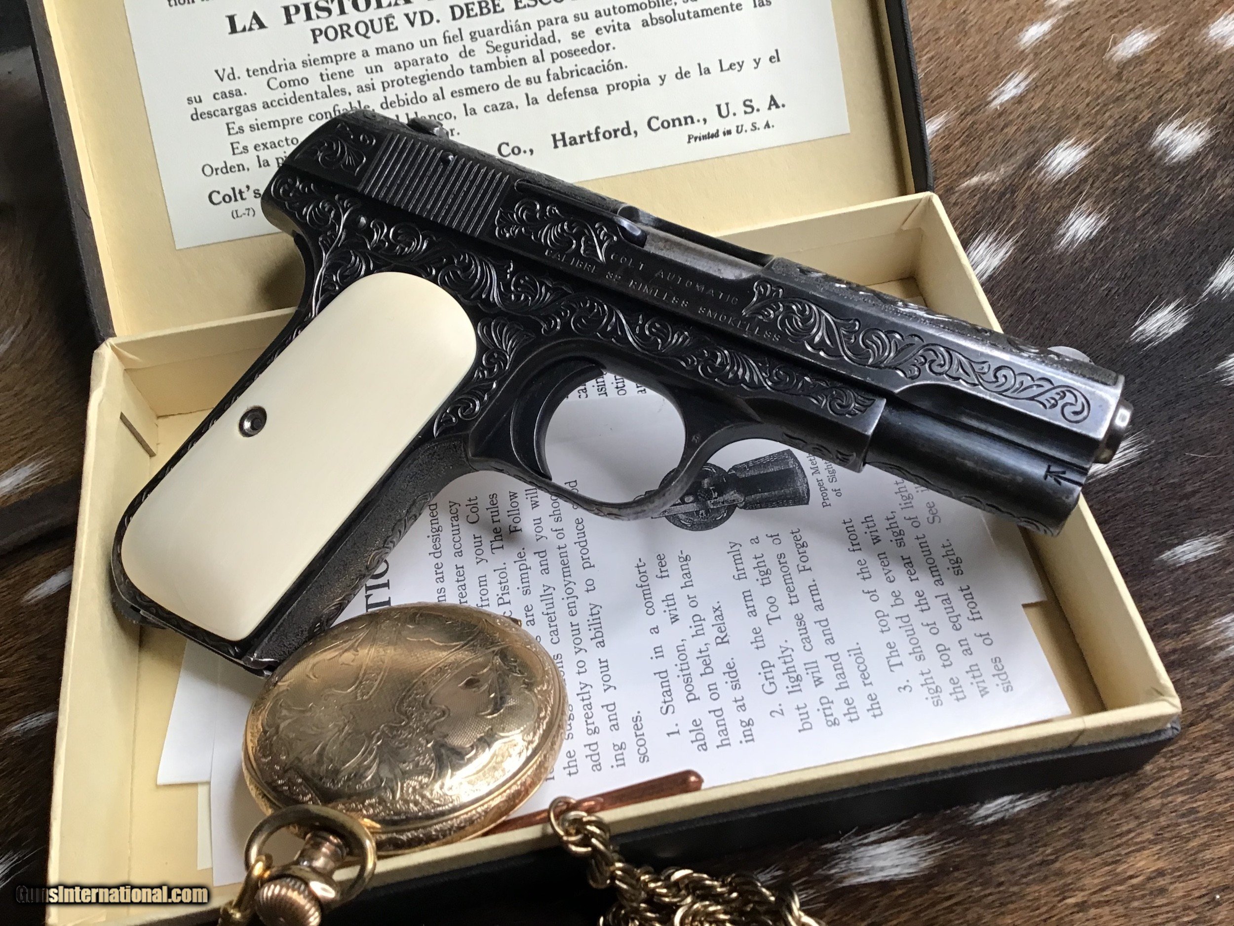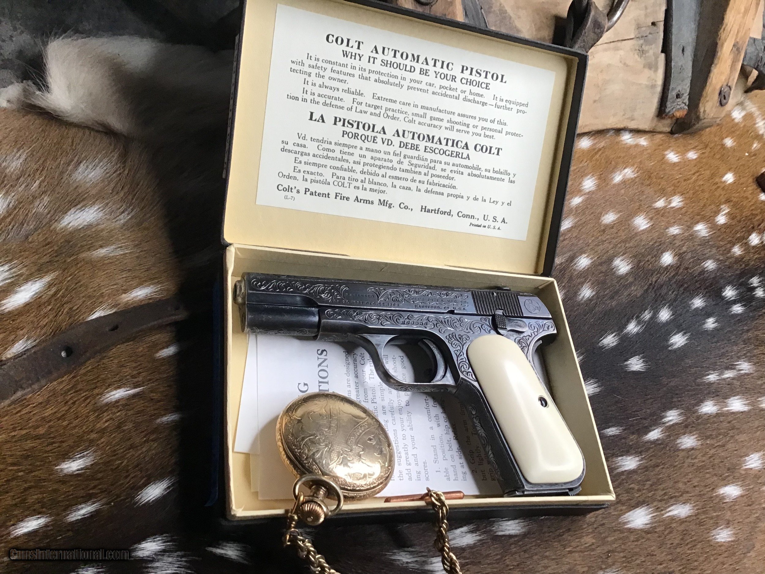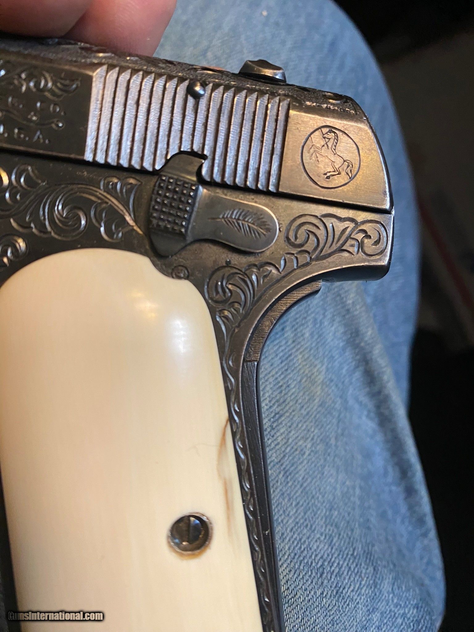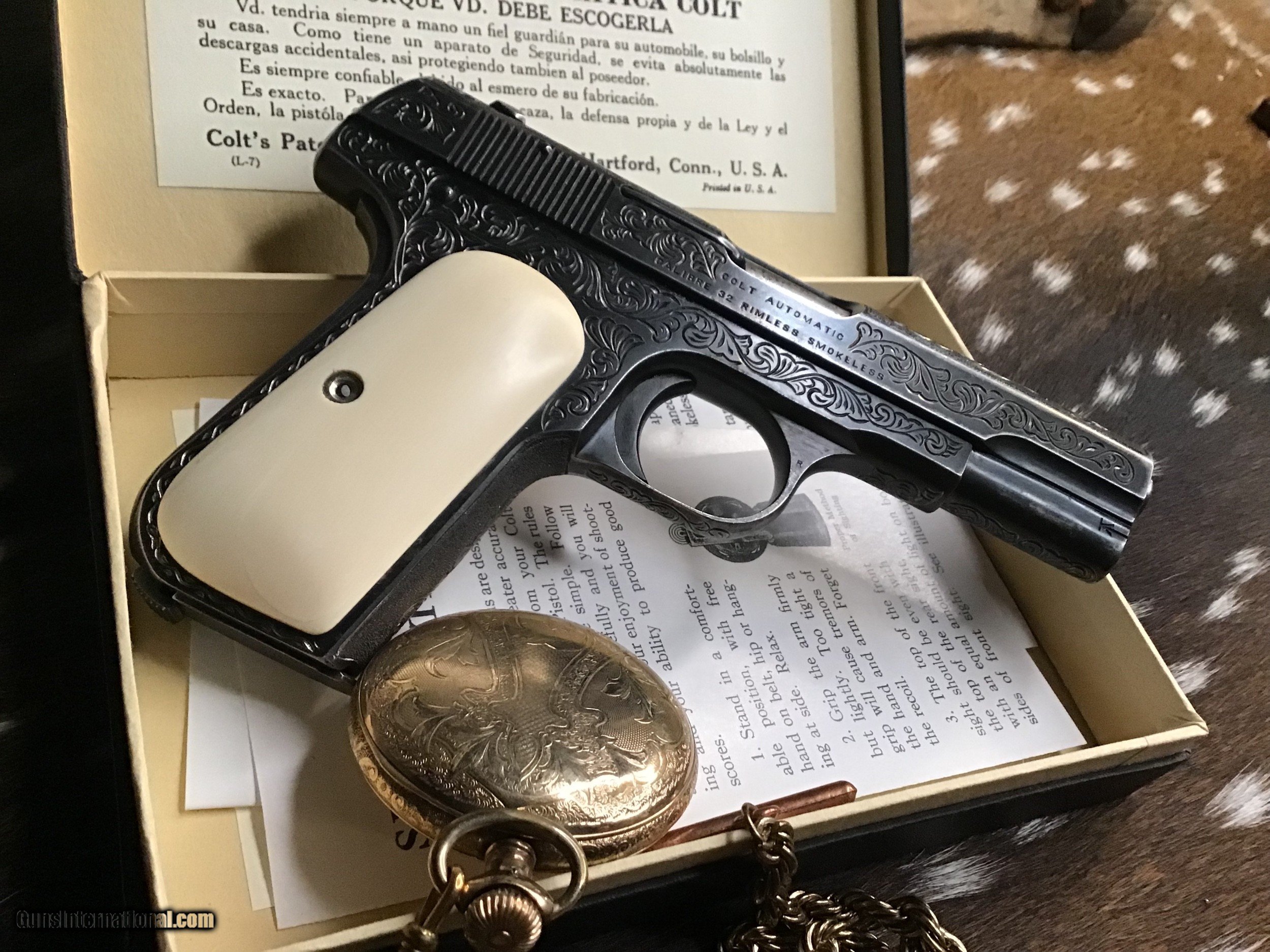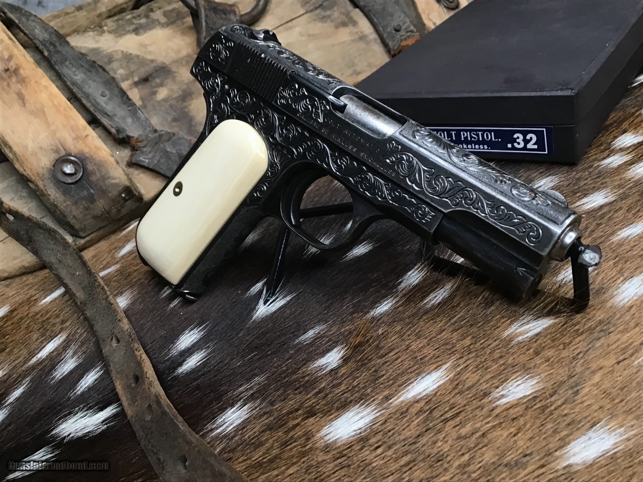 1903 Colt Hammerless .32 acp. Hand Engraved, Ivory Grips, boxed, 1919 Mfg.