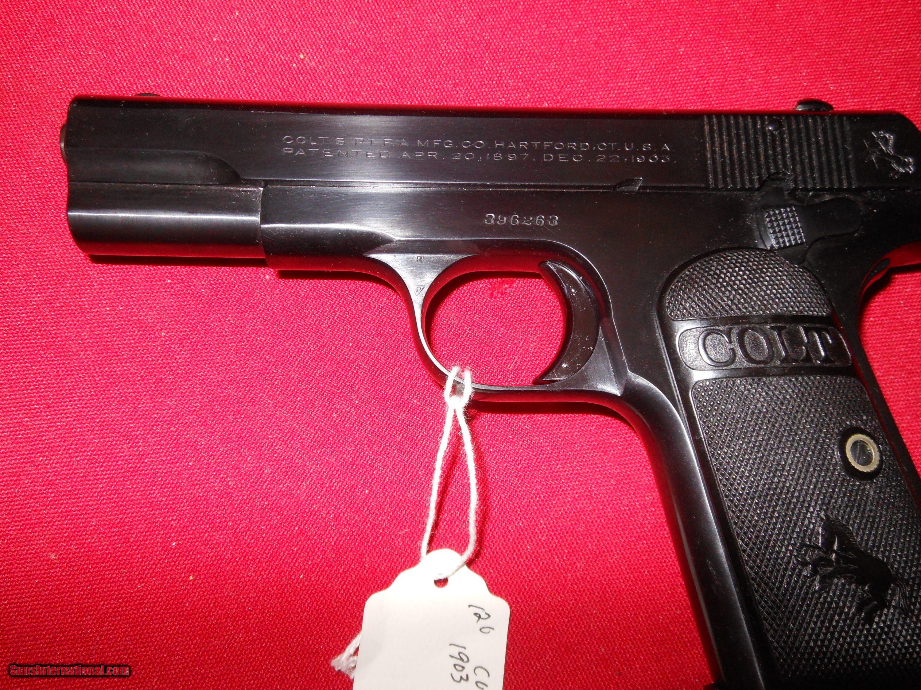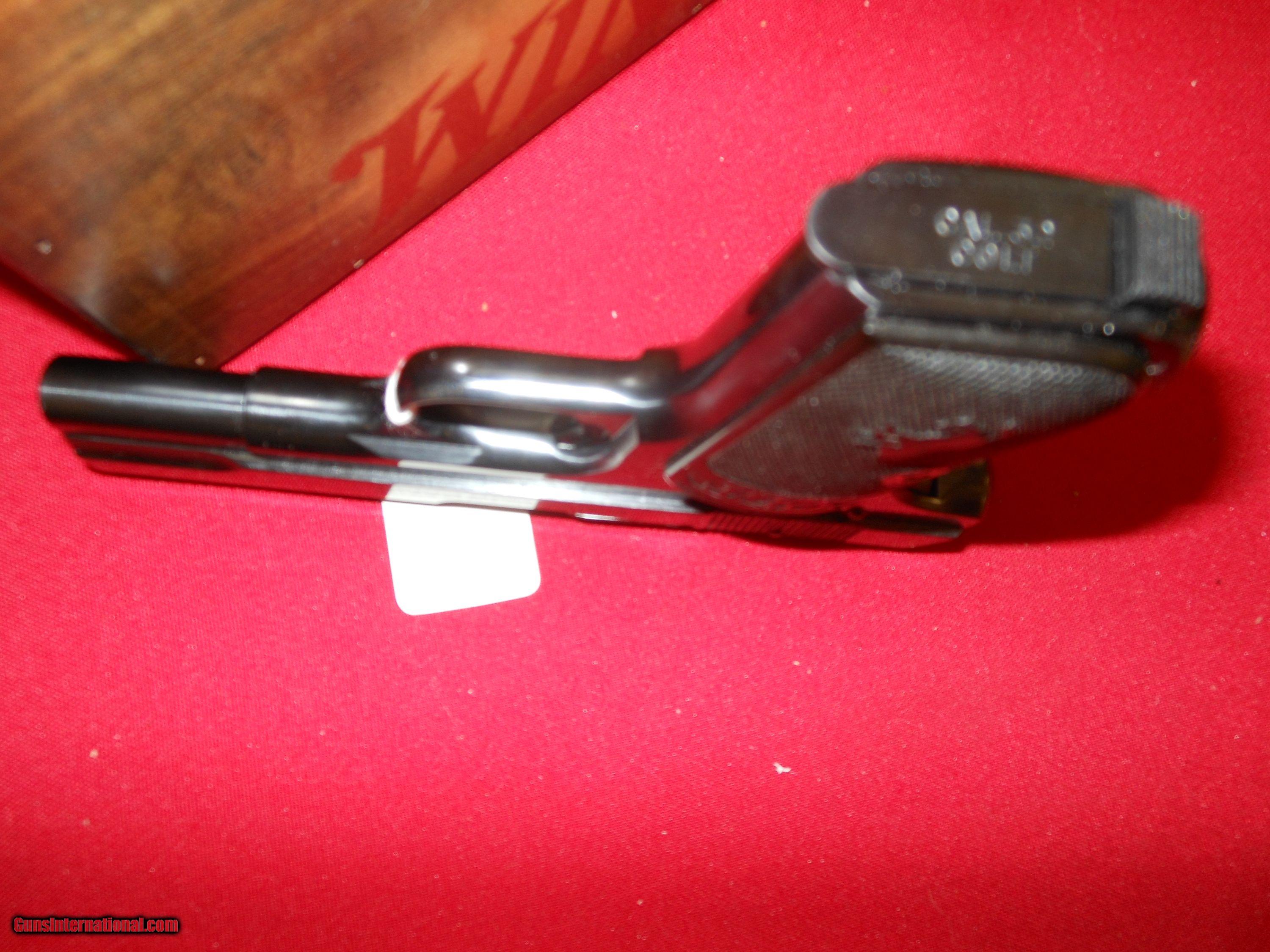 Description: Born in 1921, model 1903 pocket model, cal. 32 acp,in 100% condition, like new in the box. add for postage, wrapping and ins. deal pending, 6-10-18 SOLD Serial Number: 396263 |