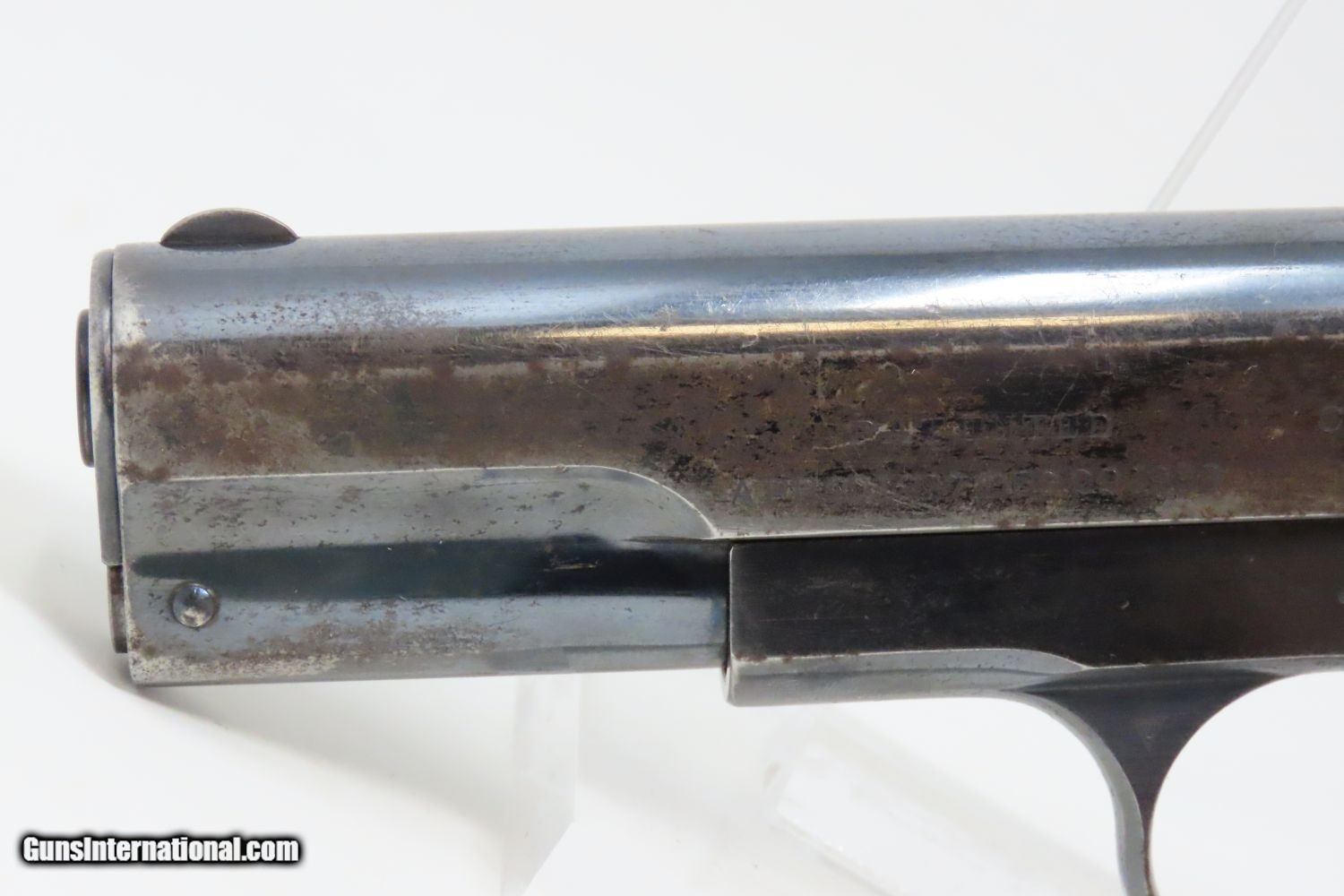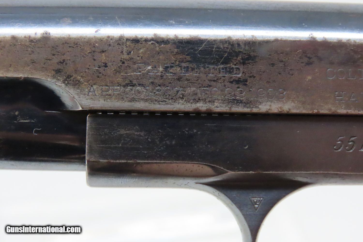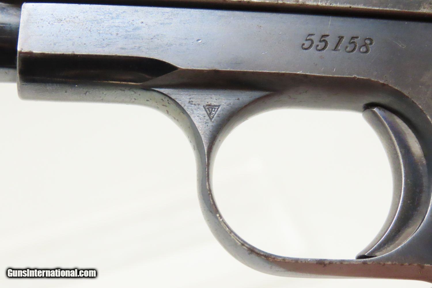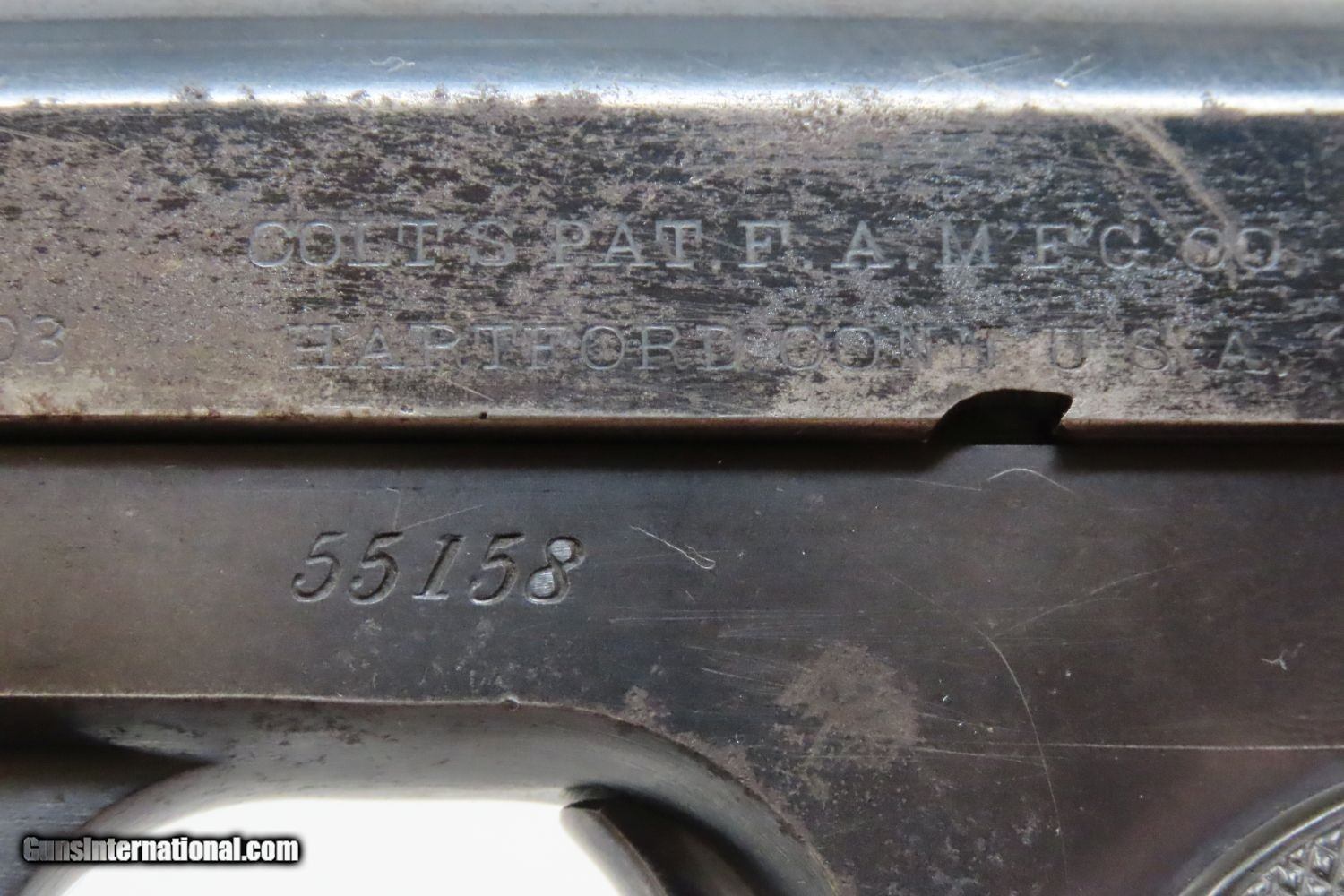Description: 1907 COLT Model 1903 POCKET HAMMERLESS .32 ACP Semi-Automatic PISTOL C&R Pre-WORLD WAR I Sidearm, Carry Pistol Here we present a Colt Model 1903 Pocket Hammerless Semi-Automatic Pistol manufactured in Hartford, Connecticut is 1907. The Colt Model 1903 Pocket Hammerless was a short-recoil, semi-automatic pistol, designed by the American arms designer John Moses Browning. The Colt Model 1903 Pocket Hammerless (not to be confused with the Colt Model 1903 Pocket Hammer) is a .32 ACP caliber, self-loading, semi-automatic pistol. Despite the title "hammerless", the Model 1903 does have a hammer. The hammer is covered and hidden from view under the rear of the slide. This allows the pistol to be carried in and withdrawn from a pocket quickly and smoothly without snagging. Approximately 570,000 Colt Pocket Hammerless pistols were produced from 1903 to 1945, in five different types. Some were issued to US Army and US Air Force general officers from World War II through the 1970s. In addition to lawful owners, many gangsters of the pre-World War II era favored the Model 1903 because they were relatively small and easily concealed. It is said that Al Capone kept one in his coat pocket and Bonnie Parker used one to break Clyde Barrow out of jail after smuggling it into the jail by taping it to her thigh. Bank robber John Dillinger was carrying this model of pistol when he was shot by FBI agents outside the Biograph theater on July 22, 1934. The overall condition is fine. Great original blue finish. The action is strong. The bore is in good shape. Both grips are firm and sharp with minimal handling marks. A fantastic example of the Colt 1903 that is sure to please! This firearm is classified as a Curio & Relic. Barrel is 3-3/4 inches. Caliber: .32 ACP Overall condition as seen in photos. Very Fast. Very Safe. FREE SHIPPING. Will need to be sent to your local FFL or C&R licensee. This firearm is classified as a Curio & Relic. Guaranteed AUTHENTIC & Includes CERTIFICATE OF AUTHENTICITY. ancestryguns $1475 #201154 SOLD Curio/Relic: Yes |