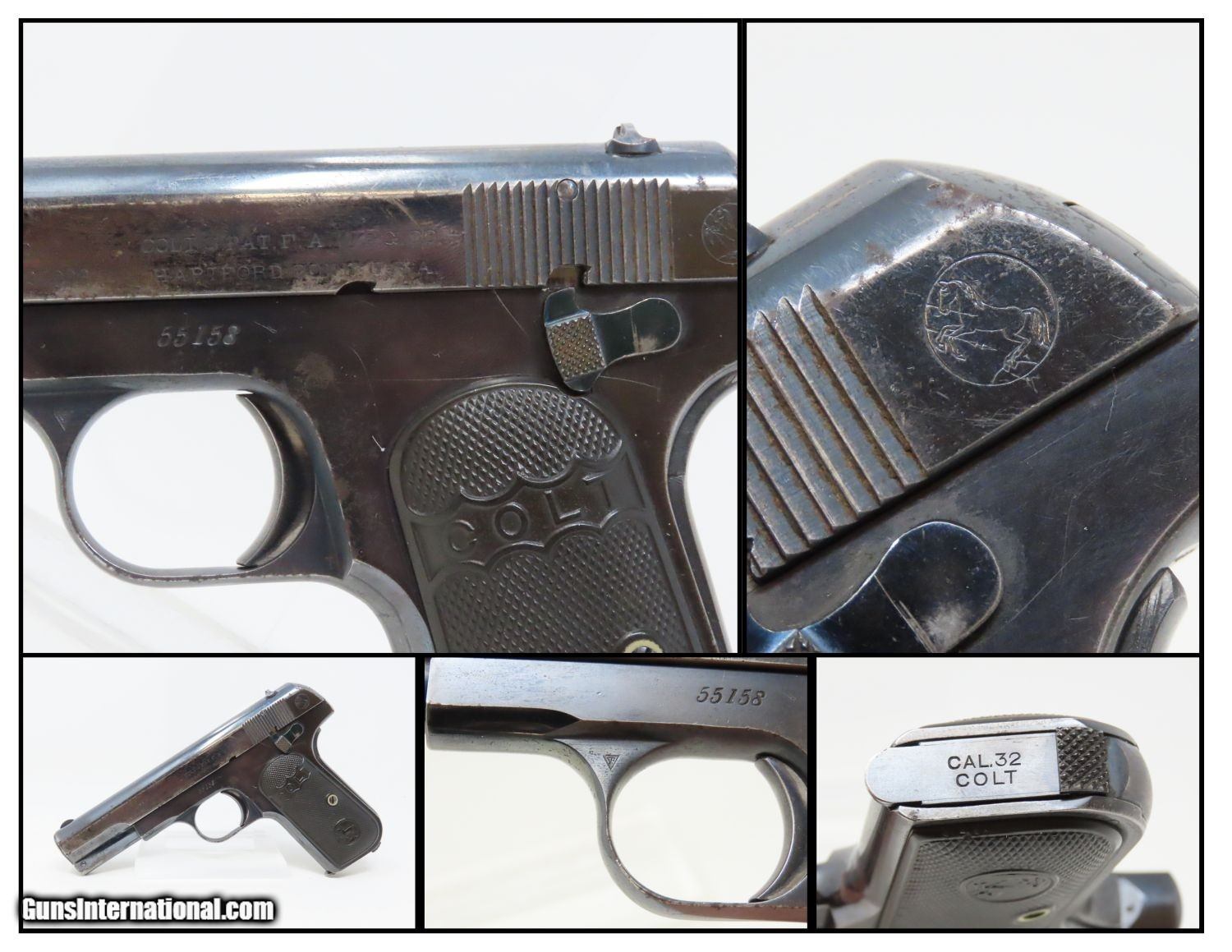1907 COLT Model 1903 POCKET HAMMERLESS .32 ACP Semi-Automatic PISTOL C&R Pre-WORLD WAR I Sidearm, Carry Pistol