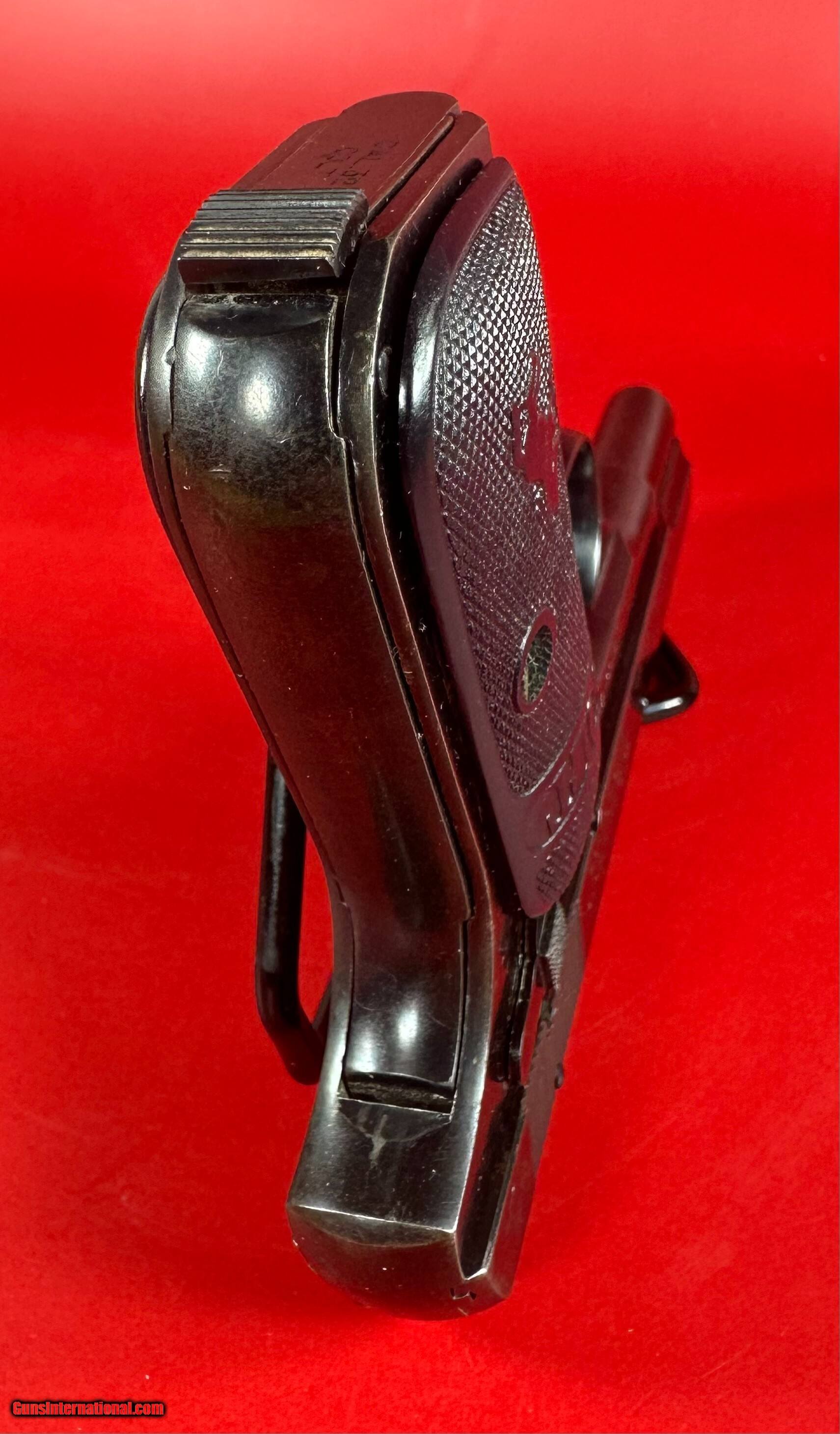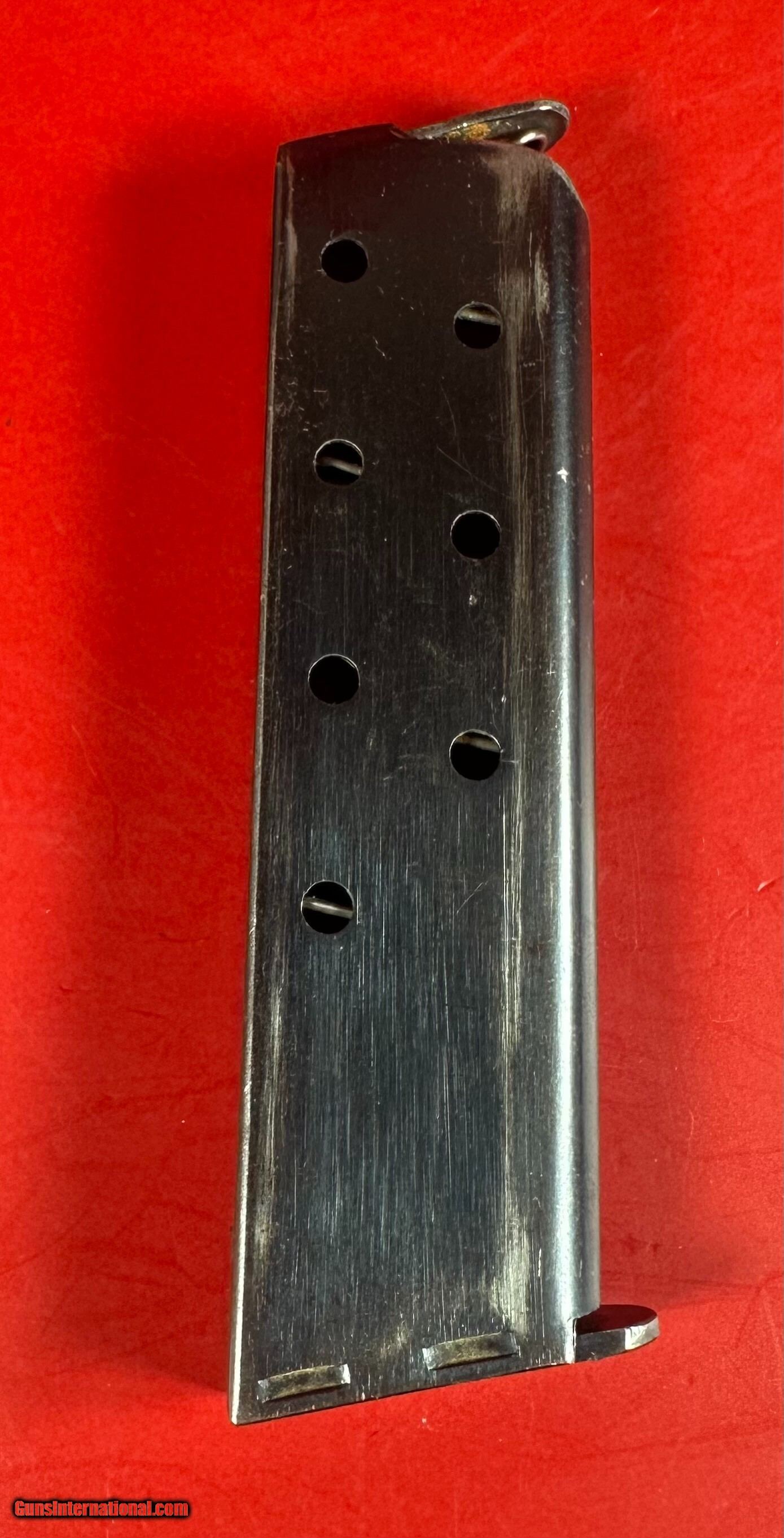 Description: 1919 Colt Model 1903 Pocket Hammerless .32 ACP 3.75" barrel. Matching numbers. Original one tone magazines in excellent condition. Action functions the way it should. Metal finish is about 98%. Bright bore with strong rifling, grips don't have any cracks or chips and about 98%. Please , refer to pictures. This gun will make a great addition to any collection. Layaway and payment plan are available. Handgun Caliber: .32 ACP (7.65x17mm Browning SR) Price: $1,199.00 Shipping: $39.00 Contact Seller |