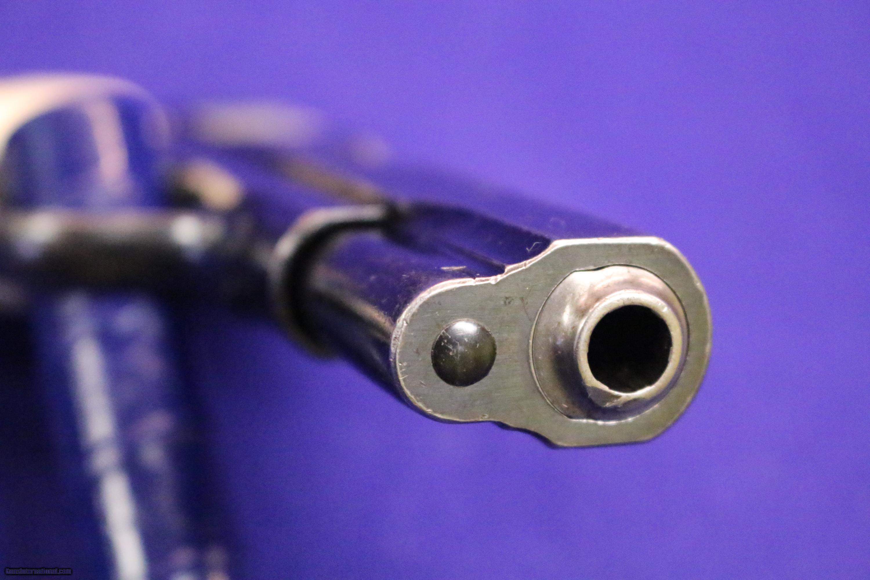 Description: Clean 1920's vintage Colt 1903 hammer less model in .32 smokeless rimless cal. Strong original finish overall with normal fade/finish loss on the front strap and grip safety. White Colt medallion Eagle synthetic grips that fit and look great on the gun. Non two tone mag. Excellent bore. very nice gun. SOLD Curio/Relic: Yes |