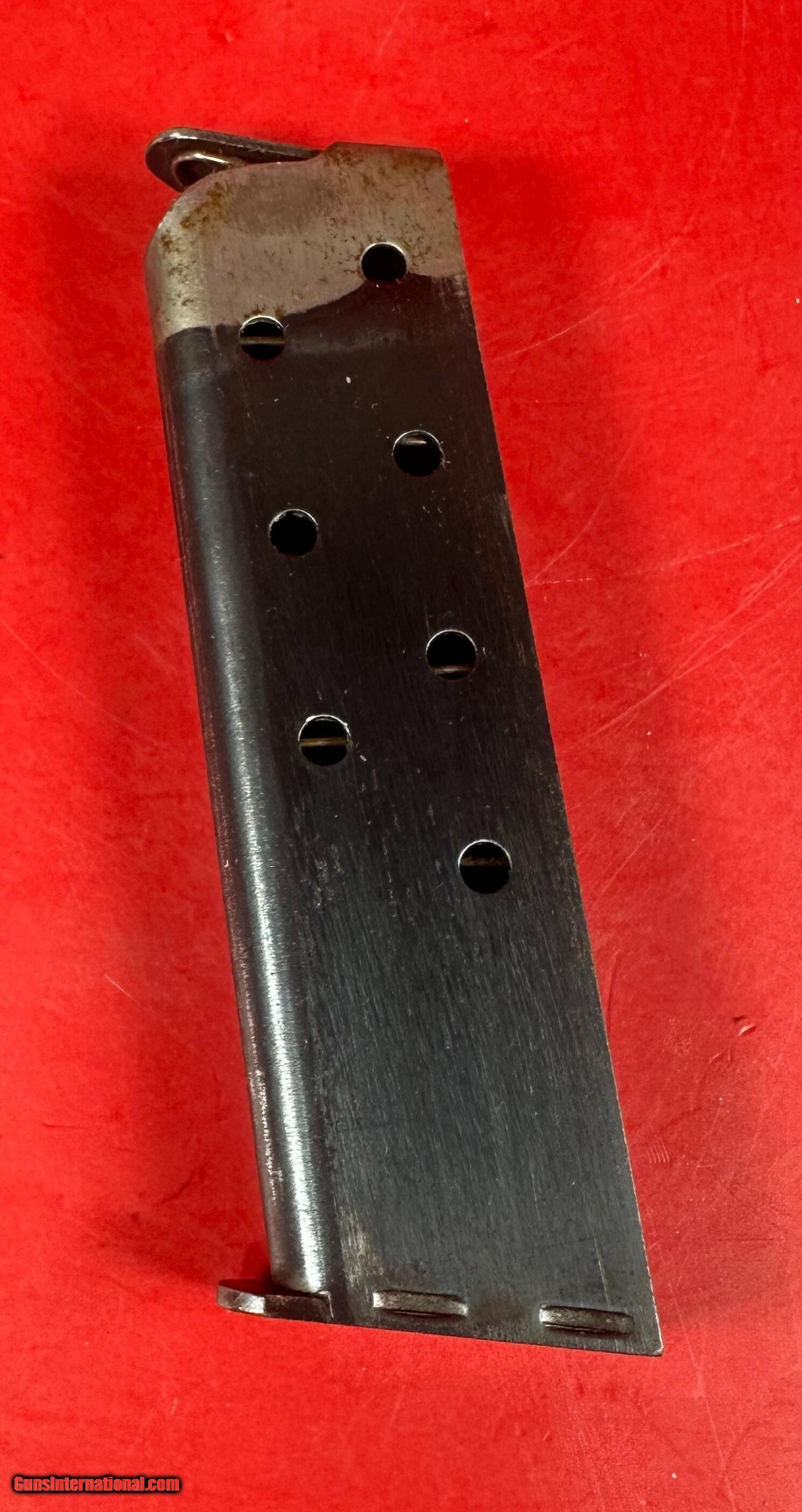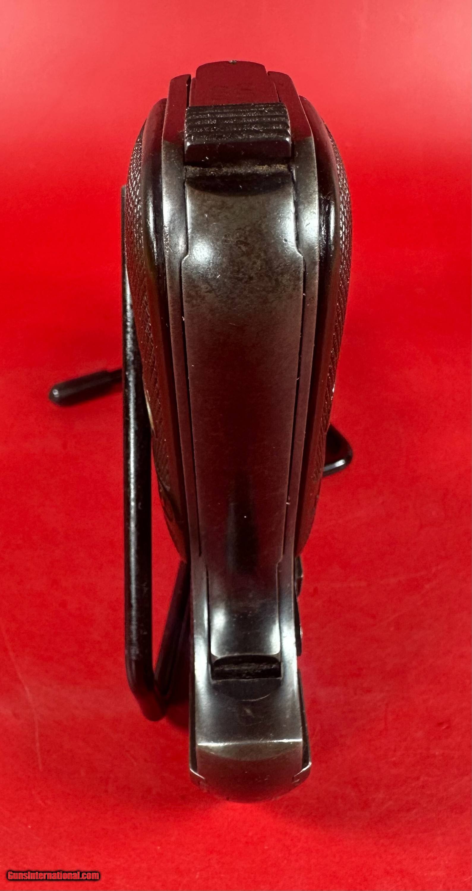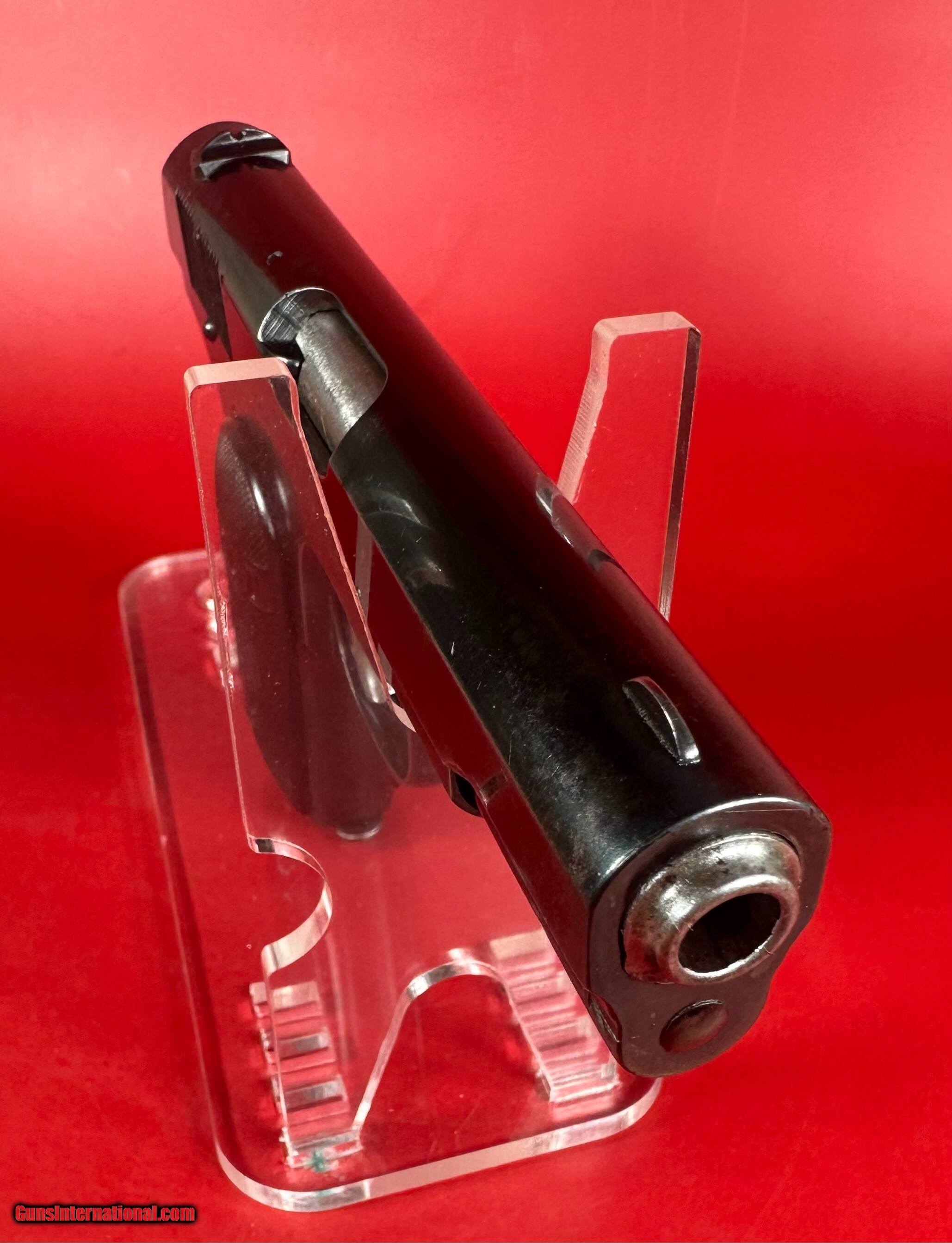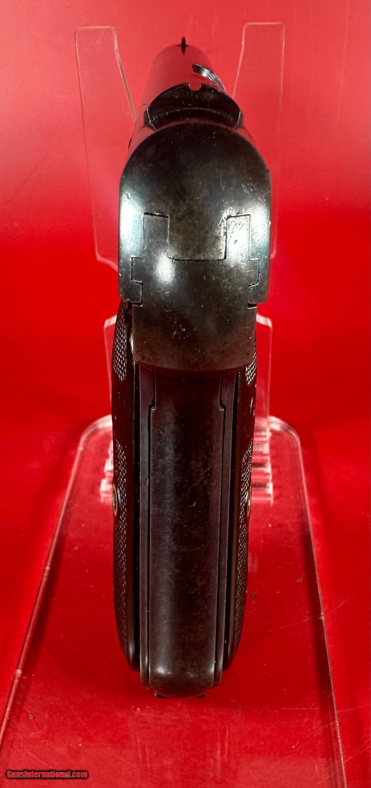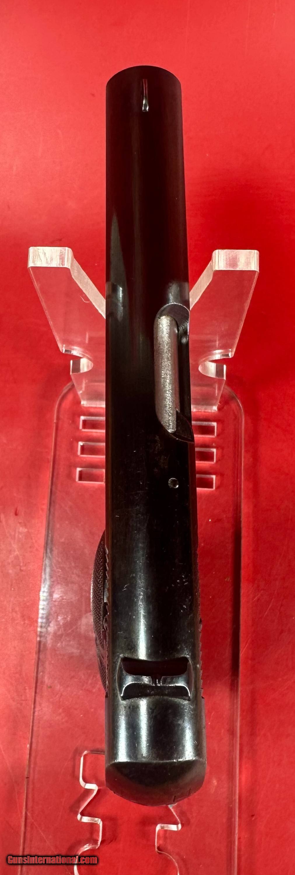 Description: 1920 Colt Model 1903 Pocket Hammerless .32 ACP 3.75" barrel. Original two tone magazine is in excellent condition. Metal finish is about 98%. Shiny bright bore with strong rifling. Grips don't have any cracks or chips and about 98%. Stunning gun. Please , refer to pictures. Will make a great addition to any collection. Layaway and payment plan are available. Price: $1,199.00 Shipping: $39.00 Contact Seller |
