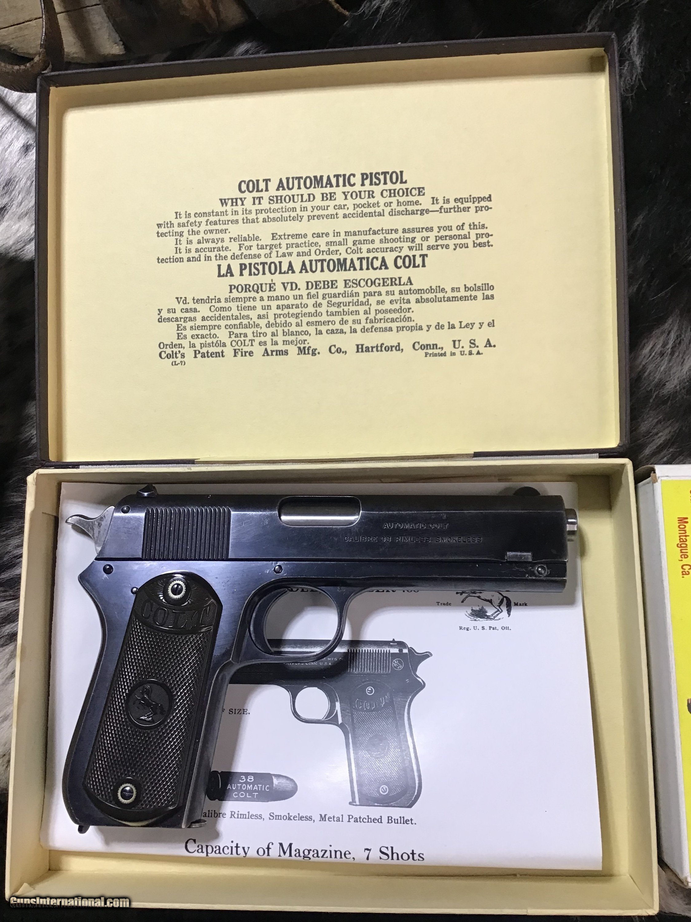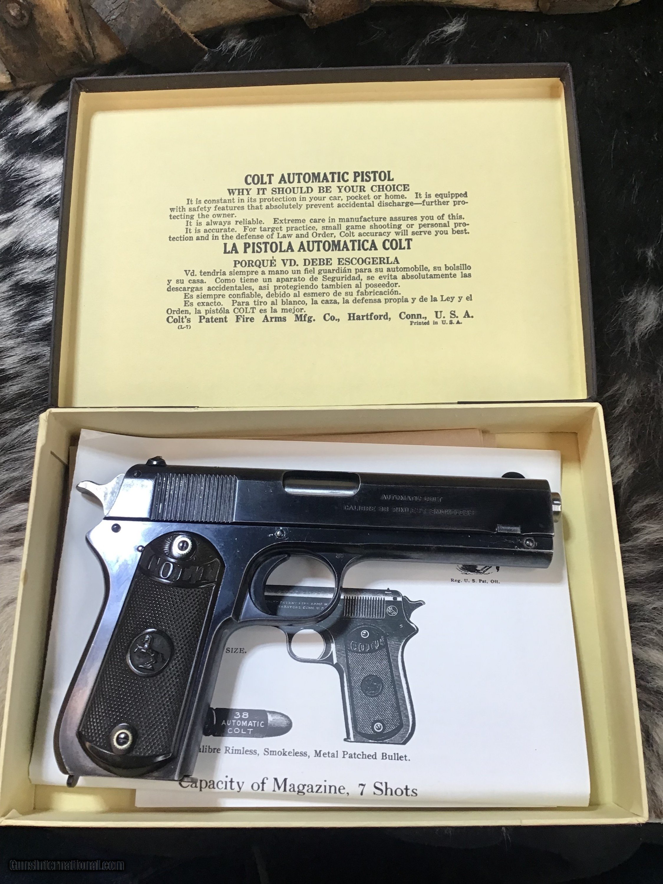 1920 Mfg. Colt 1903 Pocket Hammer Pistol .38 Auto, ExcellentCond. 4.5” Barrel, Boxed. Trades Welcome