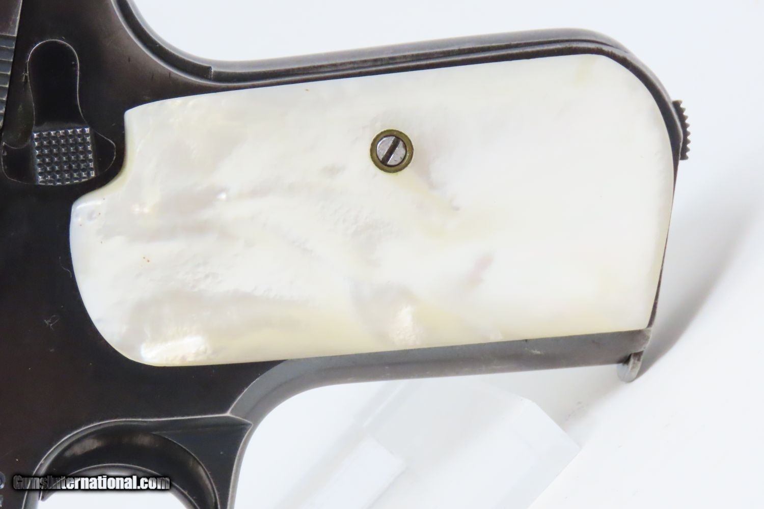 Description: 1930 COLT Model 1903 POCKET HAMMERLESS .32 ACP Semi-Automatic PISTOL C&R FINE with MOTHER of PEARL GRIPS! Here we present a Colt Model 1903 Pocket Hammerless Semi-Automatic Pistol manufactured in Hartford, Connecticut is 1930. The Colt Model 1903 Pocket Hammerless was a short-recoil, semi-automatic pistol, designed by the American arms designer John Moses Browning. The Colt Model 1903 Pocket Hammerless (not to be confused with the Colt Model 1903 Pocket Hammer) is a .32 ACP caliber, self-loading, semi-automatic pistol. Despite the title "hammerless", the Model 1903 does have a hammer. The hammer is covered and hidden from view under the rear of the slide. This allows the pistol to be carried in and withdrawn from a pocket quickly and smoothly without snagging. Approximately 570,000 Colt Pocket Hammerless pistols were produced from 1903 to 1945, in five different types. Some were issued to US Army and US Air Force general officers from World War II through the 1970s. In addition to lawful owners, many gangsters of the pre-World War II era favored the Model 1903 because they were relatively small and easily concealed. It is said that Al Capone kept one in his coat pocket and Bonnie Parker used one to break Clyde Barrow out of jail after smuggling it into the jail by taping it to her thigh. Bank robber John Dillinger was carrying this model of pistol when he was shot by FBI agents outside the Biograph theater on July 22, 1934. The overall condition is fine. Great original blue finish. The action is excellent. The bore is bright. Both pearl grips are in excellent shape remining vibrant. All markings are clear and legible. A fine example with a bit of a flourish! This firearm is classified as a Curio & Relic. Barrel is 3-3/4 inches. Caliber: .32 ACP Overall condition as seen in photos. Very Fast. Very Safe. FREE SHIPPING. Will need to be sent to your local FFL or C&R licensee. This firearm is classified as a Curio & Relic. Guaranteed AUTHENTIC & Includes CERTIFICATE OF AUTHENTICITY. ancestryguns $1795 #201156 SOLD Curio/Relic: Yes |