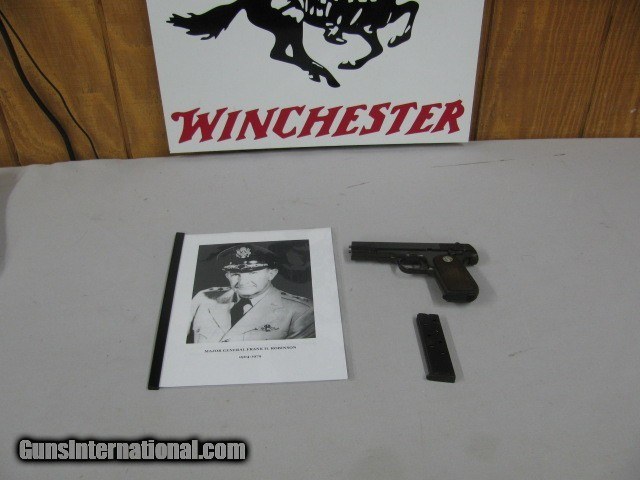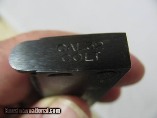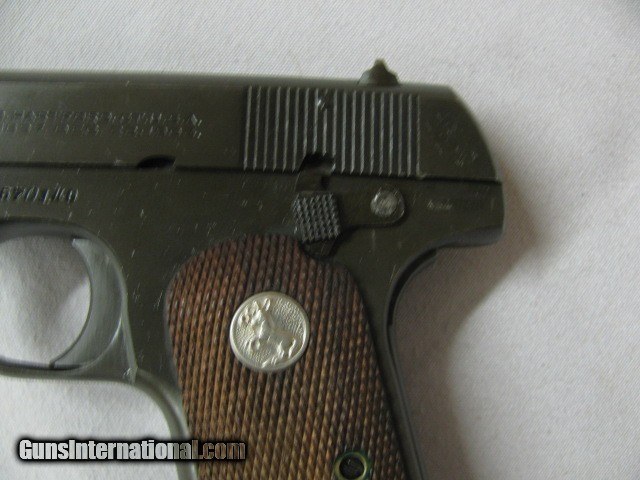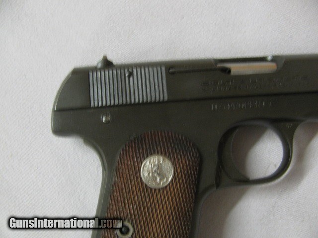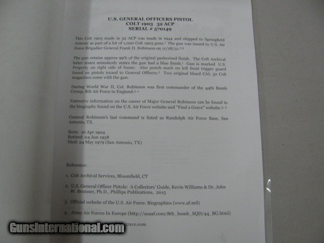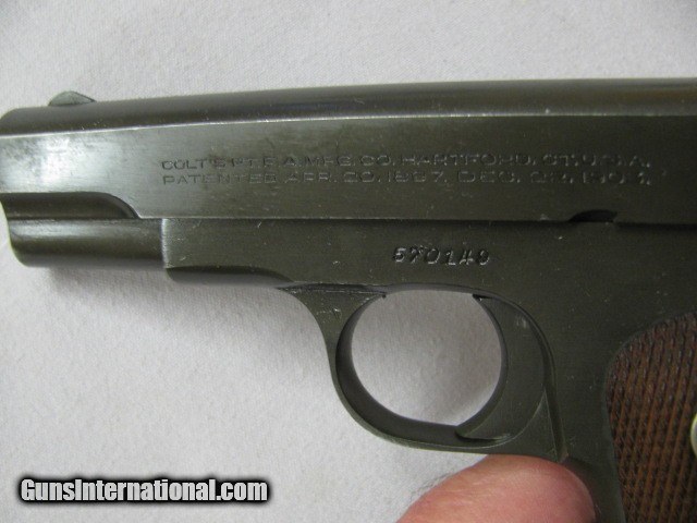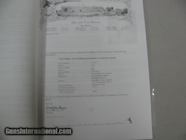 Description: 7527 Colt 1903 OFFICERS MODEL 32 ACP 1944 mfg out of 1,000, sn570149, 2 magazines, 8 pages of documentation. dont miss this one. excellent condition. all original,---- SOLD |