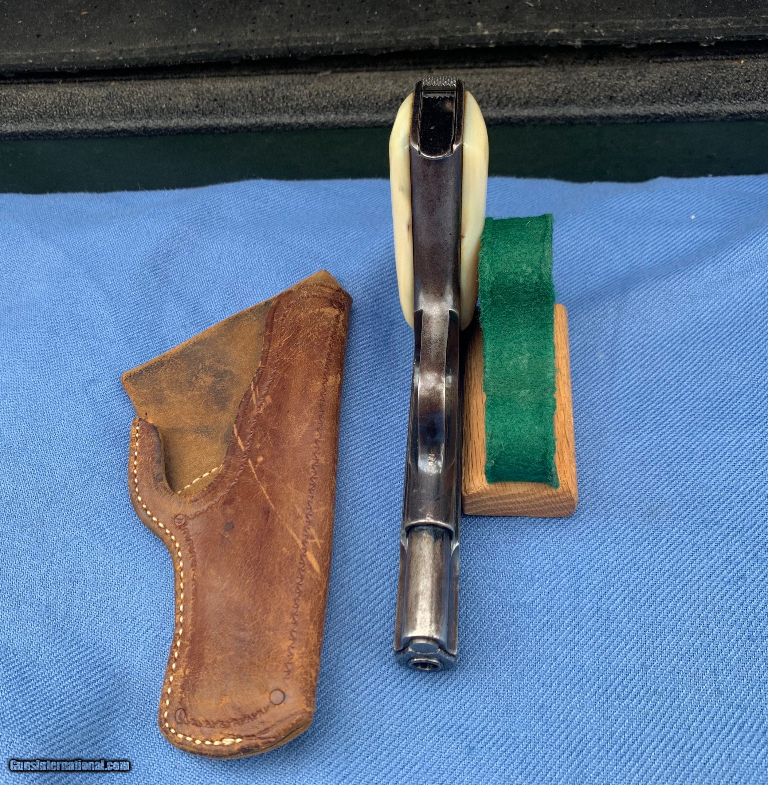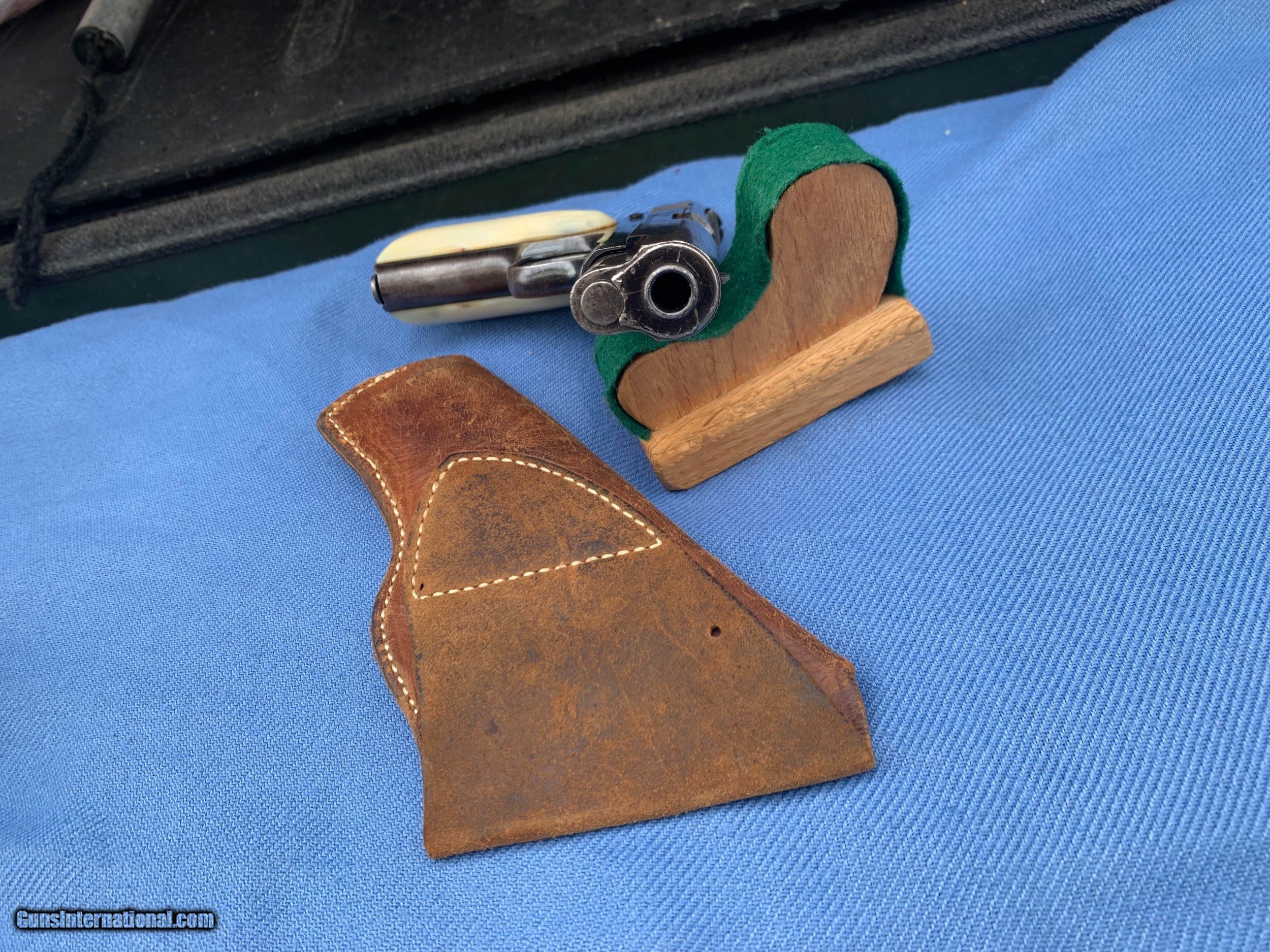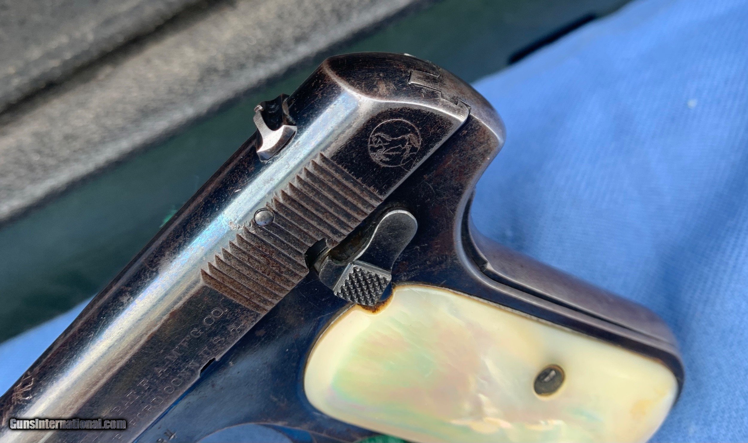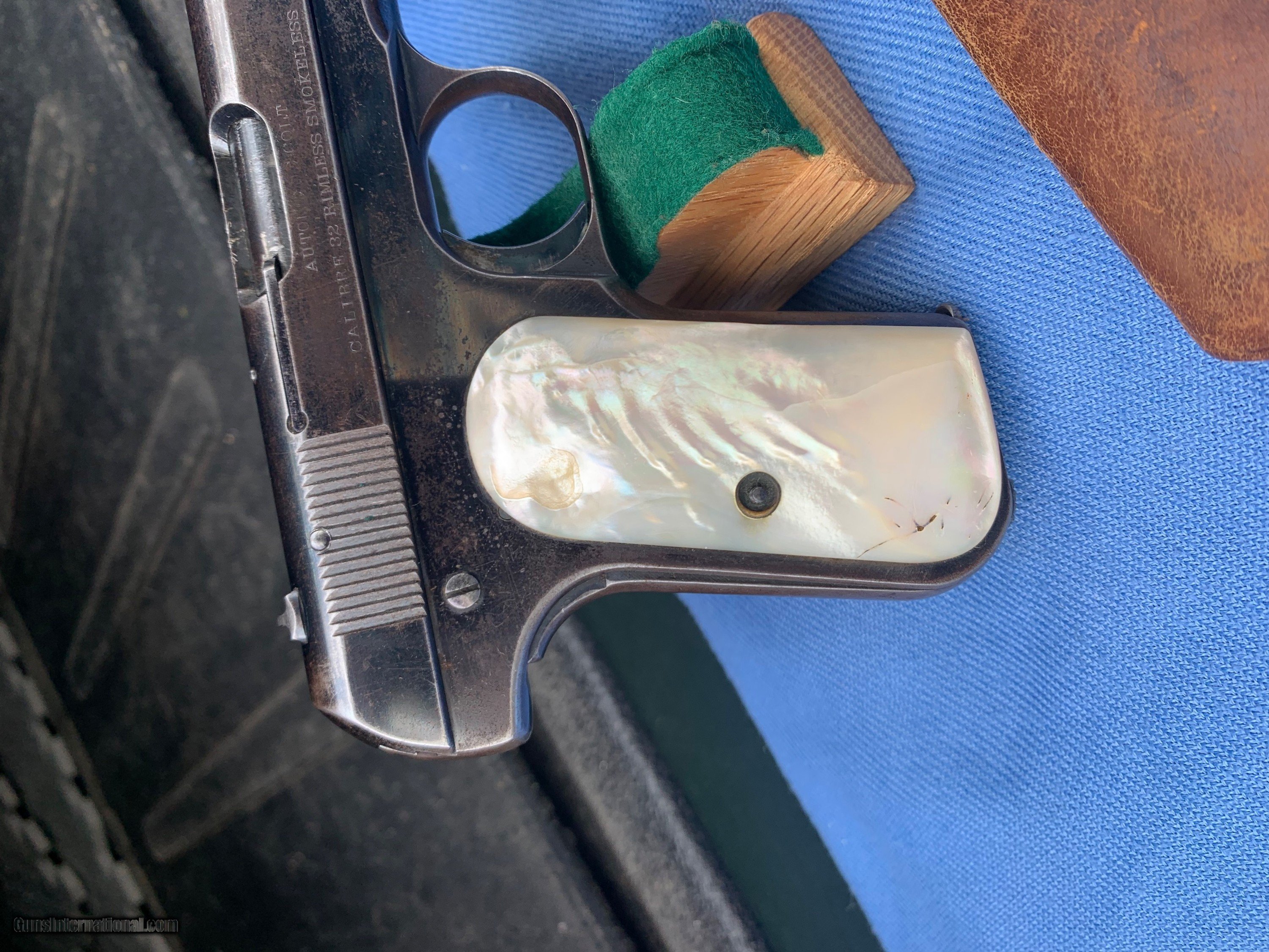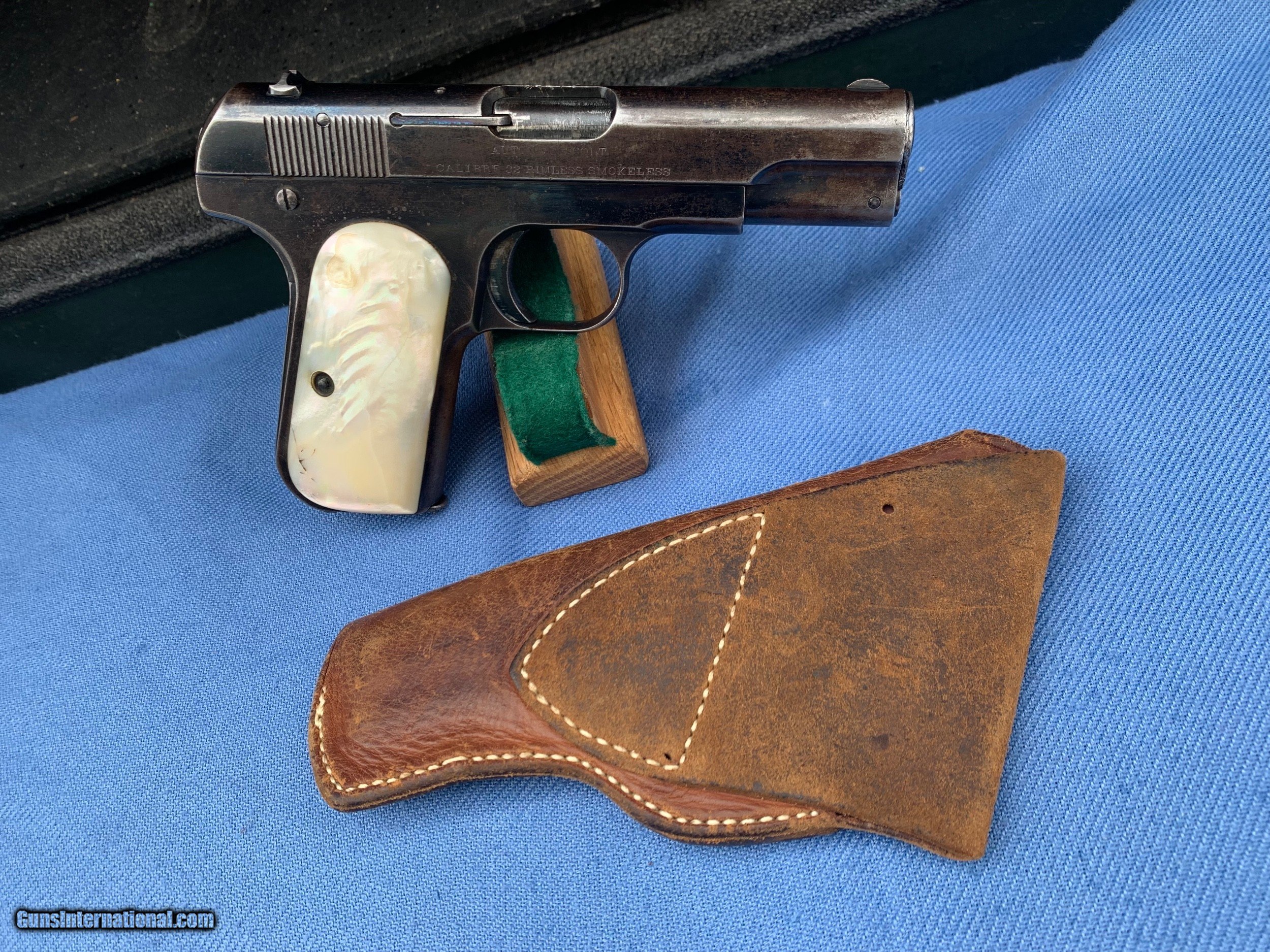 Description: Here's a Very early Colt 1903 ! Serial number 74484 . Early Bushing gun ! Love these Early 1903's because they used that Fire blue finish early on . Gun comes with original Mother of Pearl Grips ! Period leather holster . 32 auto . Gun has wear and has seen use . It still has most of its original blue finish with mostly holster wear . Markings are sharp . Bore and mechanics are in excellent condition! Gun locks up tight and is in excellent working order ! Super nice early Colt 1903 ! Please review my photos and please email me with any questions ? 3 day inspection as allways ! Thank you for looking, Little Jo SOLD Antique: Yes Handgun Caliber: .32 ACP (7.65x17mm Browning SR) Manufacturer: Colt Model: 1903 Serial Number: 74484 Condition: Excellent |