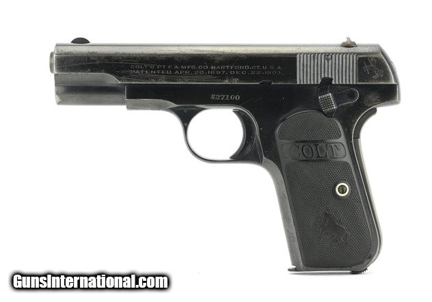 Colt 1903 .32 ACP caliber pistol. Pre-war pocket auto made in 1923. Has some very light surface rust on the slide, still has about 90% original blue finish. The bore is very good with strong rifling and very light etching.