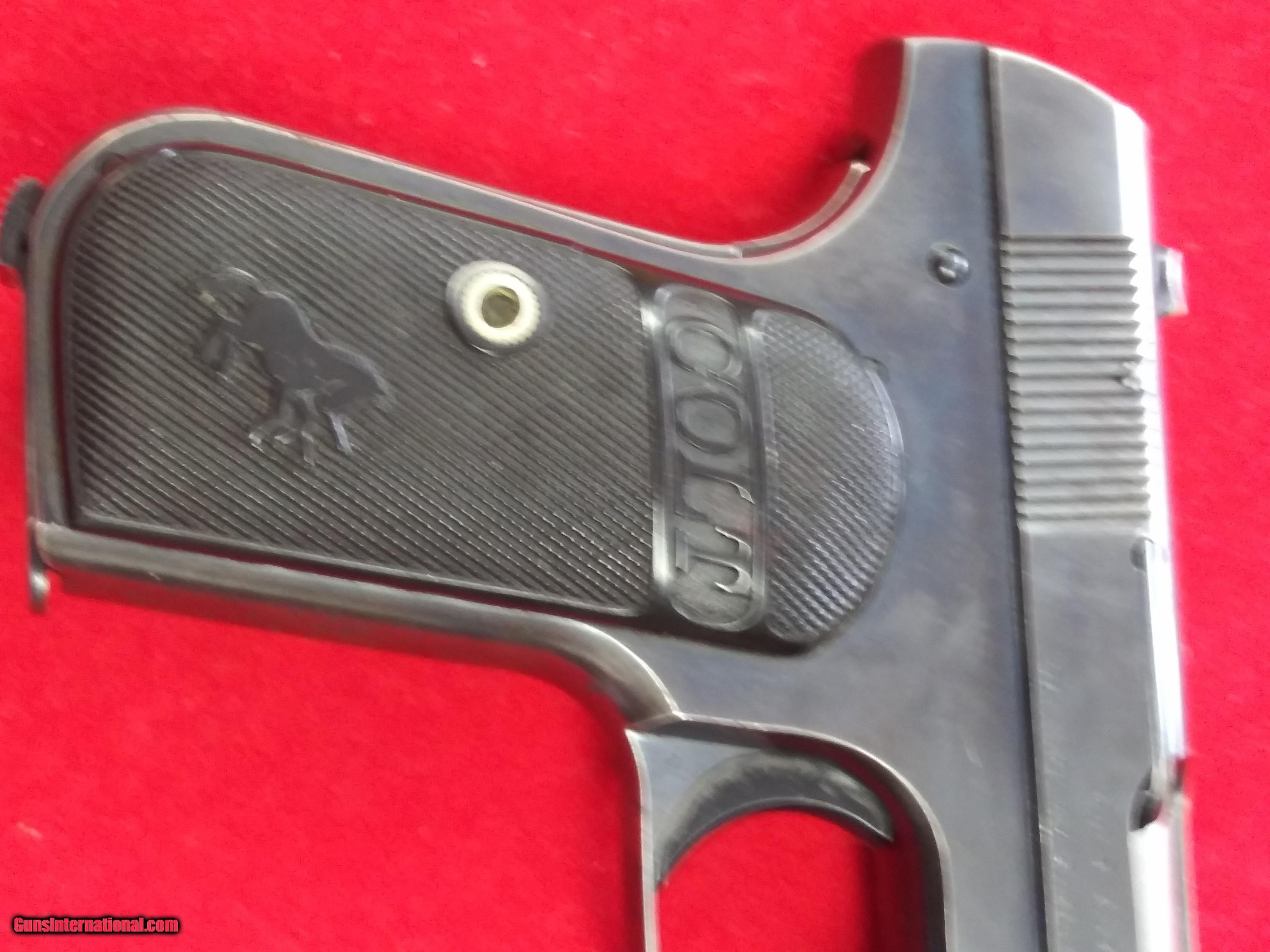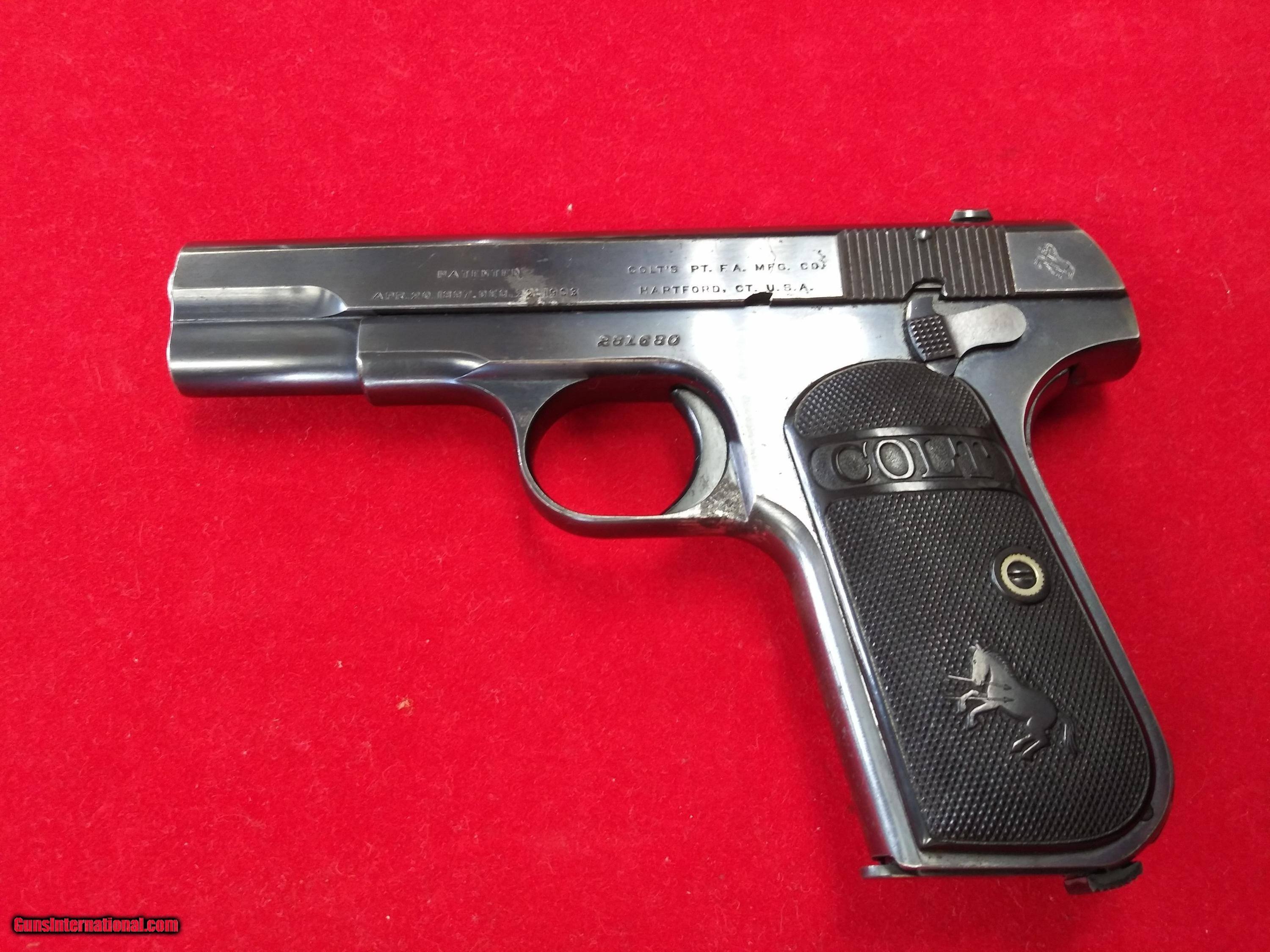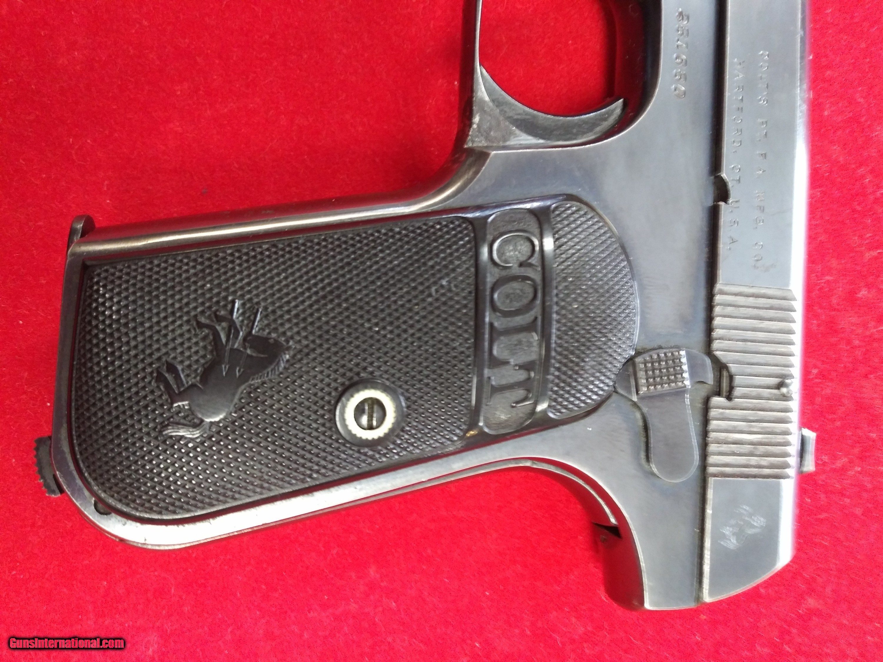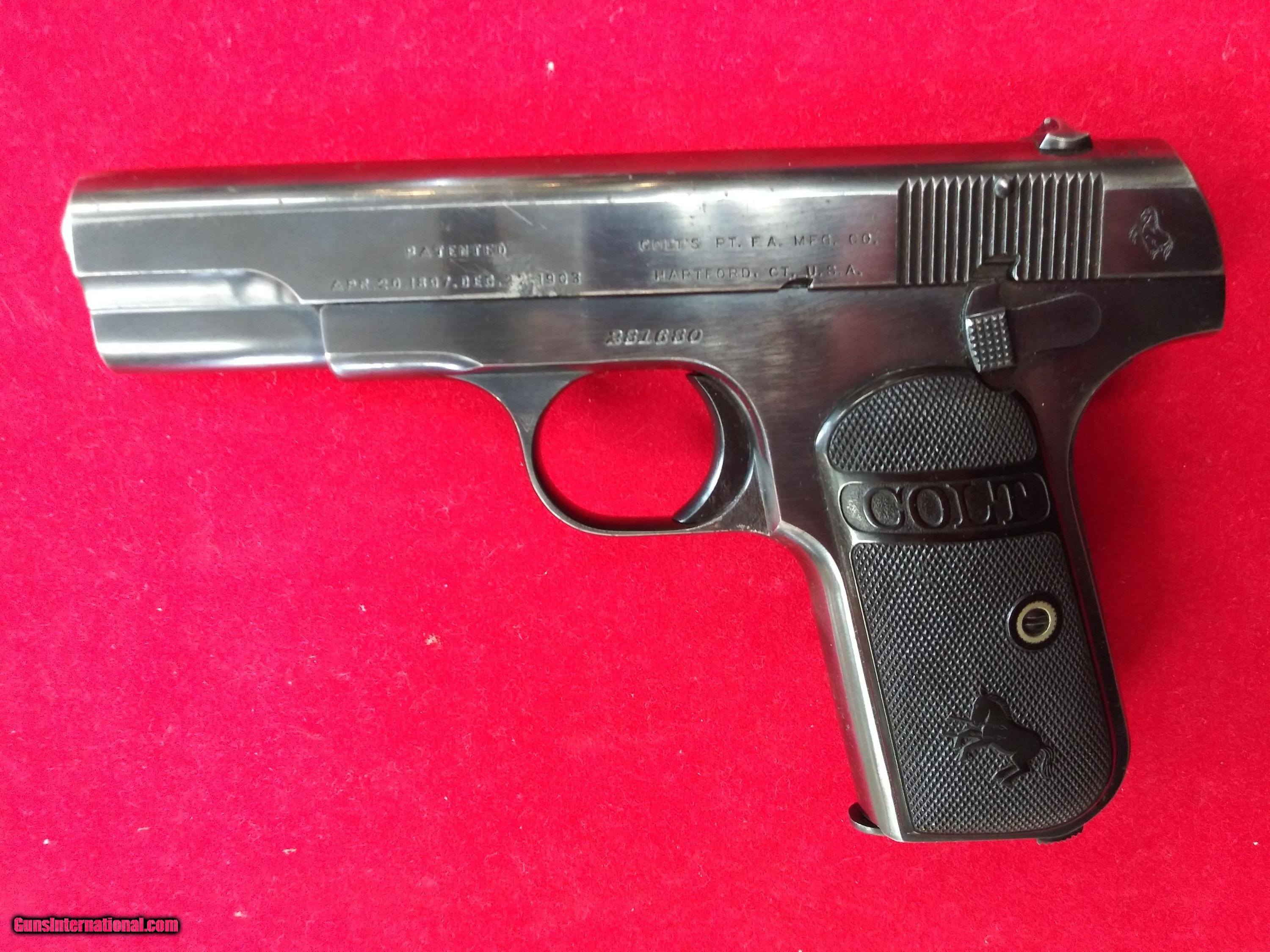 Description: Colt model 1903, 32 ACP caliber, hammerless. Made in 1918. Condition as seen in pictures. Aside from the rust pitting spots shown, and the front sight missing, the pistol is excellent. Bore is excellent. I fired it (and cleaned it) myself, and it shoots great. $625 includes shipping to FFL Only. C&R is OK. SOLD Curio/Relic: Yes Manufacturer: COLT Model: 1903 Serial Number: 281680 Caliber Info: 32 AUTOMATIC |