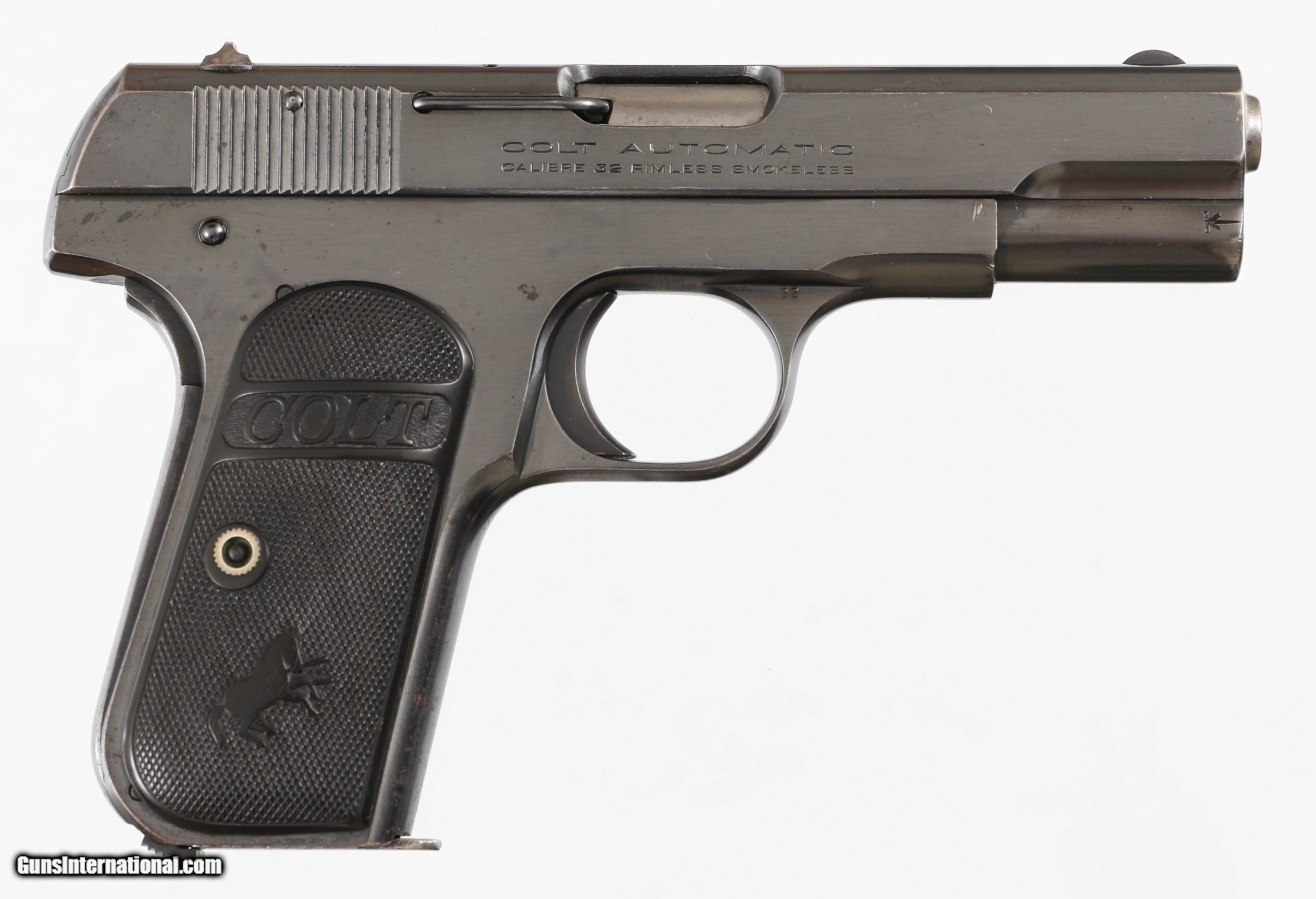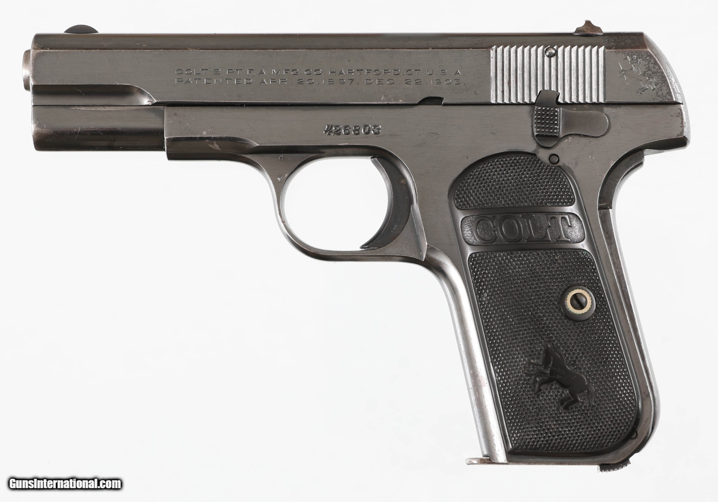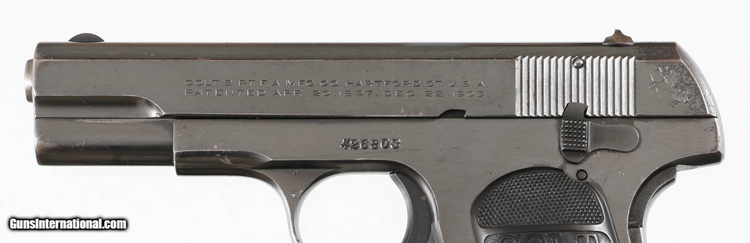 SOLD Curio/Relic: Yes Handgun Caliber: .32 ACP (7.65x17mm Browning SR) Manufacturer: COLT Model: 1903 Serial Number: 4268?? Barrel Length: 3 3/4 Condition: EXCELLENT |