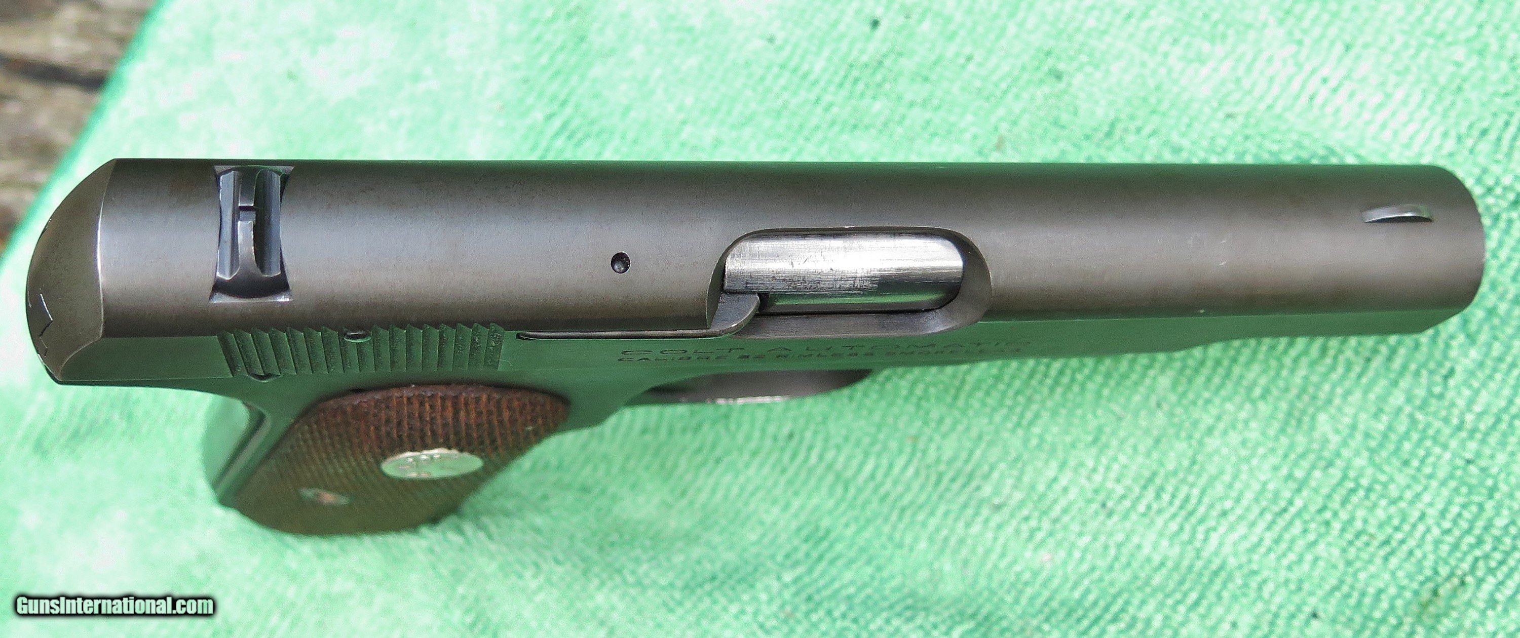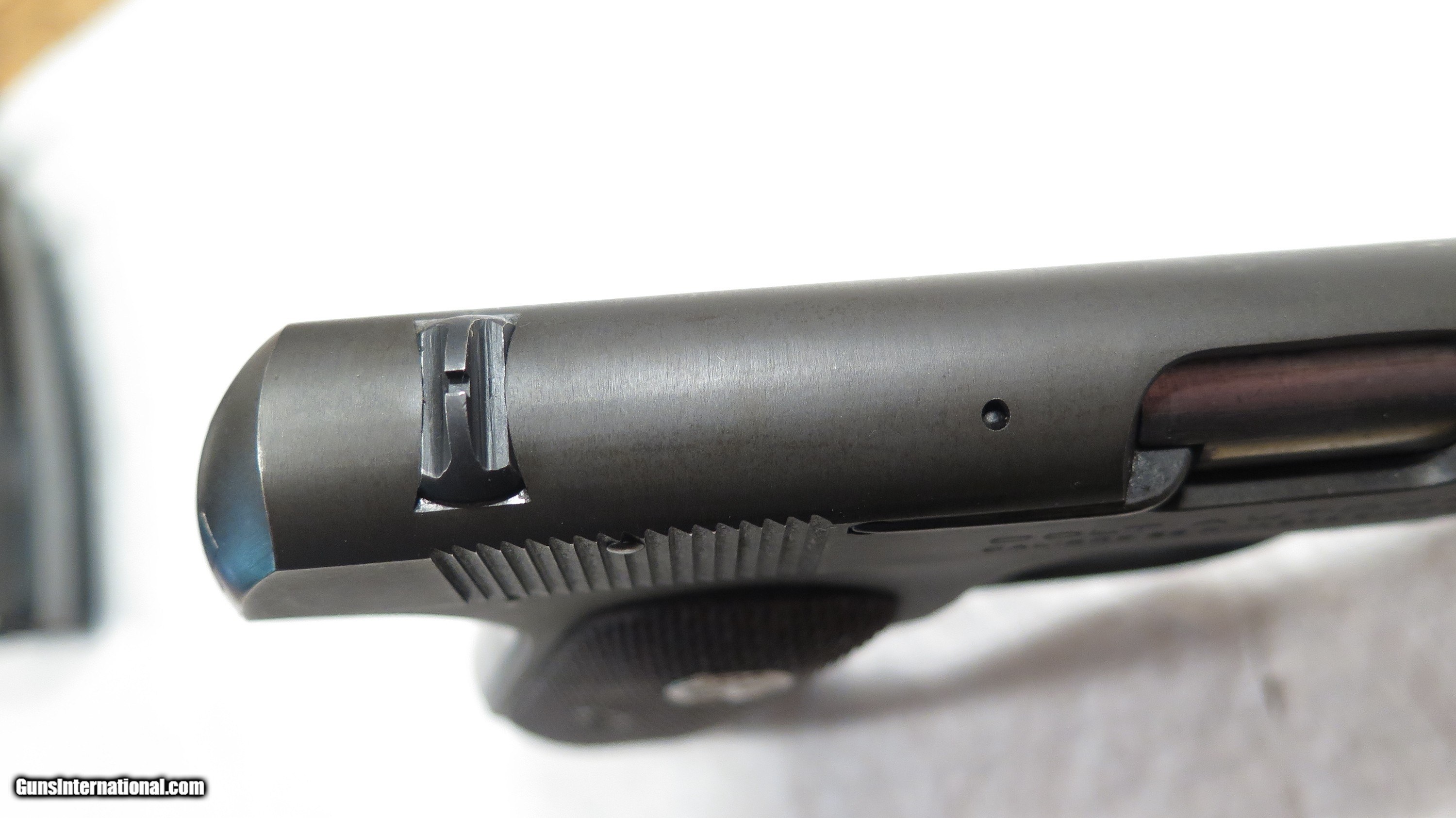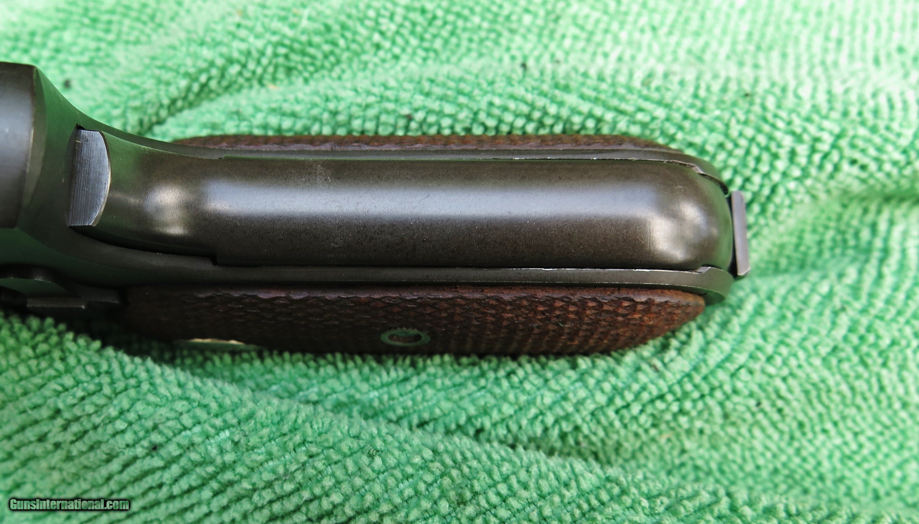 Description: This is a Colt Model 1903 in .32 ACP with original Parkerized finish and marked US Property that was made at Colt back in 1943 or 1944 for issue to the US Military or OSS. It is in superb original condition. Bore is mirror bright, slide is matching numbers (inside). Walnut checkered grips are correct and original. The Colt marked magazine is correctly blue finish. The inspecor's Acceptance marks is a discreet punch dot above the VP. Punch dot is just one of several ways these were accepted. Guns in the serial numbers immediately close to this one went to the OSS. Only a letter from Springfield research will tell for sure what branch of the military or secret service it was sent to. This is a fantasic find. Just found in a local collection. Never offered before this. I am Oregon Lumberjack on the other big site with 1000's of positive feedbacks. Offered at $3995 and $50 shipping to your dealer. Guaranteed to make you very happy. SOLD |