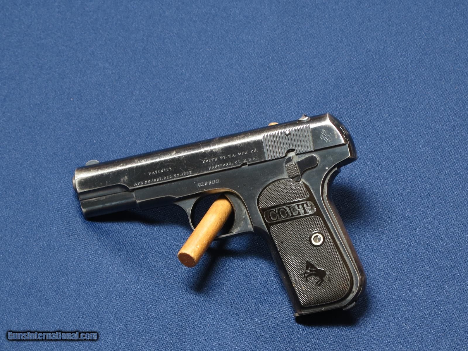 Description: Colt 1903 32 Rimless. 85-90%. Nice grips. Excellent bore. SN 216,6XX. SOLD |