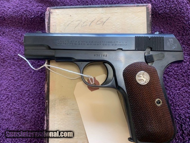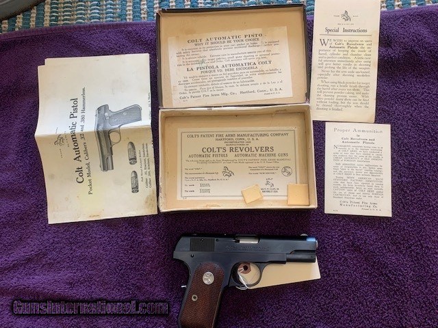 COLT 1903, 32 AUTO, MFG. 1928, SERIAL NO. 4761xx, 99% COND. IN THE BOX WITH OWNERS MANUAL, ETC.