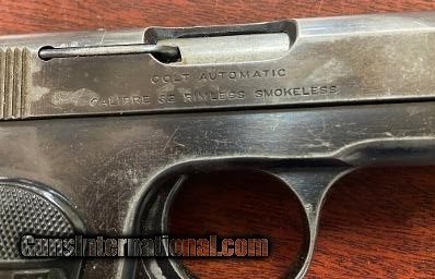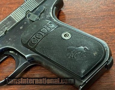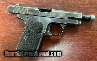 Description: Nice little COLT model 1903 Auto Pistol.MFG. 1919.Plenty of original blue finish left. Original black grips are in good condition. Bore is good. A little light freckling but a nice smooth finish.Overall nice example to collect or shoot. $899.00 FFL/C&R req. C/C plese add 3% Shipping $15.00 lower 48. SOLD Curio/Relic: Yes Handgun Caliber: .32 ACP (7.65x17mm Browning SR) Manufacturer: Colt Model: 1903 Serial Number: 297669 Bore: Good Condition: GOOD Metal Condition: Good |