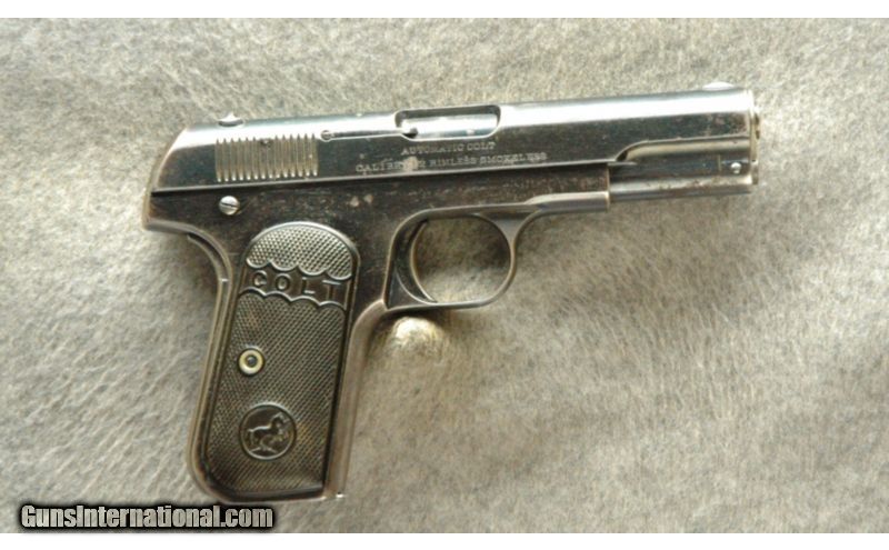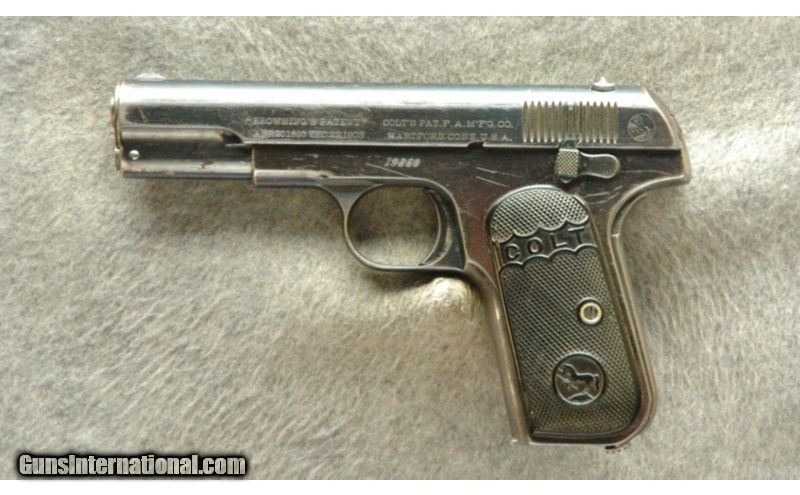 Description: SOLD Curio/Relic: Yes Manufacturer: 1916 Caliber Info: .32 ACP Metal Condition: Fair, Significant Finish Wear, Many Small NIcks and Scratches Wood Condition: Grips are in Good Condition, Small Nicks Bore Condition: Bright Barrels: 4 Triggers: Single Action with Grip Safety Stock: Colt Grips Weight: 1 Lb 8 ozs Sights: Iron Sights Extras: With one mag Item Location: La Vista, NE |