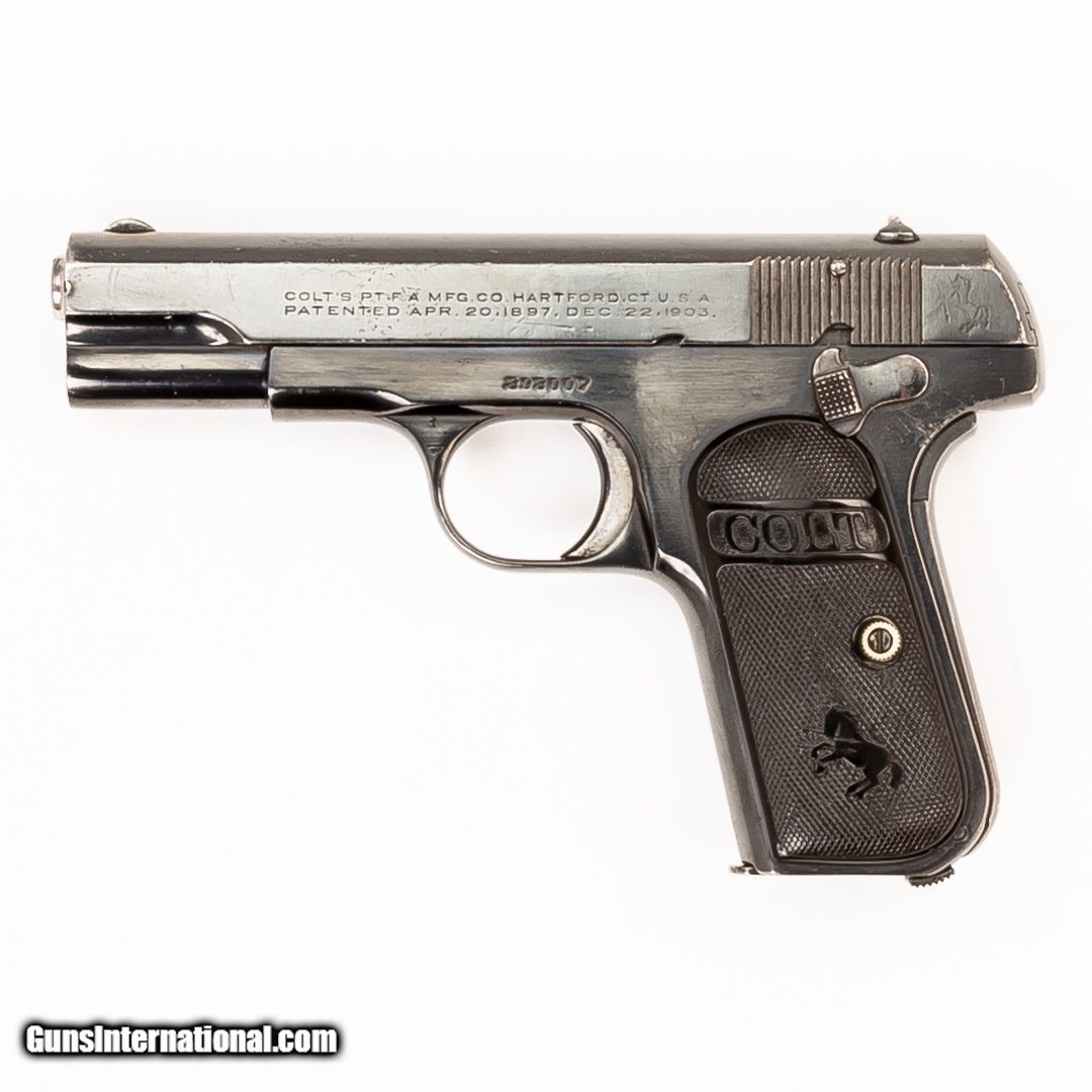Description: Guns Listing ID: 1315238 This Colt features three 8-round magazines, a thumb safety and fixed sights. SOLD Manufacturer: COLT Model: 1903 HAMMERLESS Caliber Info: .32 ACP Condition: Used - Non-Certified Barrels: 3.75 BARREL Finish: BLUED |
