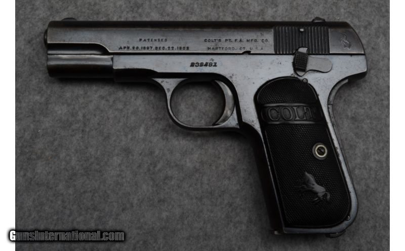 Description: SOLD Manufacturer: Ser # 239481 Caliber Info: .32 Auto Metal Condition: Good with Bluing Wear, Scratches and Pitting Wood Condition: Good with some cracks Bore Condition: Shiny and Bright Barrels: 3 1/2 Triggers: Factory Trigger Stock: Colt Black Plastic Grips Weight: 1.5 lbs Sights: Front Post Fixed Rear Item Location: Woodbury, MN |
