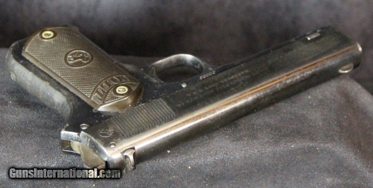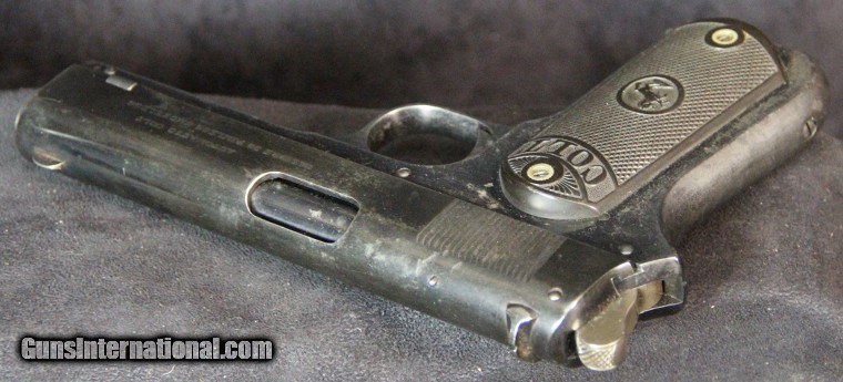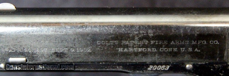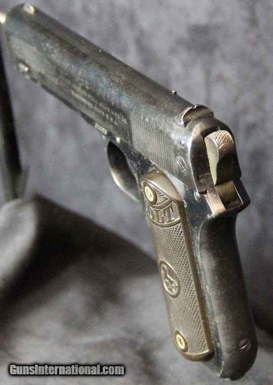 Description: .38acp, #20063, 4 1/2 inch barrel, blue finish, 2 piece hard rubber grips, original sights, round hammer, 1907. Condition: excellent bore, 95% bright blue overall, excellent grips, excellent mechanically, excellent marks. Curio/Relic: Yes Price: $2,850.00 Contact Seller |
