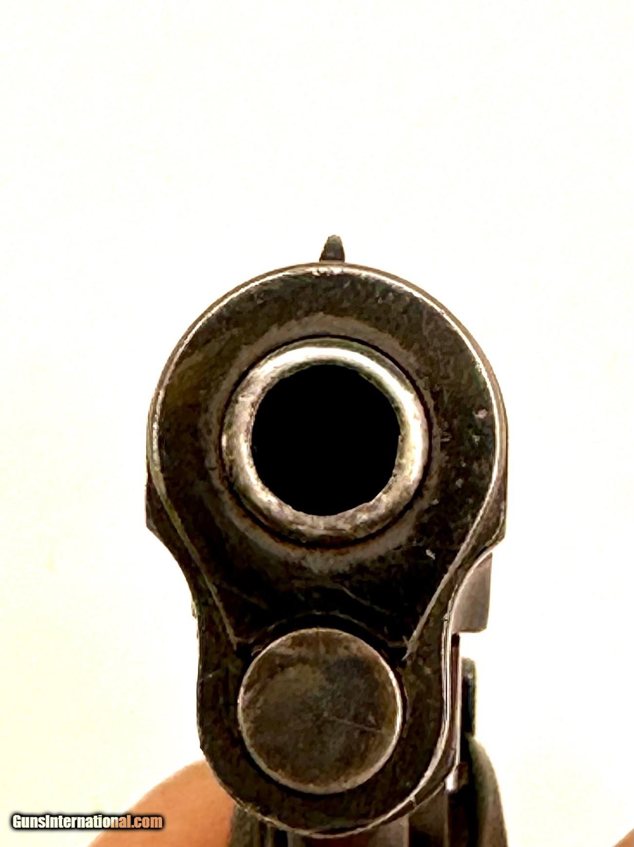 Description: Colt Model 1903 Pocket HAmmerless in 32 Automatic. Right side of the slide says "Automatic Colt" Caliber 32 Rimless Smokeless. Left side "Patented Apr20.1897 Dec.22.1903" Colt's PT. F.A MFG CO. Hartford, CT U.S.A" This pistol has it's original finish with normal wear from over 100 years of service. Mechanically its in very good - Excellent condition with a shinny bore and strong rifling. This has been function tested and worked flawlessly. Great handgun. Flat 25.00 shipping Price reflect a cash discount of 3% Maine residents add 5.5% sales tax SOLD Handgun Caliber: .32 ACP (7.65x17mm Browning SR) Manufacturer: Colt Model: 1903 Automatic Serial Number: 103748 Barrel Length: 3-3/4 Condition: Very good Metal Condition: Very good Wood Condition: Very good Bore Condition: Very good - Excellent Action: Semi auto Manufacture Date: 1910 Item Location: Buxton Maine |