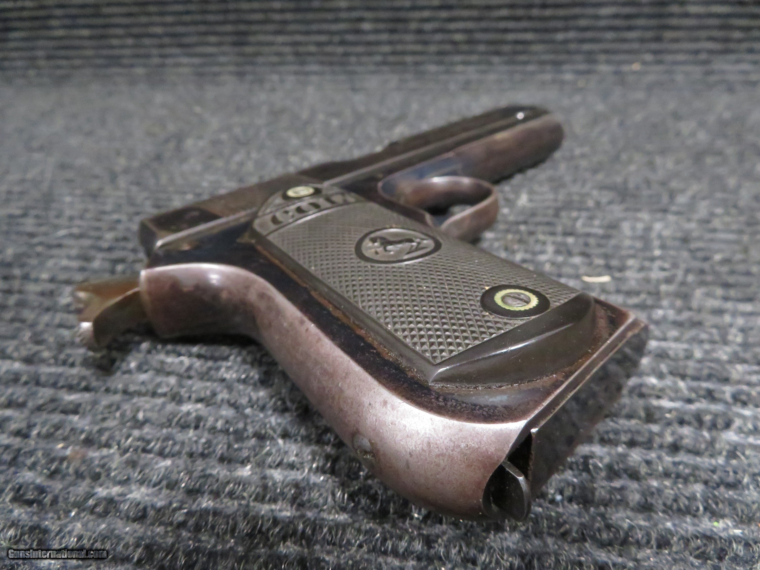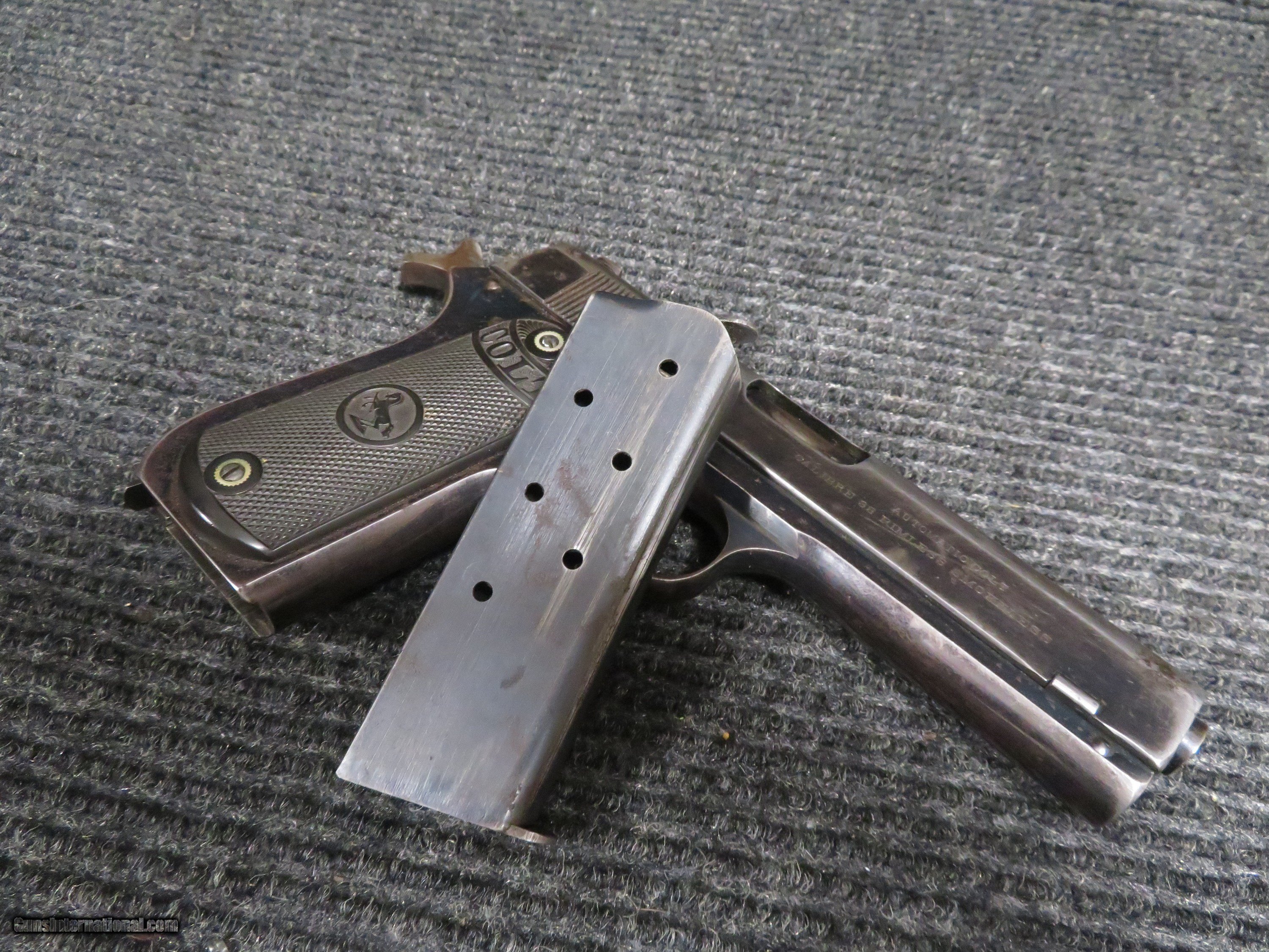 Description: For sale today is a vintage Colt 1903 chambered in .38 Rimless!!!! This gun features a 4 1/2" barrel, european style mag release, fixed iron sights and single stack magazine. This gun has cosmetic wear appropriate for its age and seems to be in good shooting condition (see pictures). Ships with one magazine. The serial number suggests that the gun was made in 1910. IF YOU HAVE ANY QUESTIONS ...PLEASE ASK!! 3% surcharge for all credit cards. Please be sure to know your state laws when purchasing. Good Luck!!!! Buyer pays $30 shipping and handling (Continental US). SOLD Curio/Relic: Yes Manufacturer: Colt Model: Pocket Hammer Manufacture Date: 1910 |