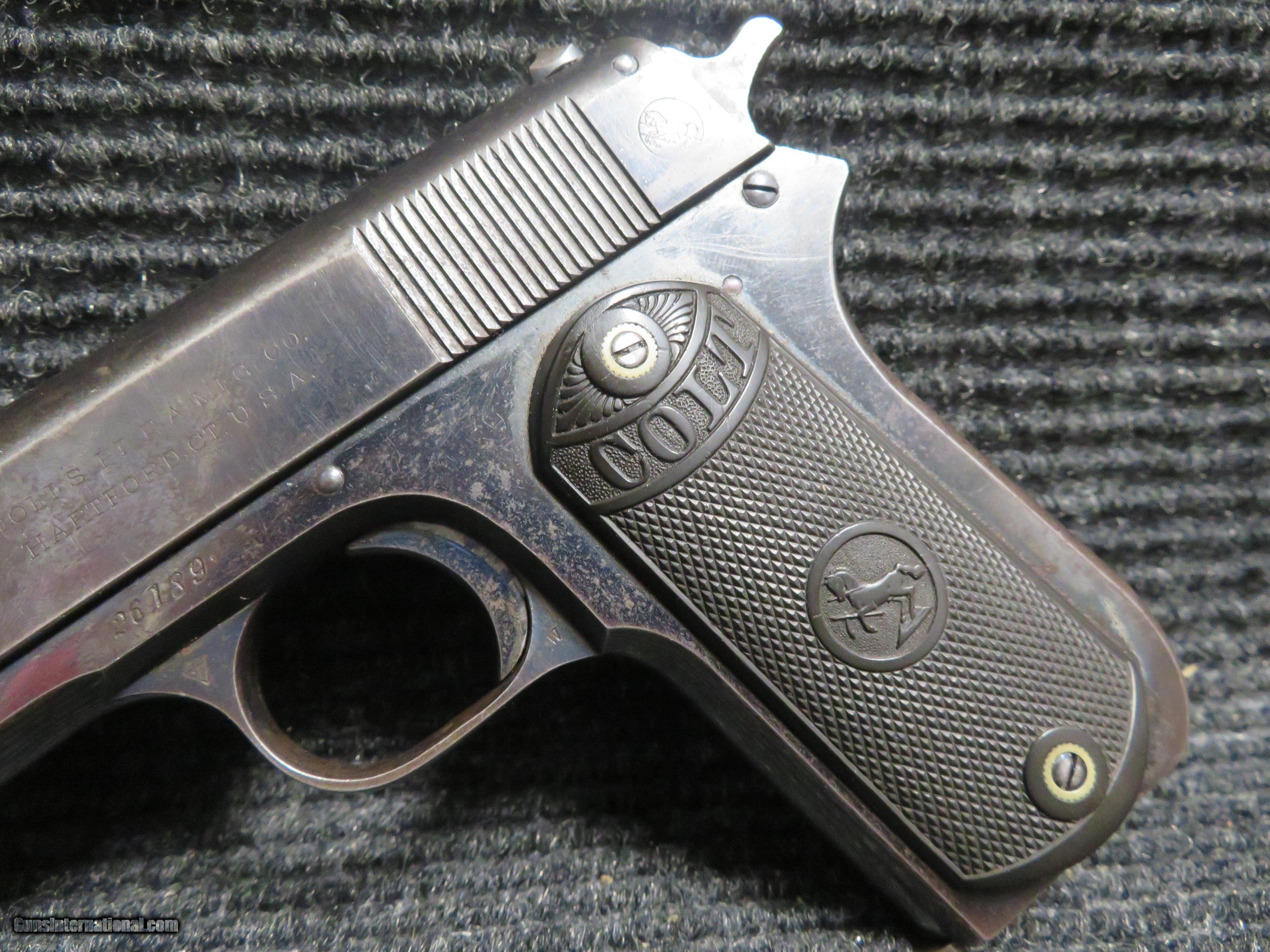 Colt 1903 Pocket Hammer Automatic 38 Rimless Smokeless 1910