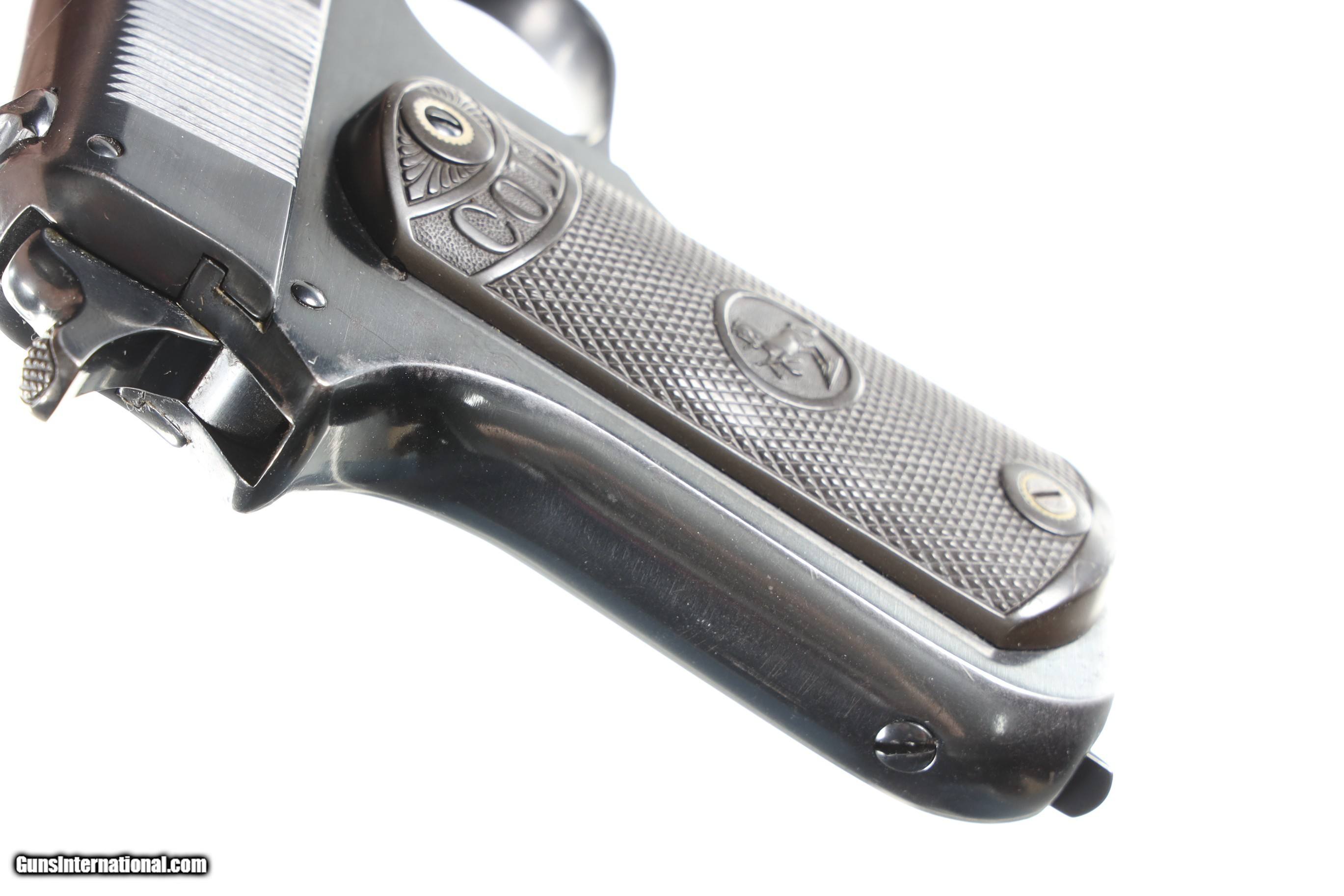 Description: Very fine as period refinished with outstanding grips and very strong bore, mechanically excellent. Manufactured in 1910. • Free Shipping, No Credit Card Fees. • Lay-a-way available for this firearm. • 1/3 Down, a 1/3 in 30 Days 1/3 in 60 Days. SOLD Curio/Relic: Yes Manufacturer: Colt Model: 1903 Pocket Hammer Serial Number: 25973 Barrel Length: 4 3/8 |