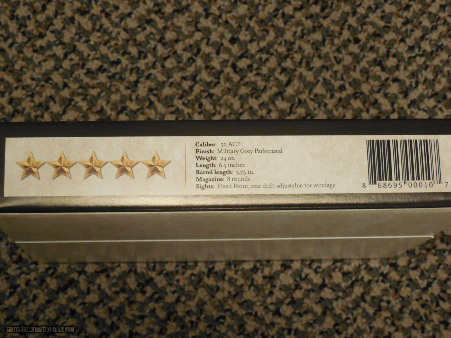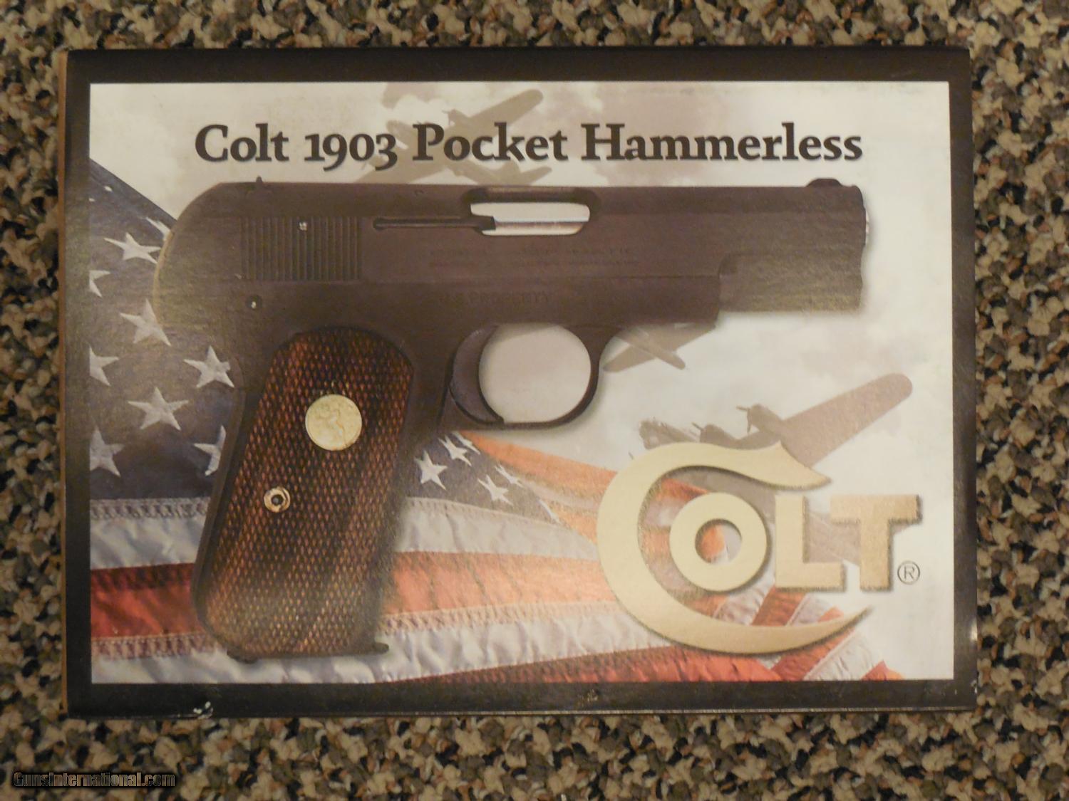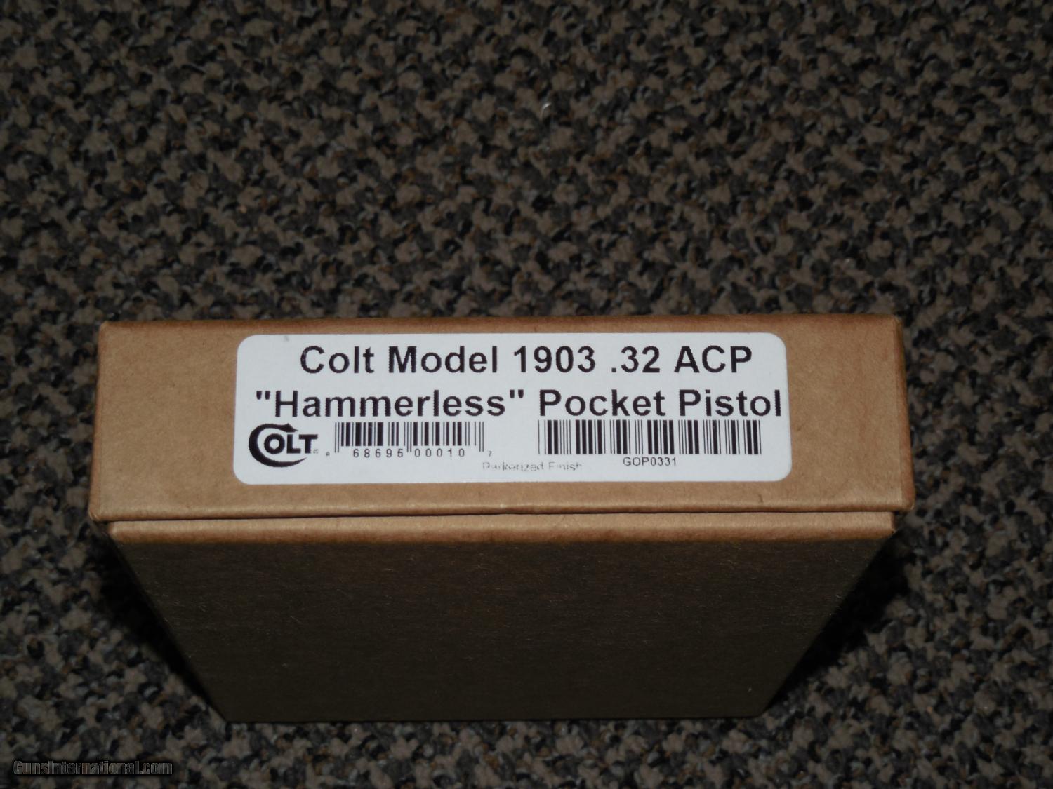 Description: Here's a NEW COLT 1903 POCKET HAMERLESS .32 ACP "GENERAL OFFICER'S PISTOL: MARKET "US PROPERTY". This very-LIMITED "RETRO" pistol is being offered for ONLY $1499.95 plus 25 for shipping, handling, and isurance for CASH/CERTIFIED FUNDS/O's. Use a cfedit card and add $45 to the total. This gun comes packed in the same type of "kraft" box that the original guns was shipped in, complete with the waxed wrapping paper around the gun. Ths gus HAS NOT been unwrapped as shown in the photos. SOLD |