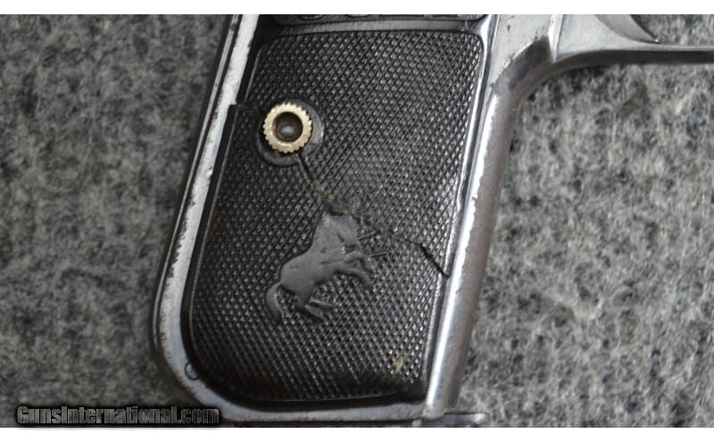 Description: Pistol finish is heavily worn with only small pockets of bluing remaining. Rifling is heavily faded but has no noticeable pitting. Front sight post is completely missing and grips are cracked on one side. Pistol comes with a soft case and one magazine. .32 ACP SOLD Metal Condition: Fair Bore Condition: Fair Barrels: 3.5 Triggers: SAO Weight: 1.5 lbs. Sights: "Missing front sight, rear notch Item Location: Gainesville, VA |