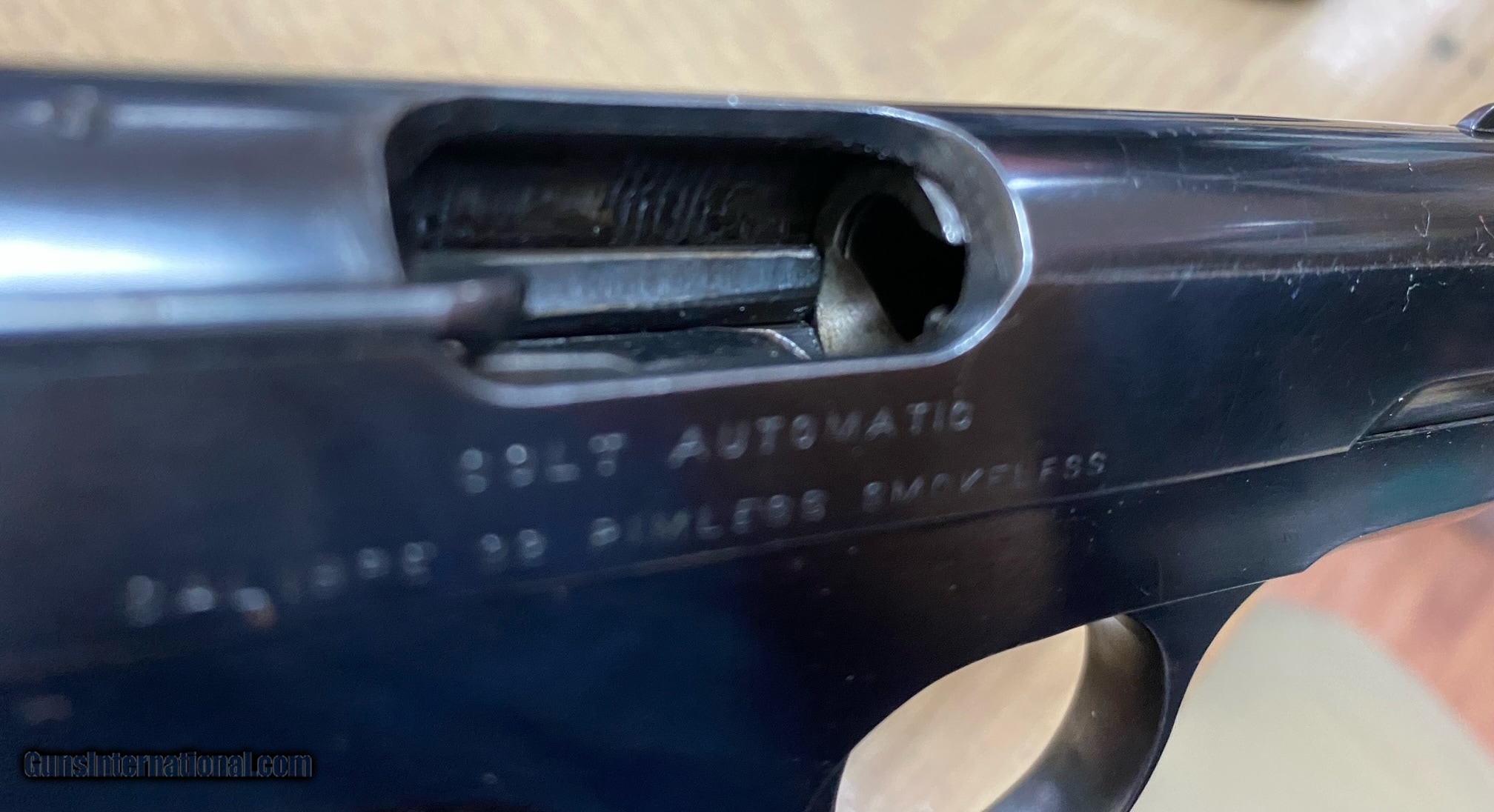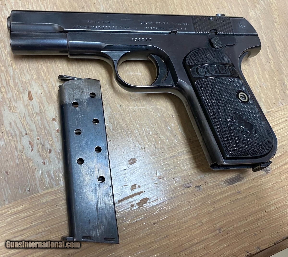 Description: Guns Listing ID: 512512 Up for sale is an Ultra-Rare Colt 1903 .32 Rimless Smokeless (Also known today as the .32 ACP cartridge) with a manufacture date of 1916. This pistol features a rich, blue finish, 3 3/4\" barrel, 8+1 capacity with one original Colt magazine included, manual safety (without magazine safety). Serial number of 2062xx indicates 1916 manufacture date, and is in block for type III series pistols. Pistol is in overall estimated 85% condition as pictured, mechanically flawless with excellent bore. SOLD Manufacturer: COLT Model: 1903 Type III Mfg. 1916 Caliber Info: .32 ACP Condition: Used - Non-Certified Barrels: 3.75 BARREL Finish: BLUED |