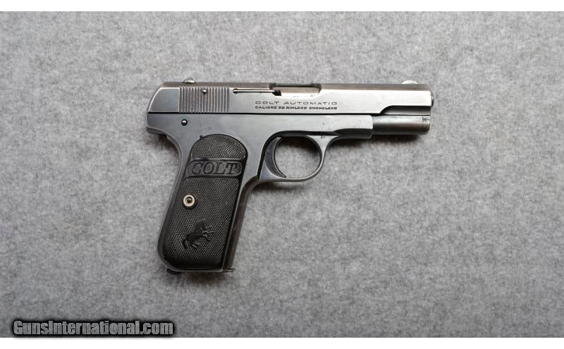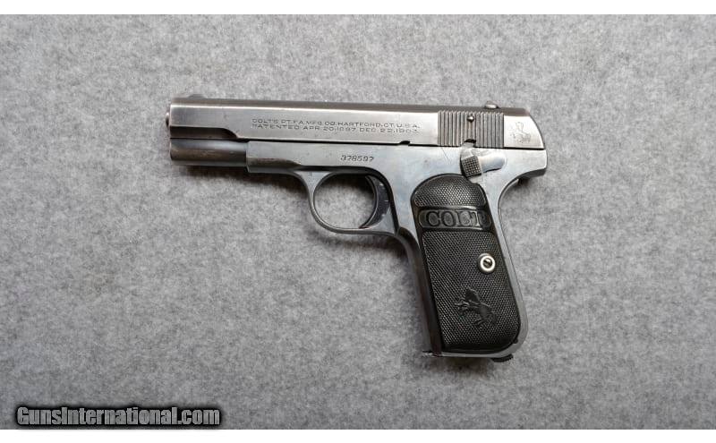 Description: Pre-owned Colt M1903 Pocket semi-auto chambered in .32 ACP, 3 3/4" barrel, charcoal blue, checkered hard rubber grips, hammerless, slide lock and grip safeties. Serial# 378597, type III, Mfg. Date 1921 .32 Auto SOLD Metal Condition: Good condition with bluing wear on the edges Bore Condition: Bright and shiny with good rifling Barrels: 3 3/4 Inches Weight: 24 oz. Sights: "Blade front, notch rear Item Location: Springfield, OR |