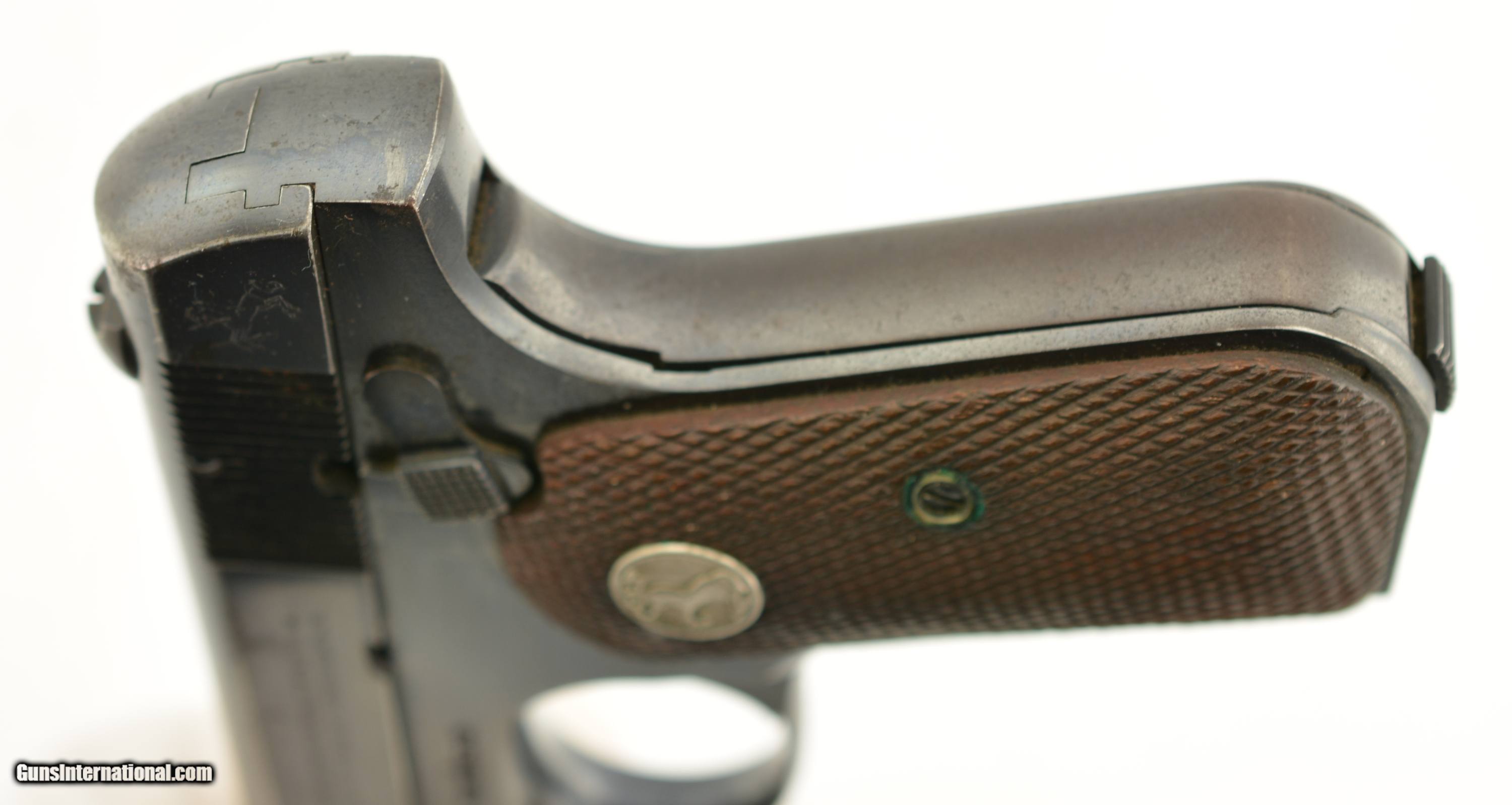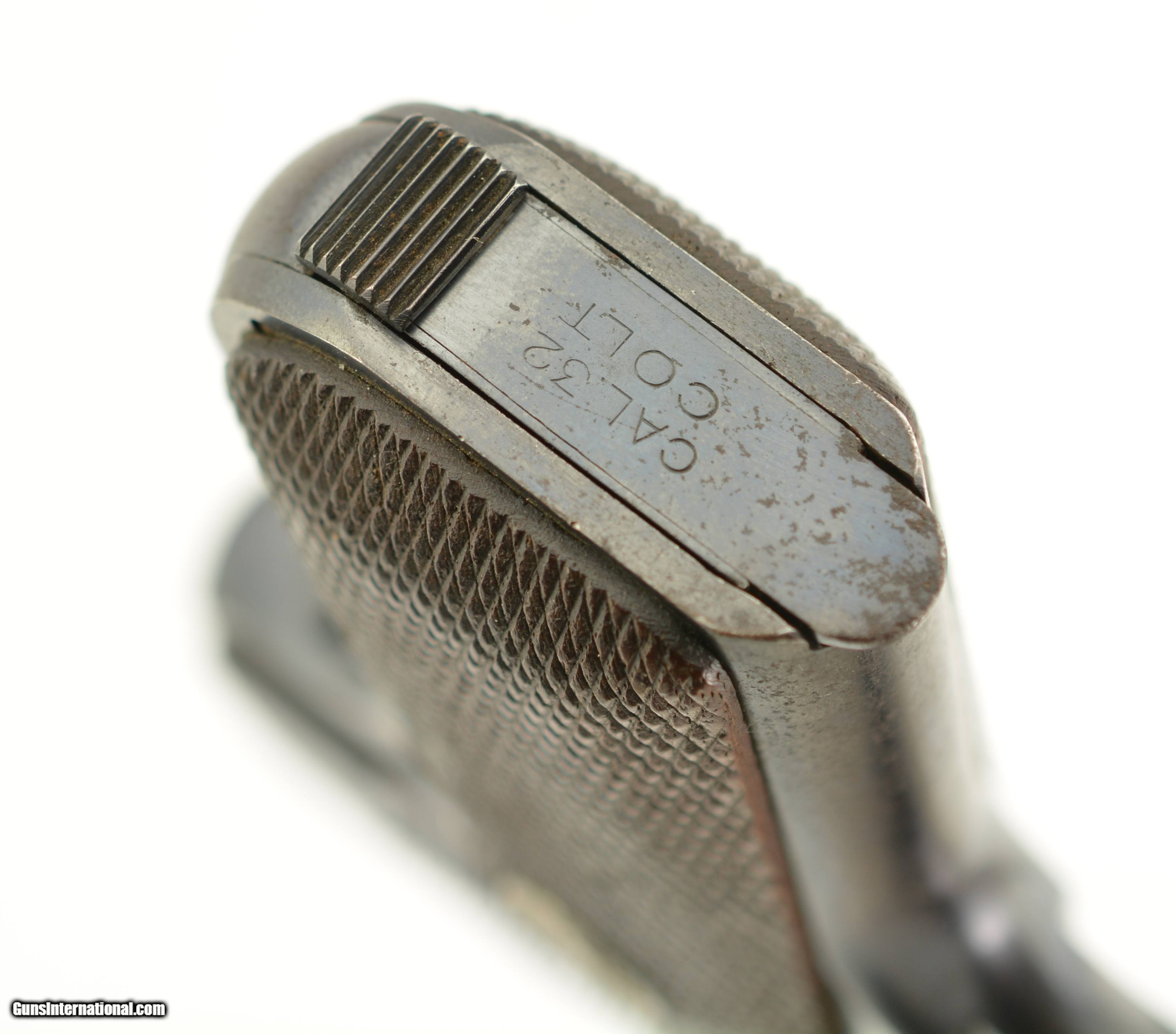 Description: Serial #513688, .32 ACP, 3 3/4" barrel with an excellent, bright bore. This is a 1933-made, Type IV pistol that has retained 92-95% of the original bright blue commercial finish that has silvered at the muzzle, along the high edges and projections, and also has some scattered specks of plum-brown freckling. Matching numbers are present on the frame and slide. The checkered, walnut grips are in fine shape, with only some minor handling marks and some flattening of the points, mainly towards the butt on either side. A single original two-tone magazine is included. The pistol is accompanied by a 2023-dated Colt Factory Letter that lists it as one of five such pistols shipped to the John B. Varick Co. of Manchester, NH, on June 6, 1933. This is a very handsome pistol, and is in veru good plus-fine condition FFL or C&R SOLD Curio/Relic: Yes Manufacturer: Colt Model: 1903 Caliber Info: .32 ACP Gauge Info: .32 ACP |