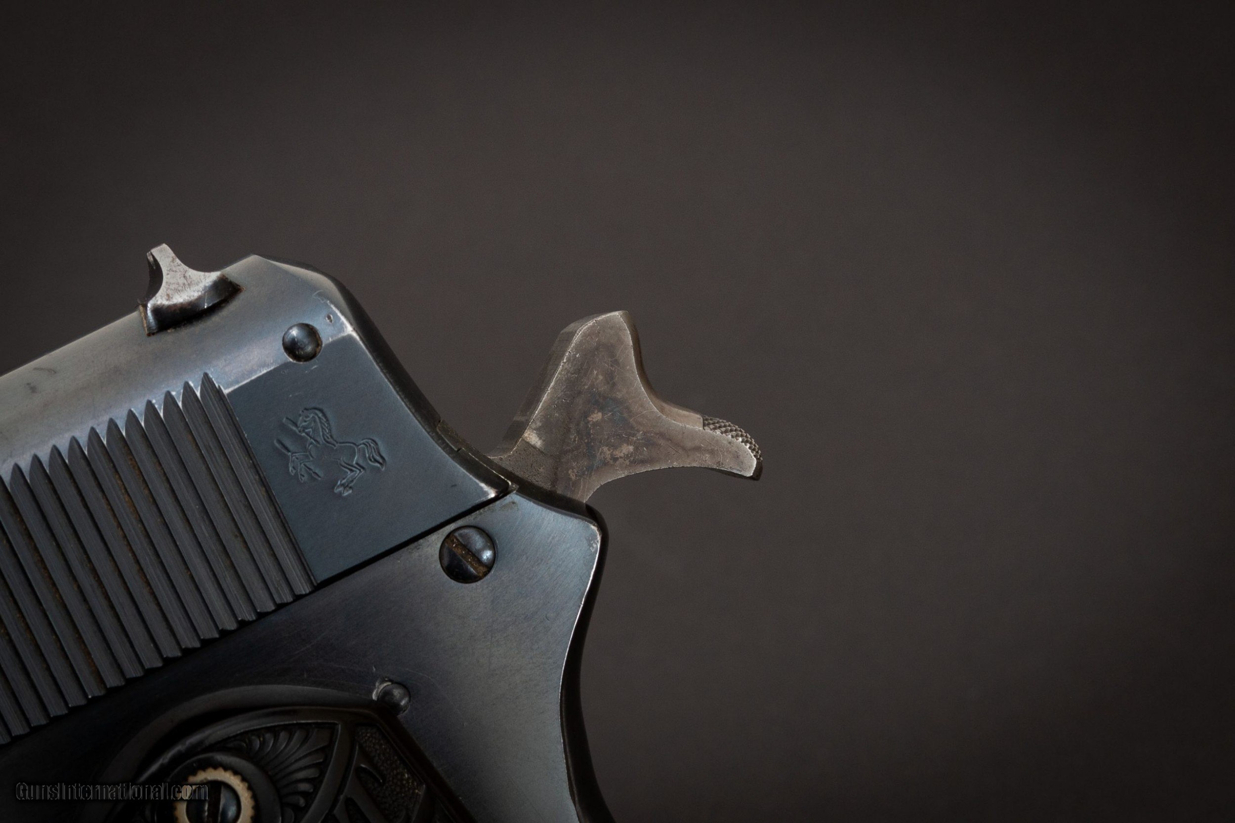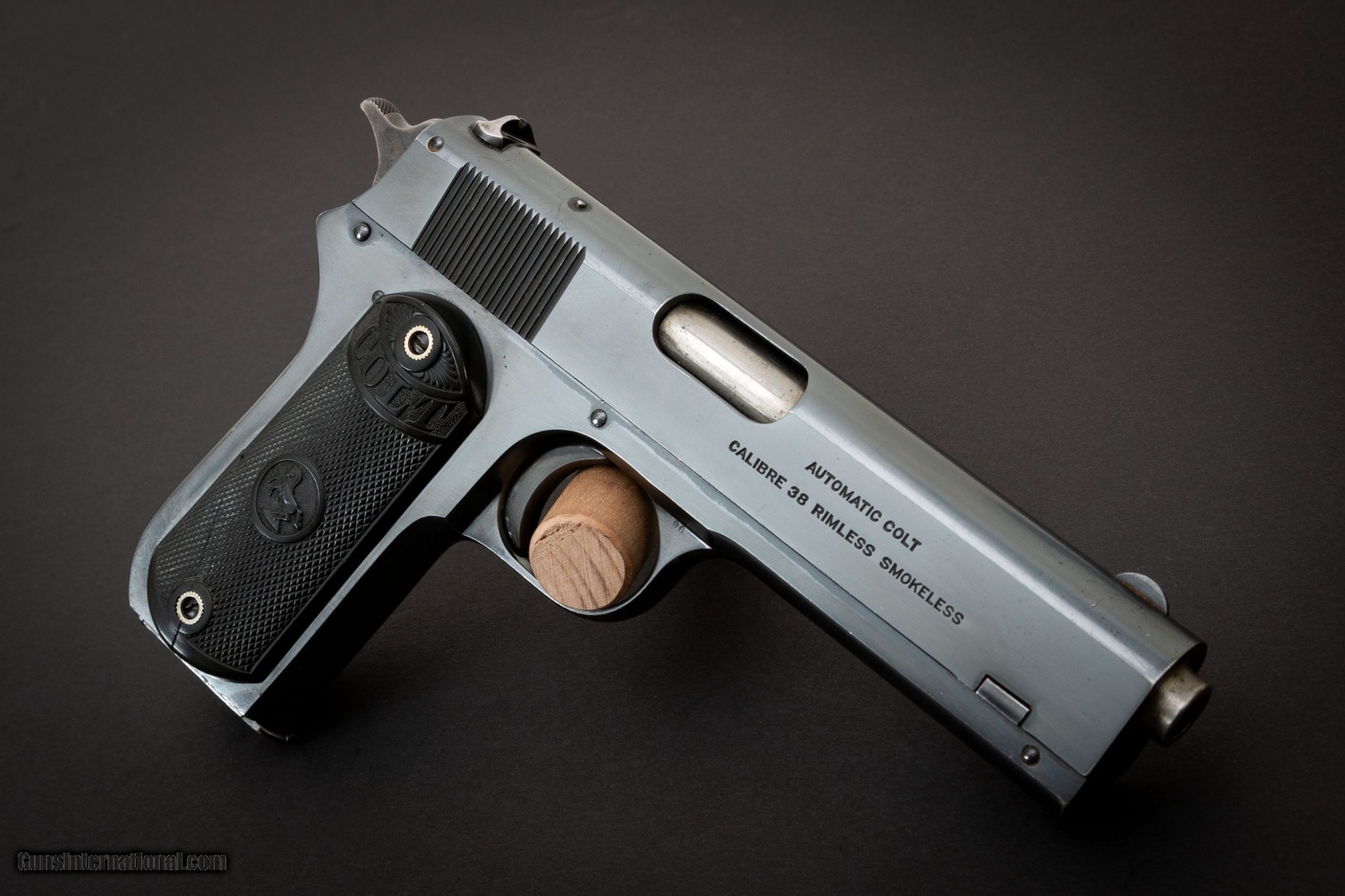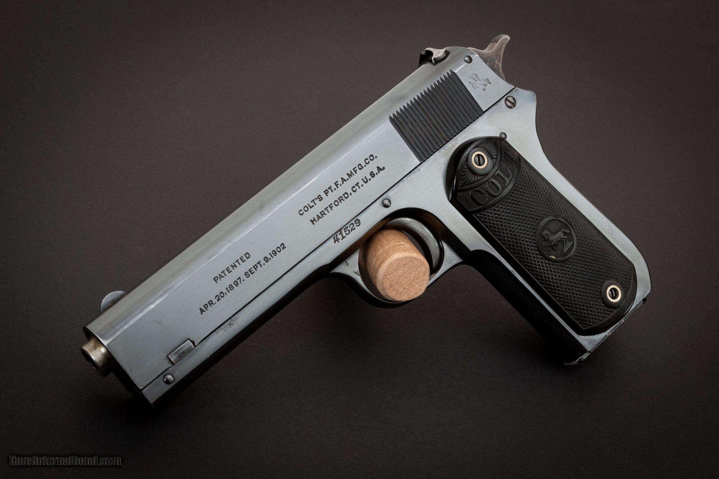 Description: This is an original, high-condition Colt Model 1903 Pocket Hammer. Wearing serial number 41529, this John Browning-penned M1900 derivative is dated from 1919. Condition is 95% with some light edge wear. Hammer retains much of its original case colors. Bore is very good, showing bright and shiny. Contact us for more information and additional photographs. SOLD Curio/Relic: Yes Handgun Caliber: .38 Auto (.38 ACP) Manufacturer: Colt Model: 1903 Pocket Hammer Serial Number: 41529 Barrel Length: 4.5 Manufacture Date: 1919 Item Location: NY |