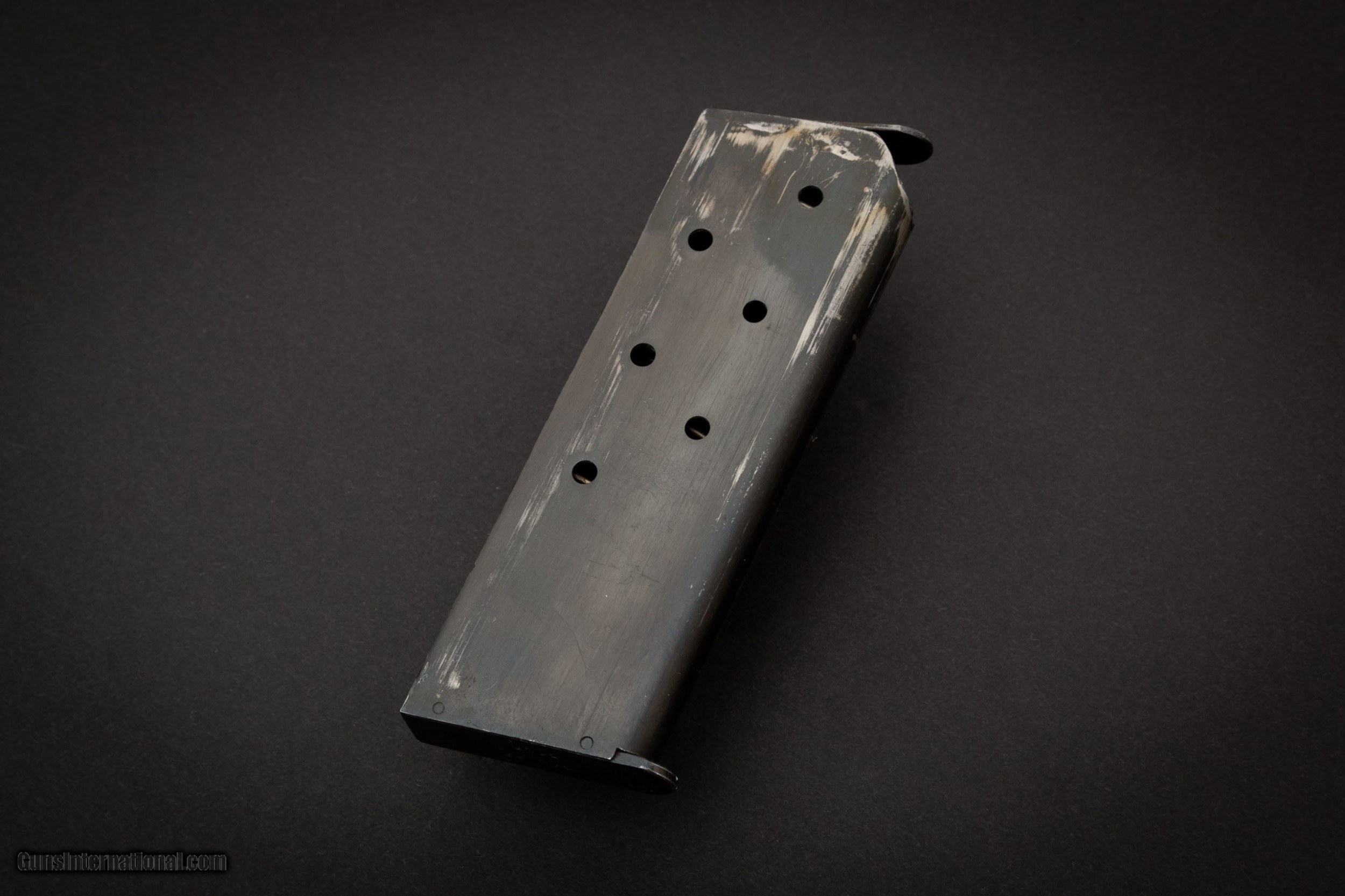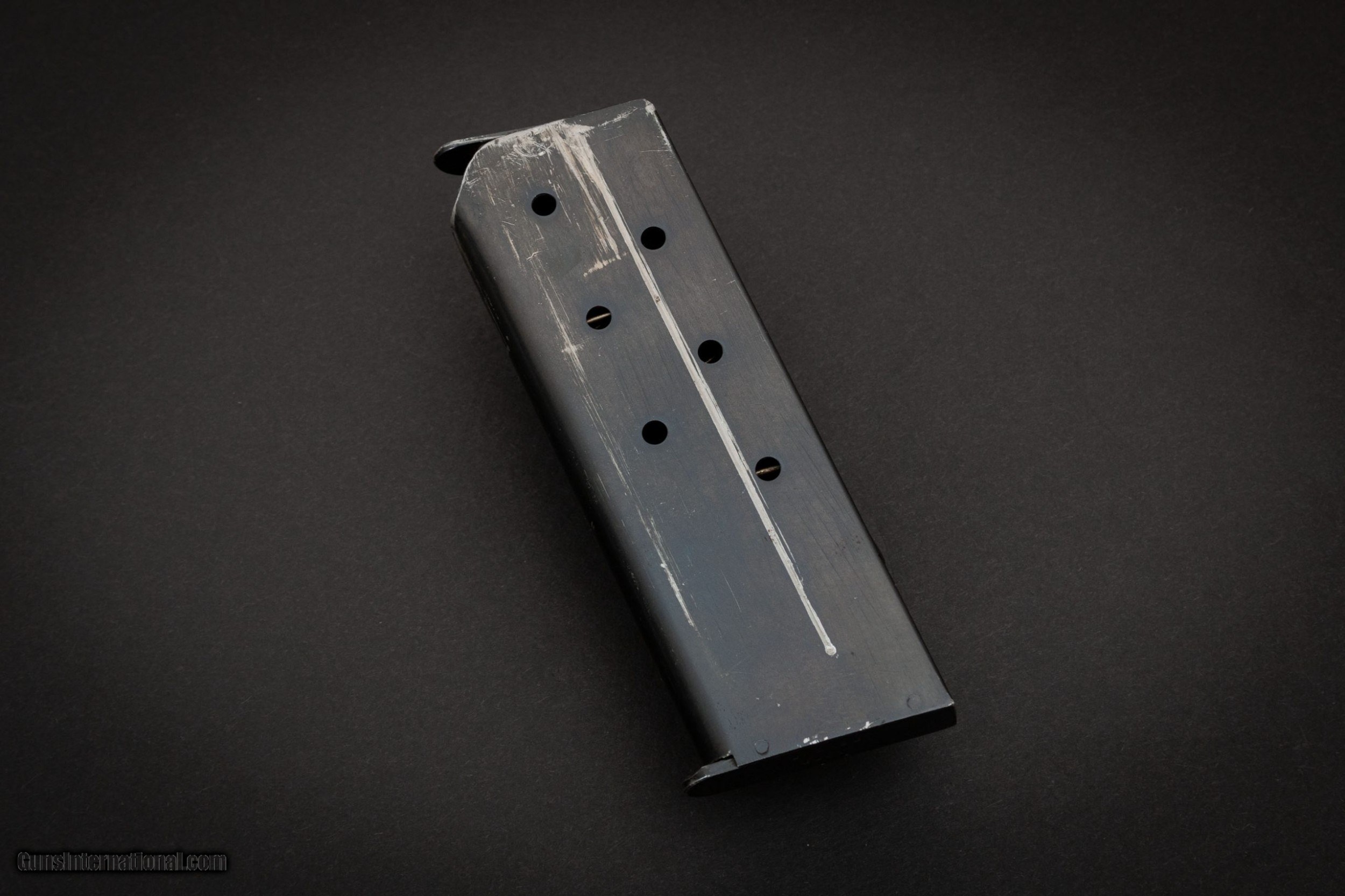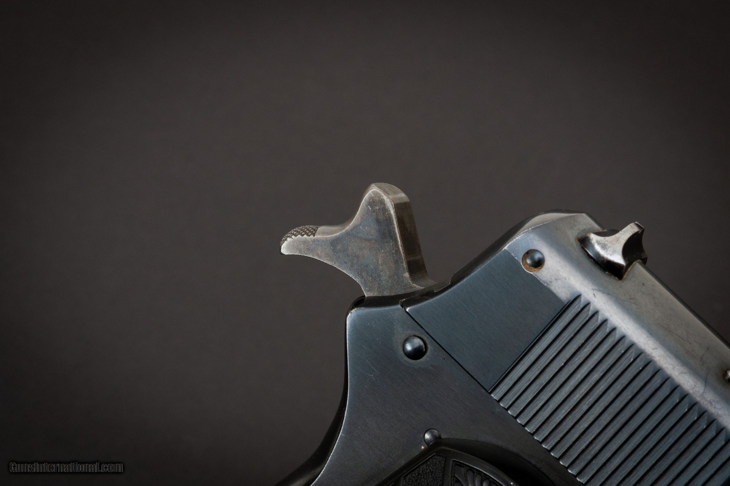 Description: This is an original, high-condition Colt Model 1903 Pocket Hammer. Wearing serial number 41529, this John Browning-penned M1900 derivative is dated from 1919. Condition is 95% with some light edge wear. Hammer retains much of its original case colors. Bore is very good, showing bright and shiny. Contact us for more information and additional photographs. SOLD Curio/Relic: Yes Handgun Caliber: .38 Auto (.38 ACP) Manufacturer: Colt Model: 1903 Pocket Hammer Serial Number: 41529 Barrel Length: 4.5 Manufacture Date: 1919 Item Location: NY |