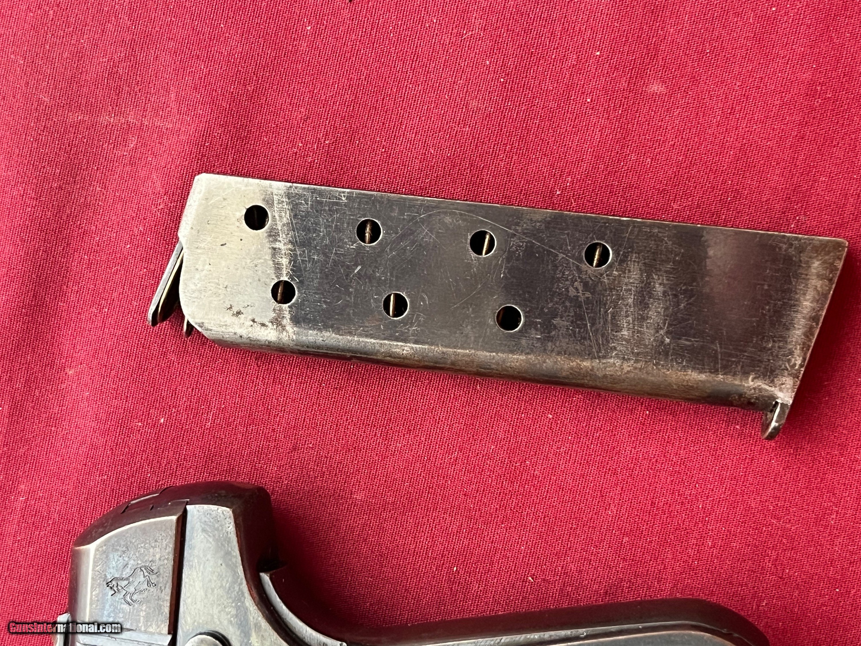 Description: COLT MODEL 1903 SEMI AUTO PISTOL. SER# 203091 MADE IN 1916. CALIBER 32ACP . VERY GOOD ORIGINAL BLUE FINISH . NICE TIGHT ACTION . 3 1/2 INCH BARREL WITH A NICE BRIGHT BORE WITH GOOD RIFLING. GRIP PANALS ARE SOLID WITH NO CRACKS OR CHIPS. COMES WITH A CORRECT TWO TONE MAGAZINE. EASTERN BRANCH FIREARMS ADD 40.00 SHIPPING – NEXT DAY AIR SHIPPING ADD 50.00 SHIPPING – LONG GUNS GROUND OPTIONAL INSURANCE IS AVAILABLE AT 1.25 PER 100.00 Questions e-mail or call Glen at Eastern Branch Firearms 207-215-5021 TERMS – PLEASE READ BEFORE I DO NOT HAVE A LAYAWAY OPTION ( WE ACCEPT CREDIT CARDS ) -- I GET ALOT OF REQUEST FOR TRADES, I WOULD PERFER NOT TO DO TRADES ON MY INTERNET LISTINGS PAYMENT OPTIONS- We accept money orders, cashier’s checks , bank checks. sorry no personal checks. We accept all major credit cards please add 3% to the ’s cash discount price.(Shipping within the state of Florida - Florida Residents must pay sales tax) .Handguns and long guns do need to be shipped separate. PLEASE do not send payment via FED EX . USPS & UPS are fine. Thank you. We include a signed copy of our FFL with each firearm shipped. SAFTY NOTICE- Buyer is solely responsible for determining that a used gun is safe to shoot. The firearms offered have not been test fired but have been given a visual inspection only for purposes. It is a requirement that every used firearm is inspected by a qualified gunsmith before firing. By , the buyer agrees to hold seller harmless against damages, injury, or death caused by defective merchandise. RETURN POLICY- All firearms come with a 3-day non firing , non messing with ( turning srews ,taking apart,removing parts, scoping. firing, cleaning or messing with in anyway) inspection/return privilege.Inspection is based on a visual review of the gun to confirm the gun is in the condition stated. In the case of a return, buyer pays all shipping charges & if paid for with a credit card buyer absorbs the 3% credit card charges . So please ask questions BEFORE you bid. Thanks for Looking and Good Luck!! U.S. sales only, no exports…this includes antiques. I will ship to third party for exporting SOLD Curio/Relic: Yes |