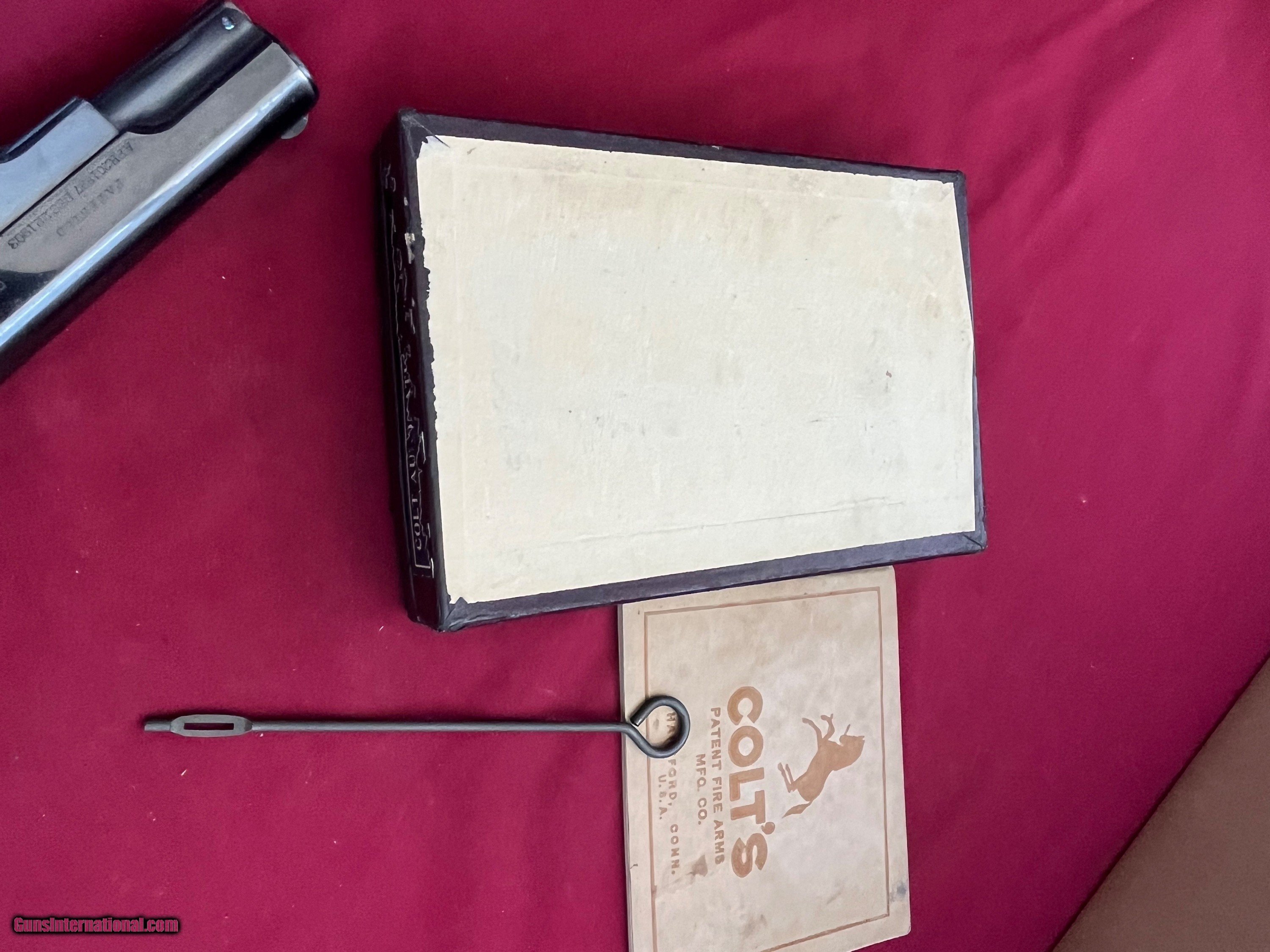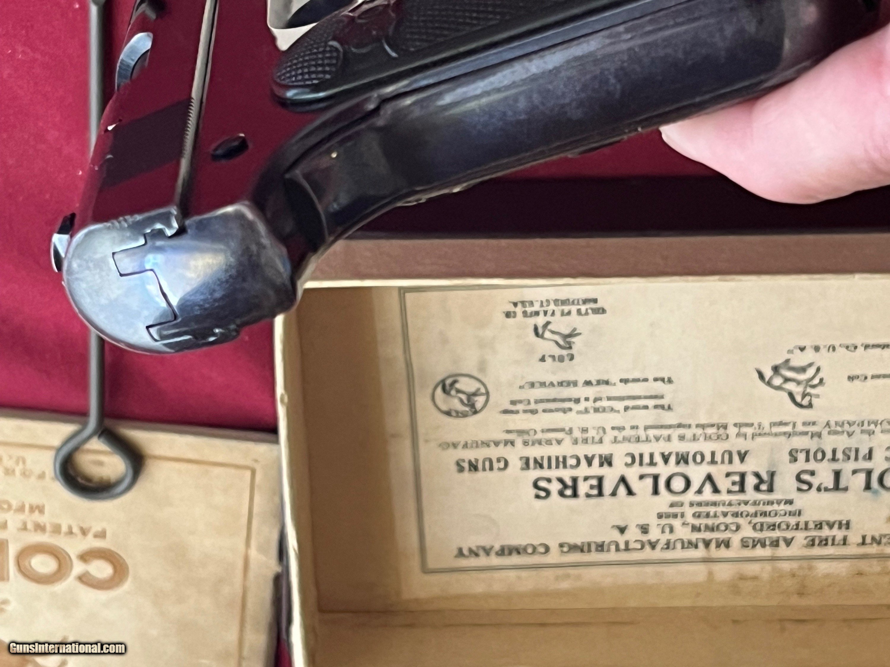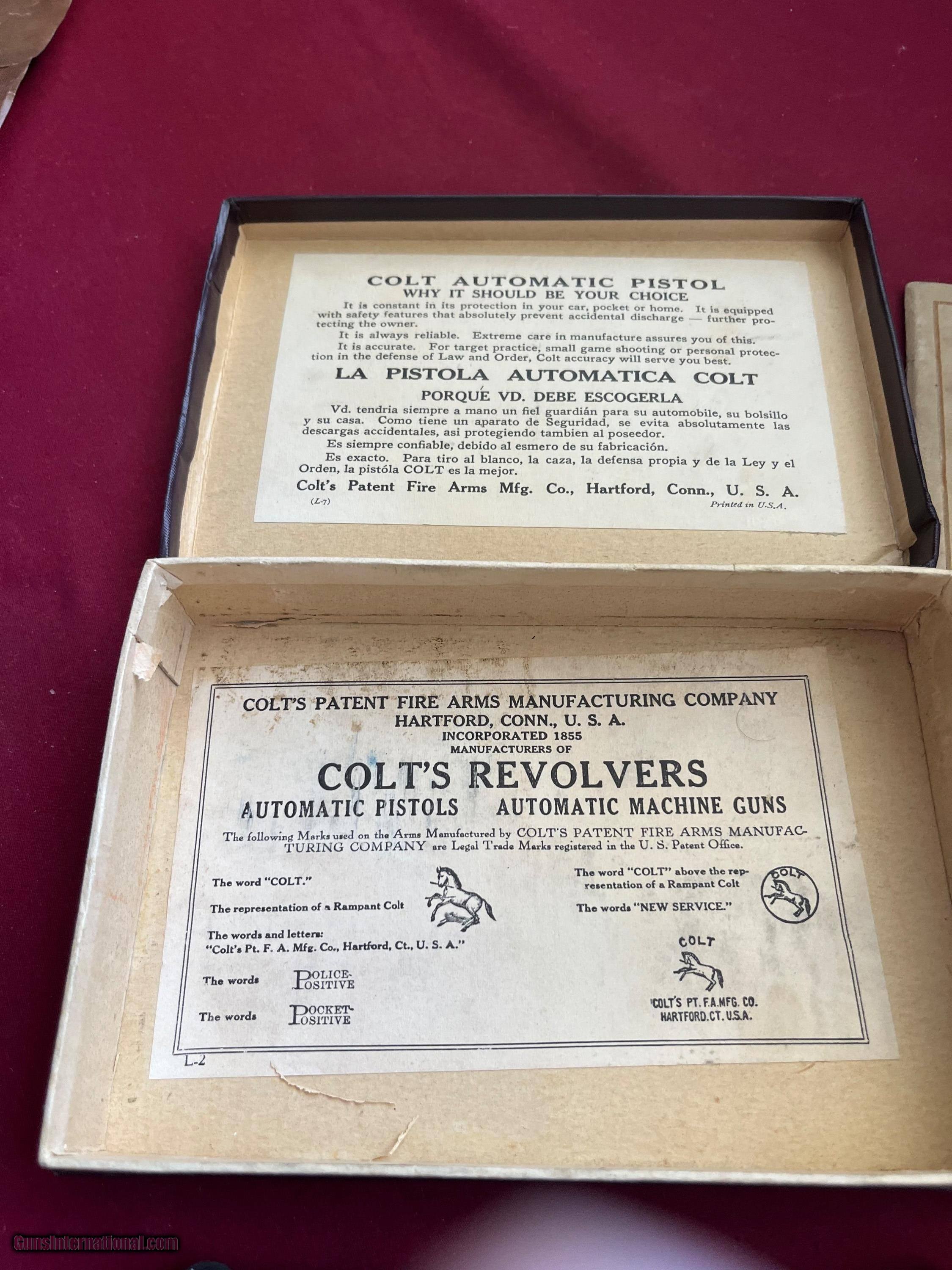 Description: COLT MODEL 1903 SEMI AUTO PISTOL. CALIBER 32 ACP . SER# 57992 MADE IN 1907. GUNS IN EXCELLENT CONDITION . VERY NICE BRIGHT ORIGINAL BLUE FINIS. LIGHT THINNING ON THE FRONT AND BACK STRAP . COMES WITH BOX, MANUAL , CLEANING ROD & 2 - TWO TONE MAGAZINES. GREAT COLT INVESTMENT PIECE . EASTERN BRANCH FIREARMS ADD 40.00 SHIPPING – NEXT DAY AIR SHIPPING ADD 50.00 SHIPPING – LONG GUNS GROUND OPTIONAL INSURANCE IS AVAILABLE AT 1.25 PER 100.00 Questions e-mail or call Glen at Eastern Branch Firearms 207-215-5021 TERMS – PLEASE READ BEFORE I DO NOT HAVE A LAYAWAY OPTION ( WE ACCEPT CREDIT CARDS ) -- I GET ALOT OF REQUEST FOR TRADES, I WOULD PERFER NOT TO DO TRADES ON MY INTERNET LISTINGS PAYMENT OPTIONS- We accept money orders, cashier’s checks , bank checks. sorry no personal checks. We accept all major credit cards please add 3% to the ’s cash discount price.(Shipping within the state of Florida - Florida Residents must pay sales tax) .Handguns and long guns do need to be shipped separate. PLEASE do not send payment via FED EX . USPS & UPS are fine. Thank you. We include a signed copy of our FFL with each firearm shipped. SAFTY NOTICE- Buyer is solely responsible for determining that a used gun is safe to shoot. The firearms offered have not been test fired but have been given a visual inspection only for purposes. It is a requirement that every used firearm is inspected by a qualified gunsmith before firing. By , the buyer agrees to hold seller harmless against damages, injury, or death caused by defective merchandise. RETURN POLICY- All firearms come with a 3-day non firing , non messing with ( turning srews ,taking apart,removing parts, scoping. firing, cleaning or messing with in anyway) inspection/return privilege.Inspection is based on a visual review of the gun to confirm the gun is in the condition stated. In the case of a return, buyer pays all shipping charges & if paid for with a credit card buyer absorbs the 3% credit card charges . So please ask questions BEFORE you bid. Thanks for Looking and Good Luck!! U.S. sales only, no exports…this includes antiques. I will ship to third party for exporting SOLD Curio/Relic: Yes |