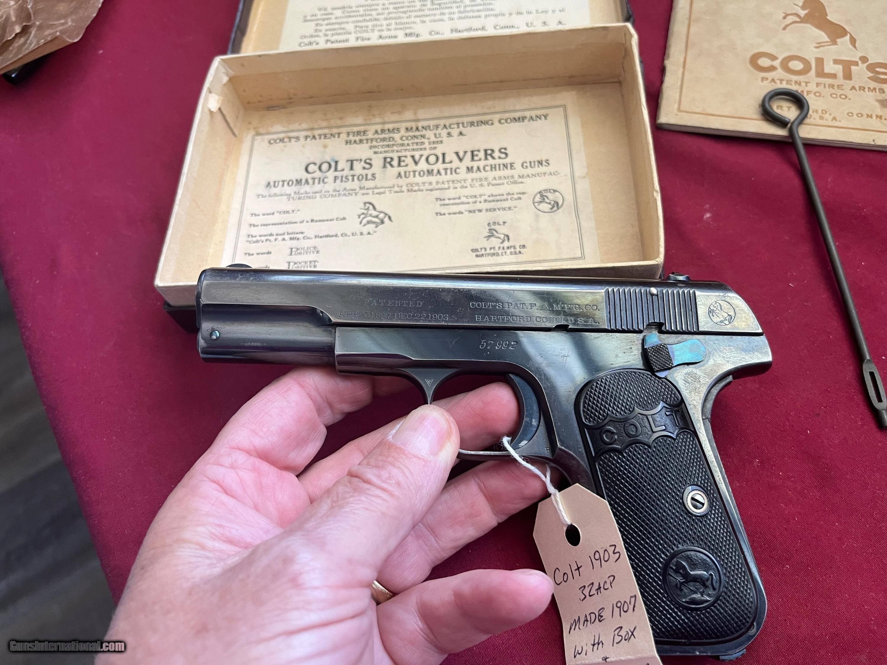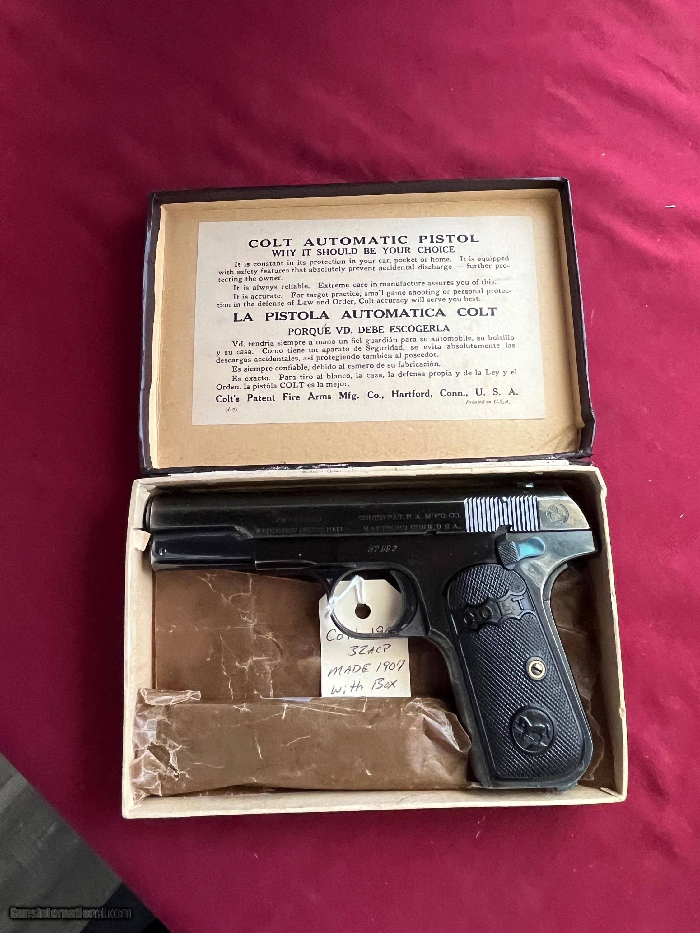 COLT MODEL 1903 SEMI AUTO PISTOL 32ACP MADE 1907
