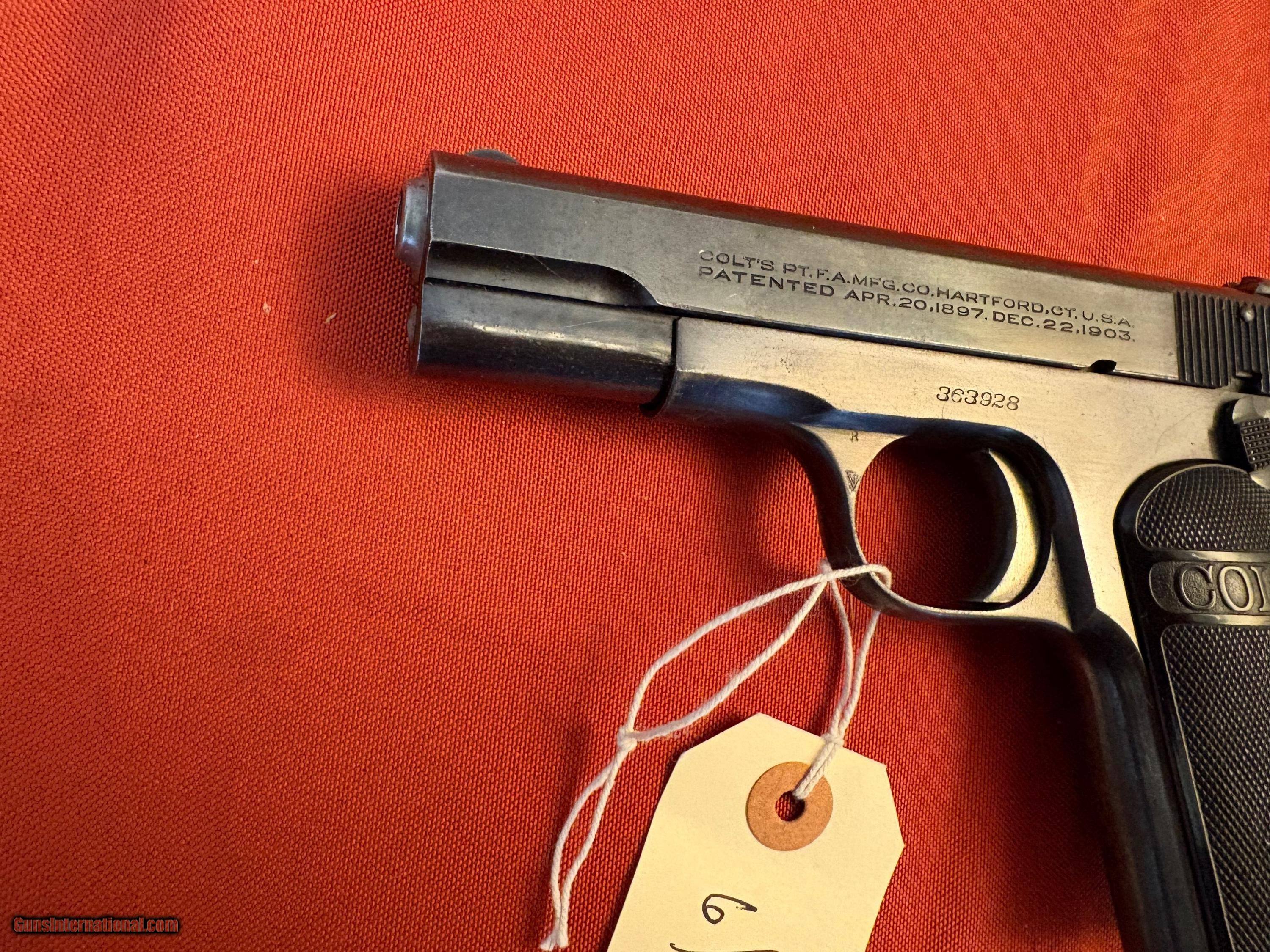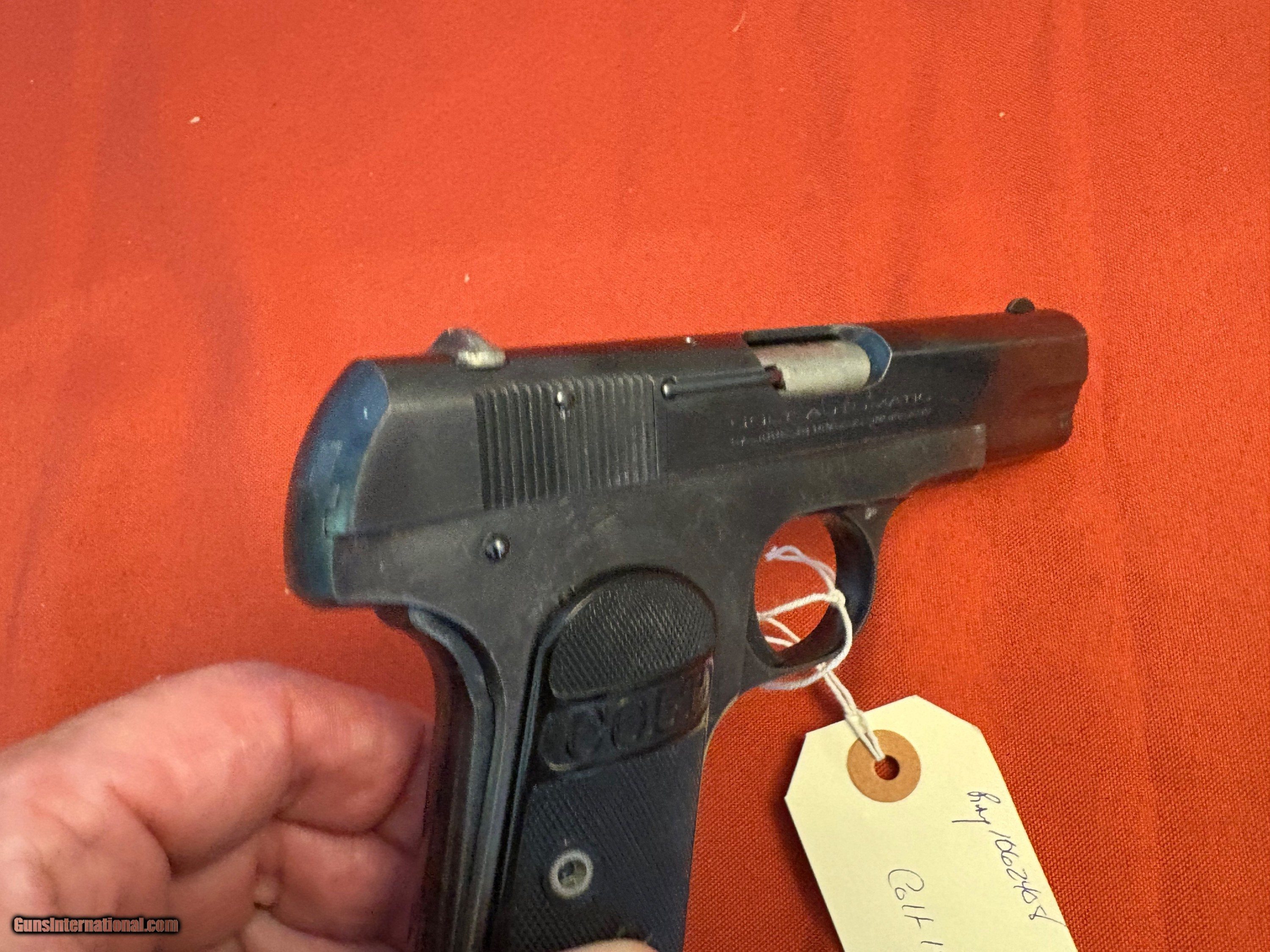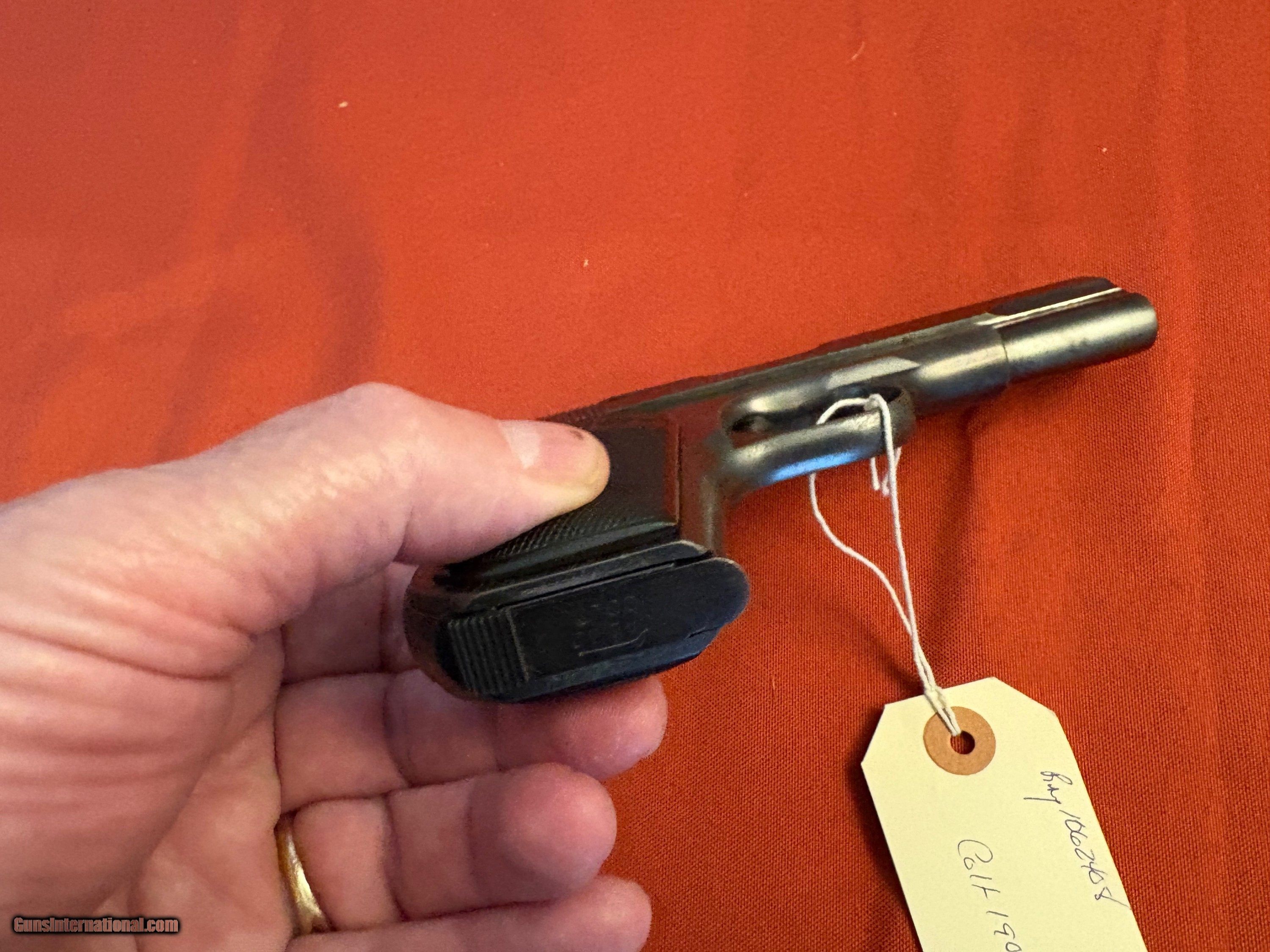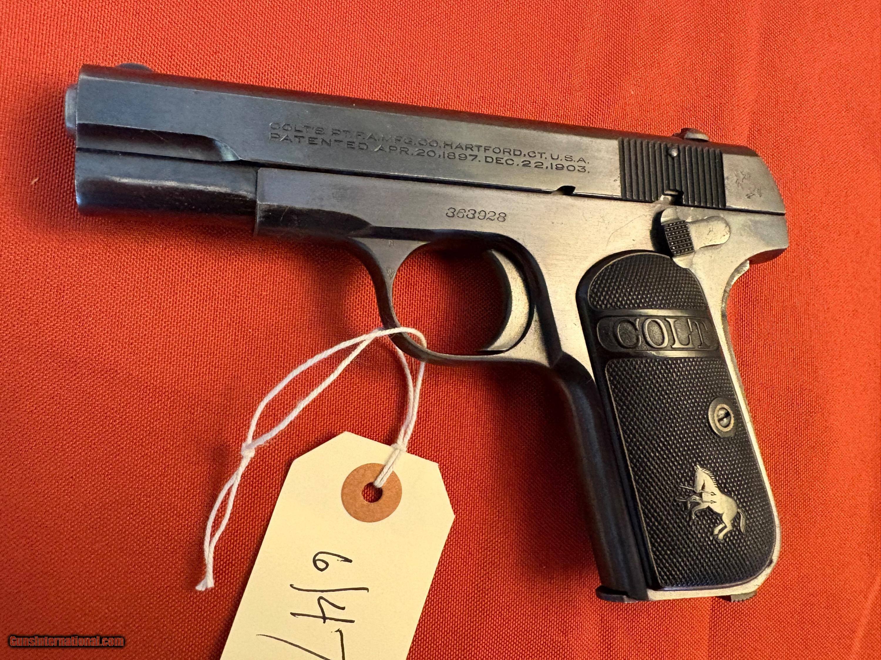 Description: COLT MODEL 1903 SEMI AUTO PISTOL. SER# 393928 MADE IN 1920, NICE ORIGINAL BLUE FINISH, PROPER TWO TONE MAGAZINE. BRIGHT BORE, NICE SOLID GRIPS. EASTERN BRANCH FIREARMS ADD 50.00 SHIPPING – HANDGUNS SHIP NEXT DAY AIR ADD 50.00 SHIPPING – LONG GUNS SHIP GROUND OPTIONAL INSURANCE IS AVAILABLE AT 1.25 PER 100.00 Questions e-mail or call Glen at Eastern Branch Firearms 207-215-5021 TERMS – PLEASE READ BEFORE I DO NOT HAVE A LAYAWAY OPTION ( WE ACCEPT CREDIT CARDS ) -- I GET ALOT OF REQUEST FOR TRADES, I WOULD PERFER NOT TO DO TRADES ON MY INTERNET LISTINGS PAYMENT OPTIONS- We accept money orders, cashier’s checks , bank checks. personal checks ( with personal check - shipping hold for 10 days from check being deposited - no exceptions) . We accept all major credit cards please add 3% to the ’s cash discount price.(Shipping within the state of Florida - Florida Residents must pay sales tax) .Handguns and long guns do need to be shipped separate. PLEASE do not send payment via FED EX . USPS & UPS are fine. Thank you. We include a signed copy of our FFL with each firearm shipped. SAFTY NOTICE- Buyer is solely responsible for determining that a used gun is safe to shoot. The firearms offered have not been test fired but have been given a visual inspection only for purposes. It is a requirement that every used firearm is inspected by a qualified gunsmith before firing. By , the buyer agrees to hold seller harmless against damages, injury, or death caused by defective merchandise. RETURN POLICY- All firearms come with a 3-day non firing , non messing with ( turning srews ,taking apart,removing parts, scoping. firing, cleaning or messing with in anyway) inspection/return privilege.Inspection is based on a visual review of the gun to confirm the gun is in the condition stated. In the case of a return, buyer pays all shipping charges & if paid for with a credit card buyer absorbs the 3% credit card charges . So please ask questions BEFORE you bid. Thanks for Looking and Good Luck!! SOLD Curio/Relic: Yes |