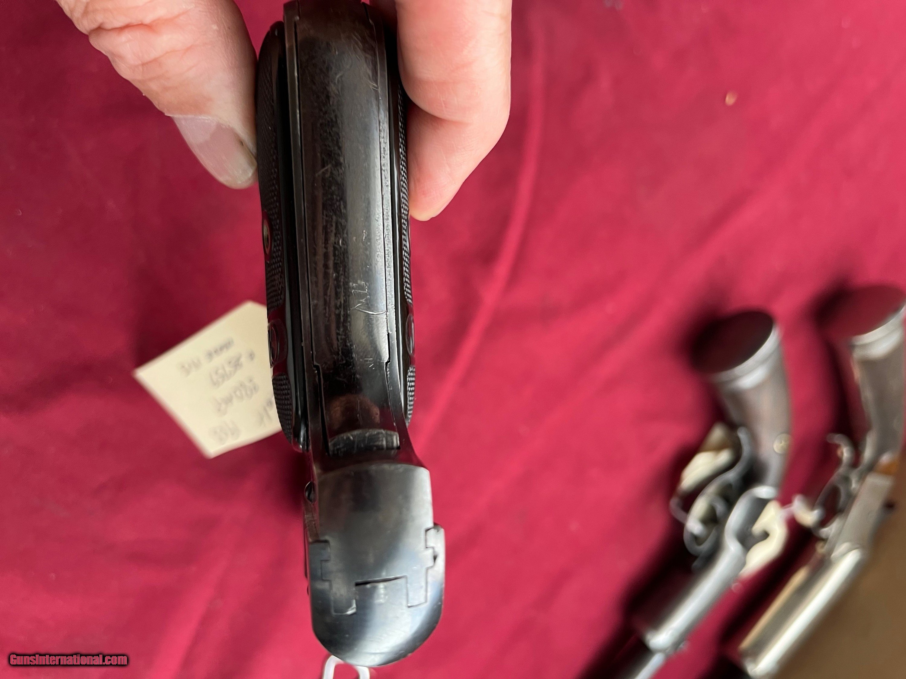 Description: COLT MODEL 1903 SEMI AUTO PISTOL. CALIBER 380 ACP . SER# 25759, MADE IN 1915, VERY GOOD ORIGINAL BLUE FINISH. NICE SOLID GRIPS. CORRECT TWO TONE MAGAZINE. NICE LITTLE 380. EASTERN BRANCH FIREARMS ADD 35.00 SHIPPING – HANDGUN USPS PRIORTY MAIL ADD 35.00 SHIPPING – LONG GUNS GROUND SHIPPING Questions e-mail or call Glen at Eastern Branch Firearms 207-215-5021 TERMS – PLEASE READ BEFORE I DO NOT HAVE A LAYAWAY OPTION ( WE ACCEPT CREDIT CARDS ) -- I GET ALOT OF REQUEST FOR TRADES, I WOULD PERFER NOT TO DO TRADES ON MY INTERNET LISTINGS PAYMENT OPTIONS- We accept money orders, cashier’s checks , bank checks. sorry no personal checks. We accept all major credit cards please add 3% to the ’s cash discount price.(Maine Residents to pay 5% sales tax) .Handguns and long guns do need to be shipped separate. PLEASE do not send payment via FED EX . USPS & UPS are fine. Thank you. We include a signed copy of our FFL with each firearm shipped. SAFTY NOTICE- Buyer is solely responsible for determining that a used gun is safe to shoot. The firearms offered have not been test fired but have been given a visual inspection only for purposes. It is a requirement that every used firearm is inspected by a qualified gunsmith before firing. By , the buyer agrees to hold seller harmless against damages, injury, or death caused by defective merchandise. RETURN POLICY- All firearms come with a 3-day non firing , non messing with ( turning srews ,taking apart,removing parts, scoping. firing, cleaning or messing with in anyway) inspection/return privilege.Inspection is based on a visual review of the gun to confirm the gun is in the condition stated. In the case of a return, buyer pays all shipping charges & if paid for with a credit card buyer absorbs the 3% credit card charges . So please ask questions BEFORE you bid. Thanks for Looking and Good Luck!! U.S. sales only, no exports…this includes antiques. I will ship to third party for exporting SOLD Curio/Relic: Yes |