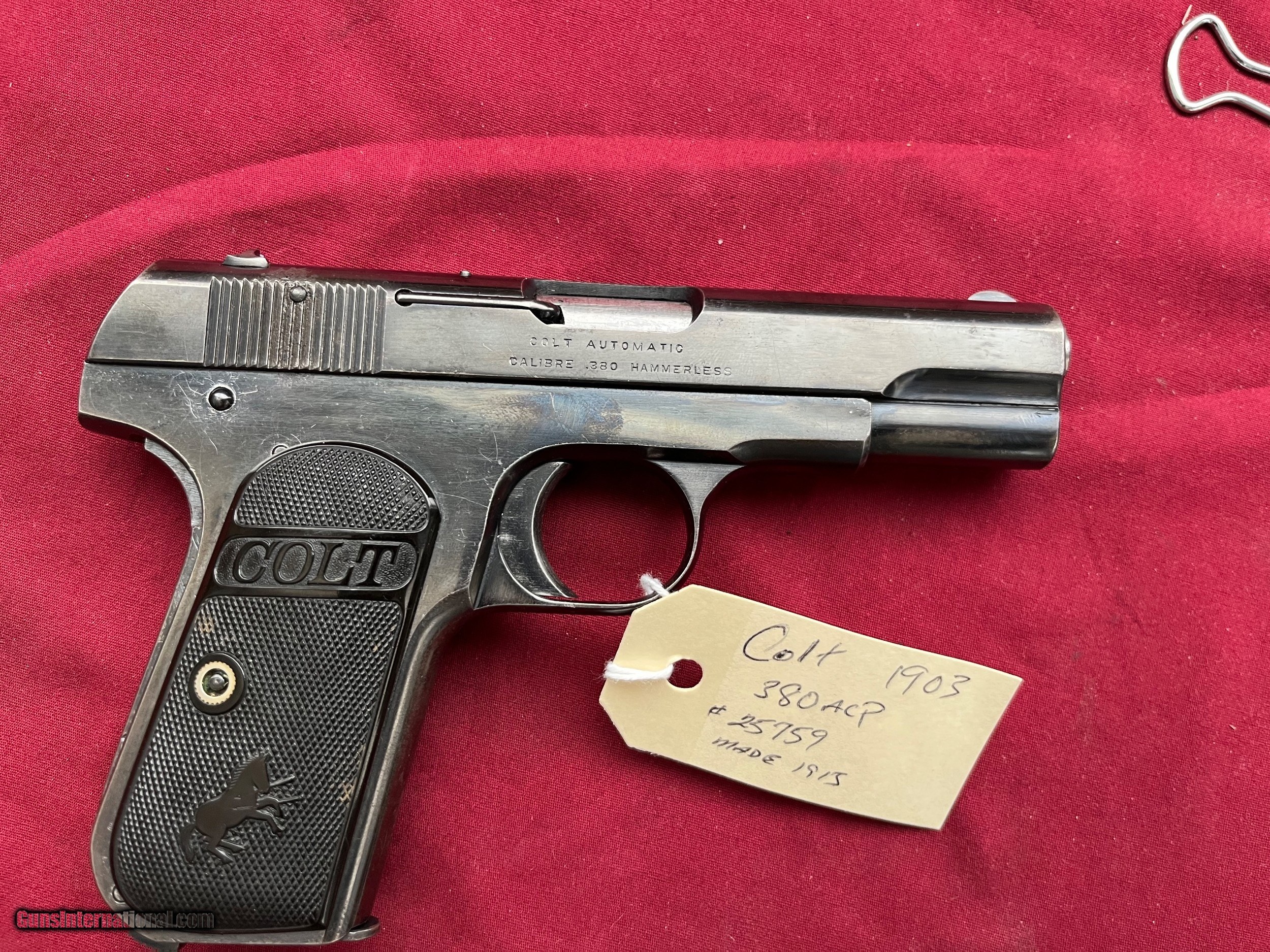 COLT MODEL 1903 SEMI AUTO PISTOL 380 ACP MADE 1915