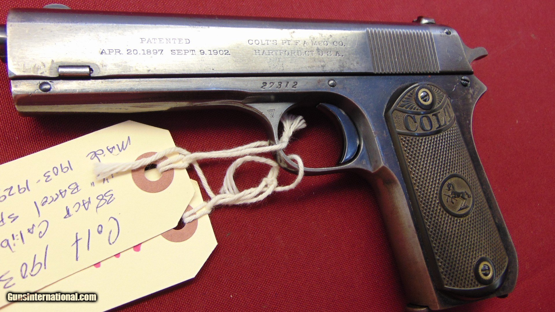 COLT MODEL 1903 SEMI AUTO PISTOL CALIBER 38ACP MADE 1911