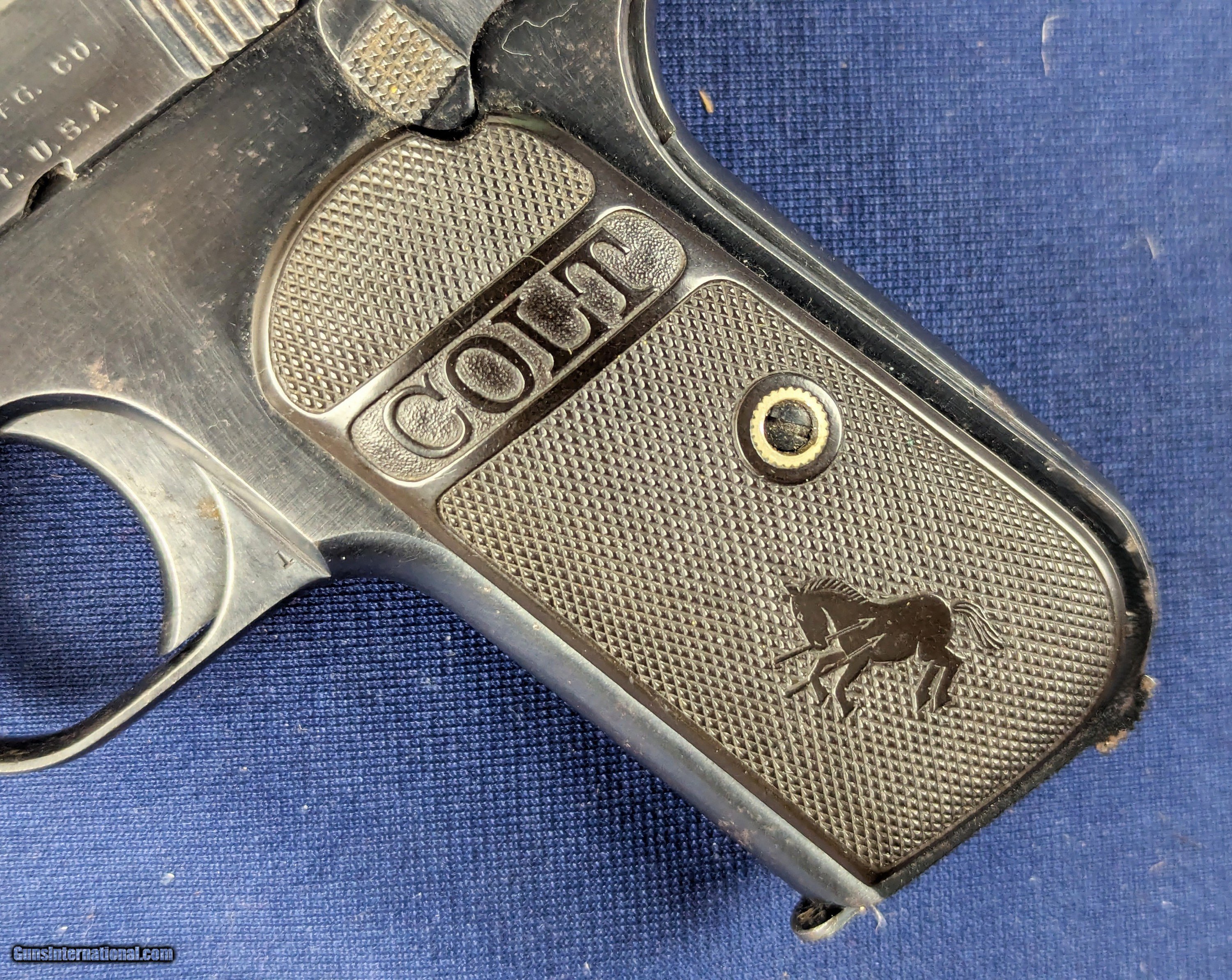 Description: Holiday Special Classic WWI Period Colt 1903 .32 Auto Pistol Offered here as a holiday special is this previously owned classic Colt Model 1903 Hammerless .32 auto pistol. The pistol, serial number 203433 was manufactured circa 1916 just at the start of the U.S. entry into the Great War. Many of these commercially made Colts found there way in the hands of soldiers who served-especially officers. This specimen retains most of its original finish and has not seen a great deal of use. There is some use marks and spots of patina in places but it has an excellent bore, sharp markings and a great pair of original factory grips. Only the fully blued magazine is a replacement but fits perfectly. Standard shipping is $42. however final shipping amount is based upon geographical area. Handling is $18.00 for longarms only. We gladly accept money orders, bank checks and personal checks. Credit card orders (VISA AND MASTER CARD ONLY) charged 3.95% additional for use. PLEASE CALL DALIA AT 203-257-5256 TO GIVE CREDIT CARD I NFORMATION. Also, please view our at hansenguns. Clicencounhterk on "Online Catalog" and see All OF OUR ITEMS LISTED CONSECUTIVELY on or search online on that site with the ID “lope”...... OFFERED ONLINE AND AVAILABLE IN OUR RETAIL GALLERY IN SOUTHPORT, CT. Visit us also on Facebook at ://facebook/hansenguns/?fref=ts. We also own and/or operate Hansen Cartridge Co. and the Ruger Collectors Assc.(RCA). Hansen & Hansen wishes to expedite each order received, however we ship 80-100 items weekly, therefore orders paid by money orders or bank checks are cleared for shipping 5-7 days after deposited funds show in our account. Shipping date is scheduled ONLY AFTER VERIFICATION TAKES PLACE AND FFL/C&R IS RECEIVED (IF APPLIES). This is 5-7 days after WE receive order by mail - NOT customer date mailed and postmarked and after credit card funds are posted. Credit card orders exceeding $500 must be cleared through customer’s bank before shipping. Personal checks are accepted but orders are held UP TO 3 WEEKS after deposit of funds before items released for shipping. IF you have special instructions or require overnight or expedited shipping please advise at time of ordering and we will gladly prioritize shipping FOR AN ADDITIONAL CHARGE. THIS IS OUR POLICY and we encourage buyers to PLEASE READ AND UNDERSTAND OUR POLICY BEFORE . We would be pleased to answer ANY questions by phone (our toll free number is 1-800-571-7337 or e-mail cwlopiaol. SOLD Curio/Relic: Yes Handgun Caliber: .32 ACP (7.65x17mm Browning SR) |