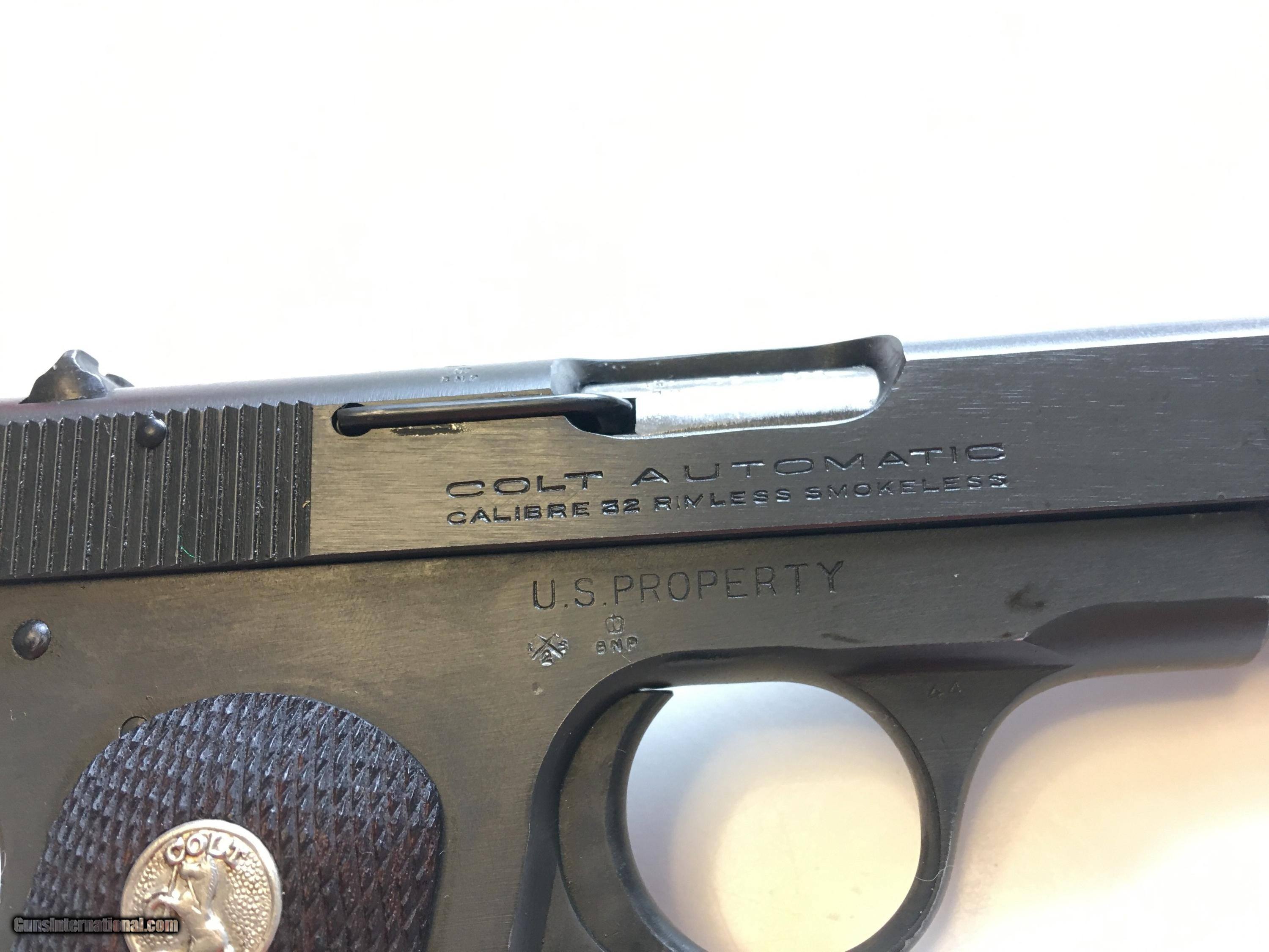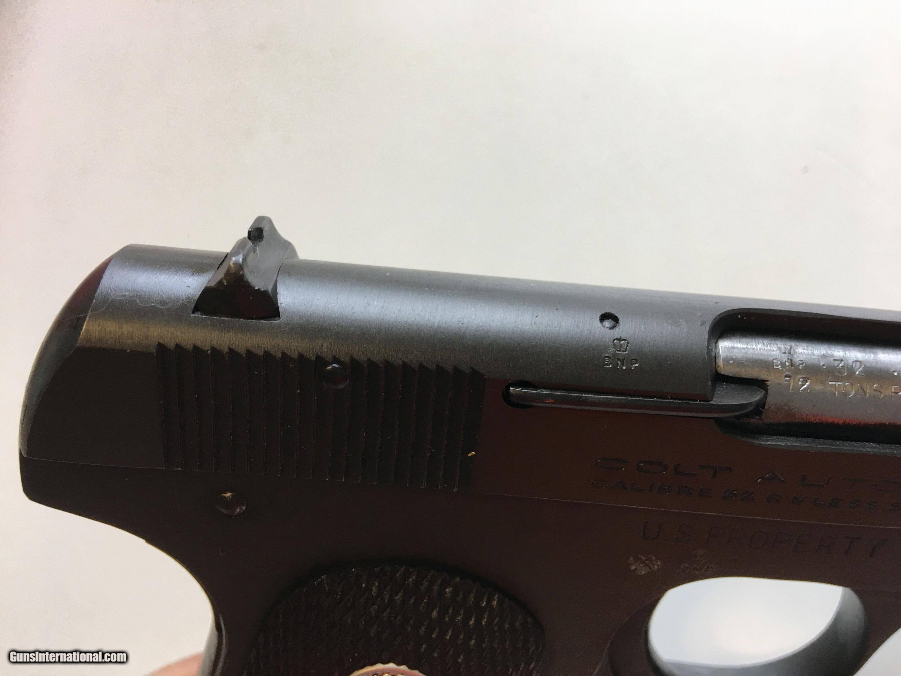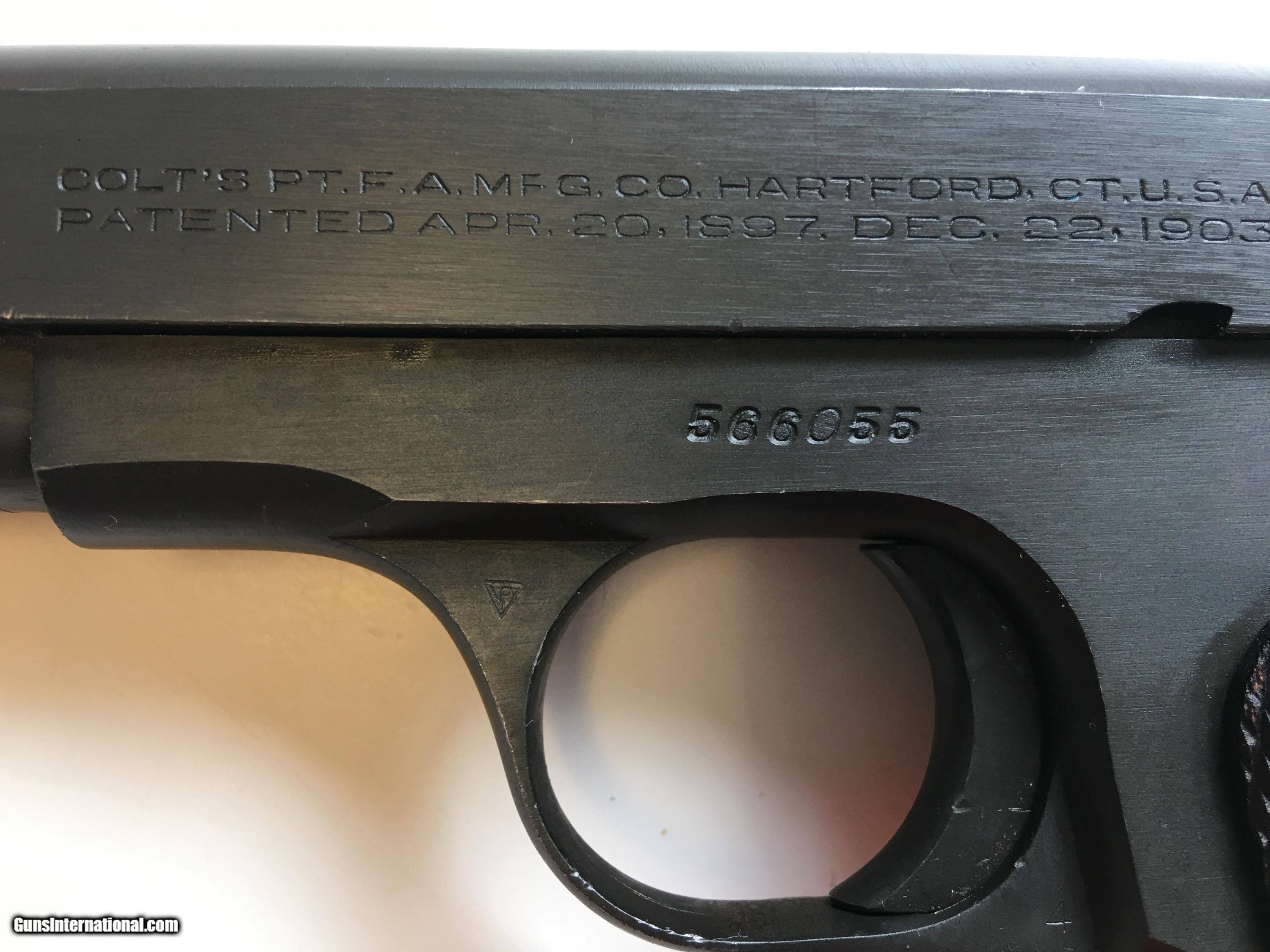 Description: This is an outstanding example of a Colt 1903 US Property pistol, send to Britain as a part of Lend Lease program in 1943-1944. The gun is in near new, unissued original condition with over 99% of the beautiful original parkerizing remaining with just a few tiny handling marks. The gun is complete with a serialized kraft shipping box and factory letter. Perfect grips and bore. Sharp US and British proof marks. Original all blue magazine. Impossible to upgrade set. 3-day inspection $35 shipping FFL or C&R(where permitted). SOLD Curio/Relic: Yes |